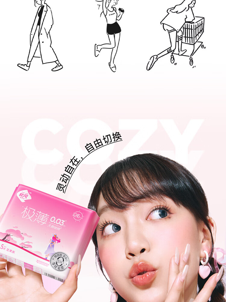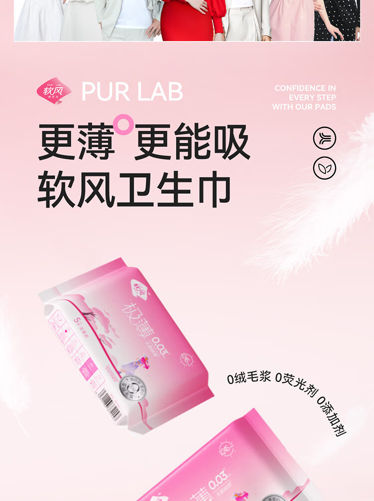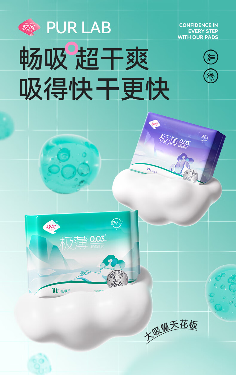 软风研究社医护级至柔系薄姨妈巾日夜用卫生巾畅吸姨妈巾日用245mm5片/10片 棉柔 245mm 50片
