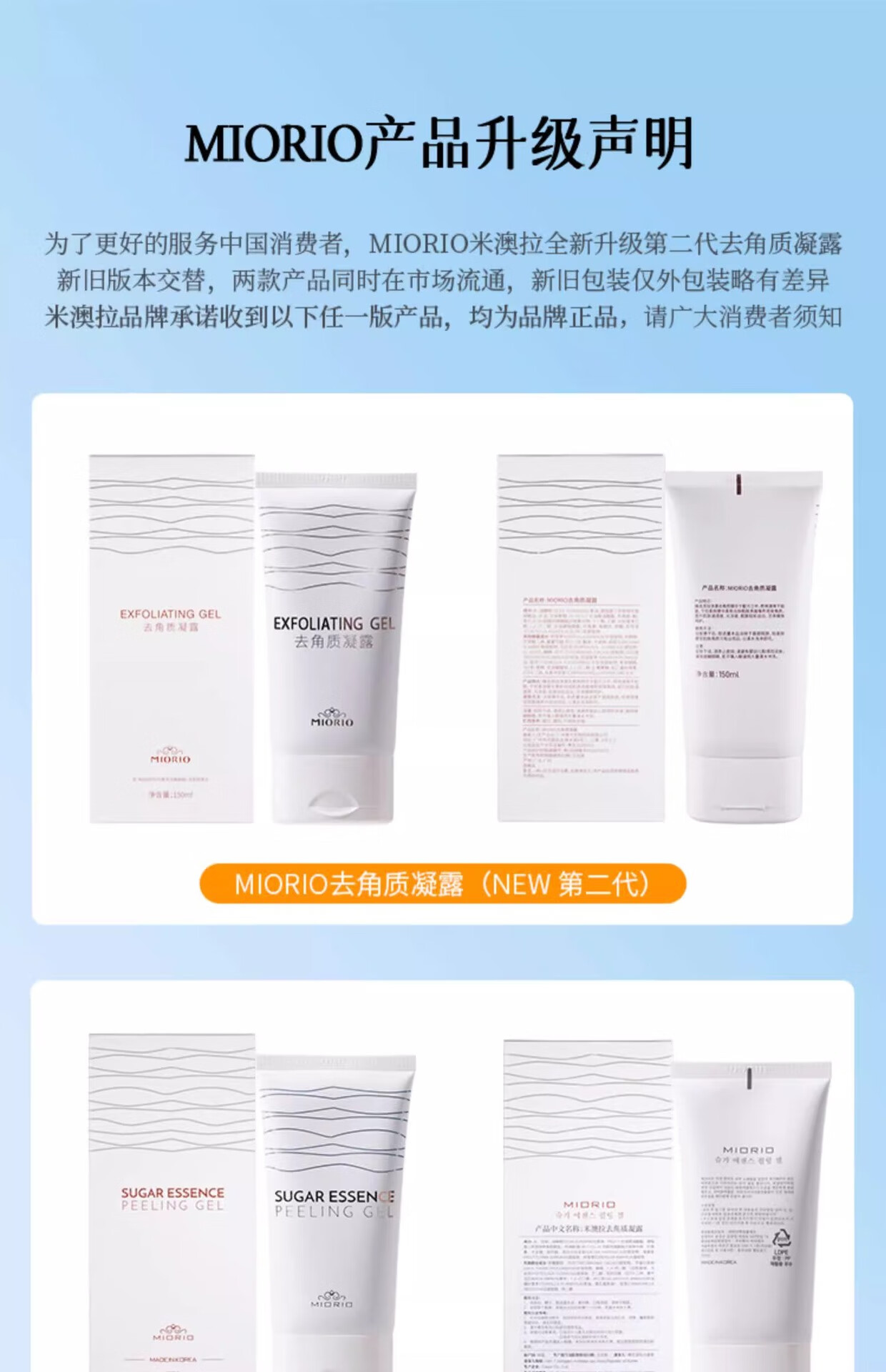 米澳拉(MIAOLA)韩国MIORIO去角质米澳拉黄糖凝露身体去死皮脸部深层清洁毛孔磨砂 米澳拉去角质凝露 1瓶【150ml 韩国版 】