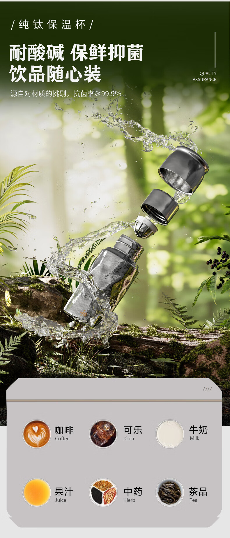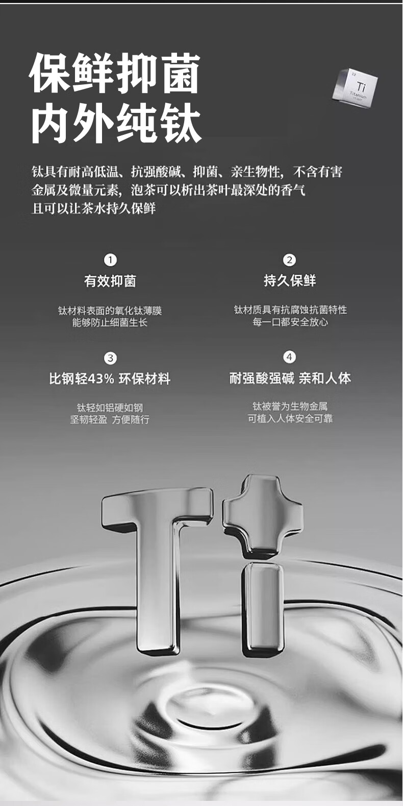 禾器钛杯纯钛保温杯保冷高档闷茶杯茶水分离养生泡茶商务办公礼品钛杯定制 穹晶蓝290ml