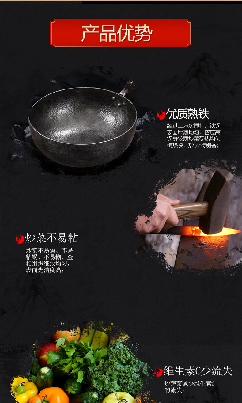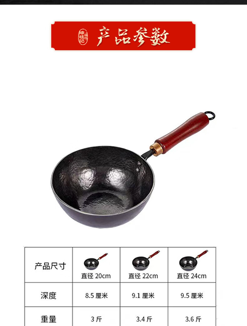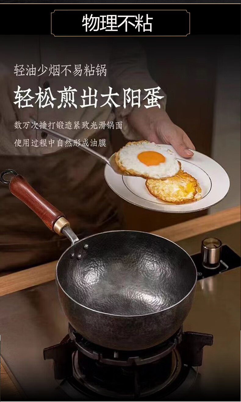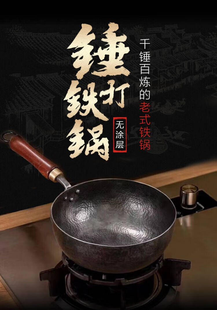 孟大锤章丘款炒锅手工锻打铁锅无涂层不易粘锅熟铁锅燃气灶款 鱼鳞款单锅【3-5人使用】 34cm