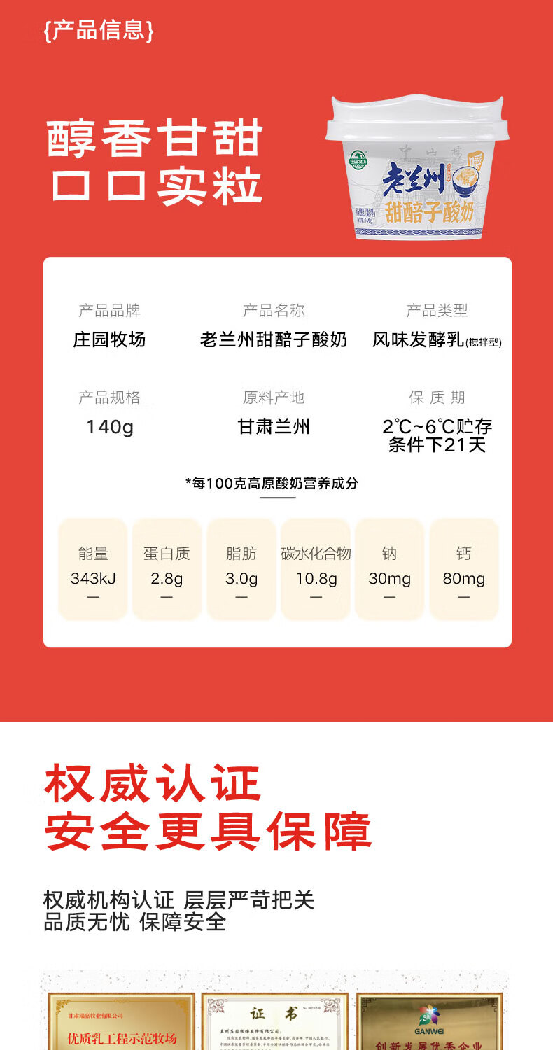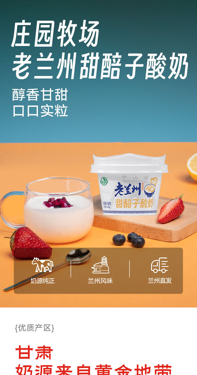 庄园牧场老兰州甜醅子酸奶140g*6盒 甘肃特产低温酸奶源头直发包邮营养