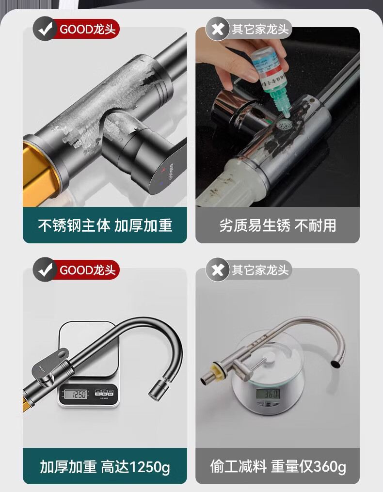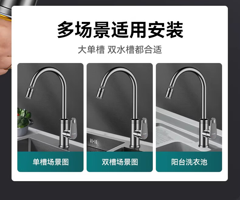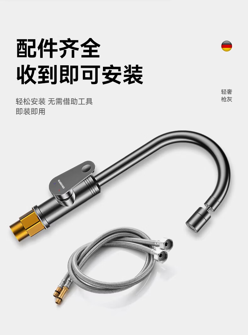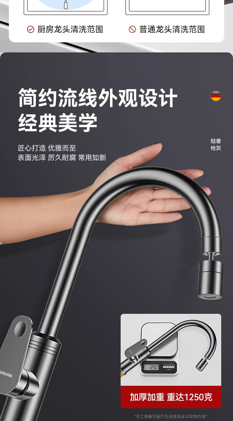 GuGuGo【德国】包安装厨房洗菜盆水龙头冷热水二合一防溅洗菜池专用龙头 【枪灰】万向两档厨房水龙头 免费上门安装+拆旧丨送80cm防爆管*2
