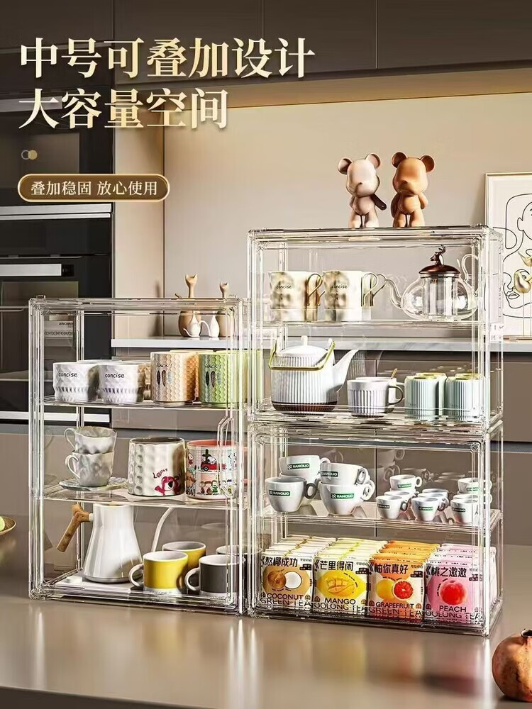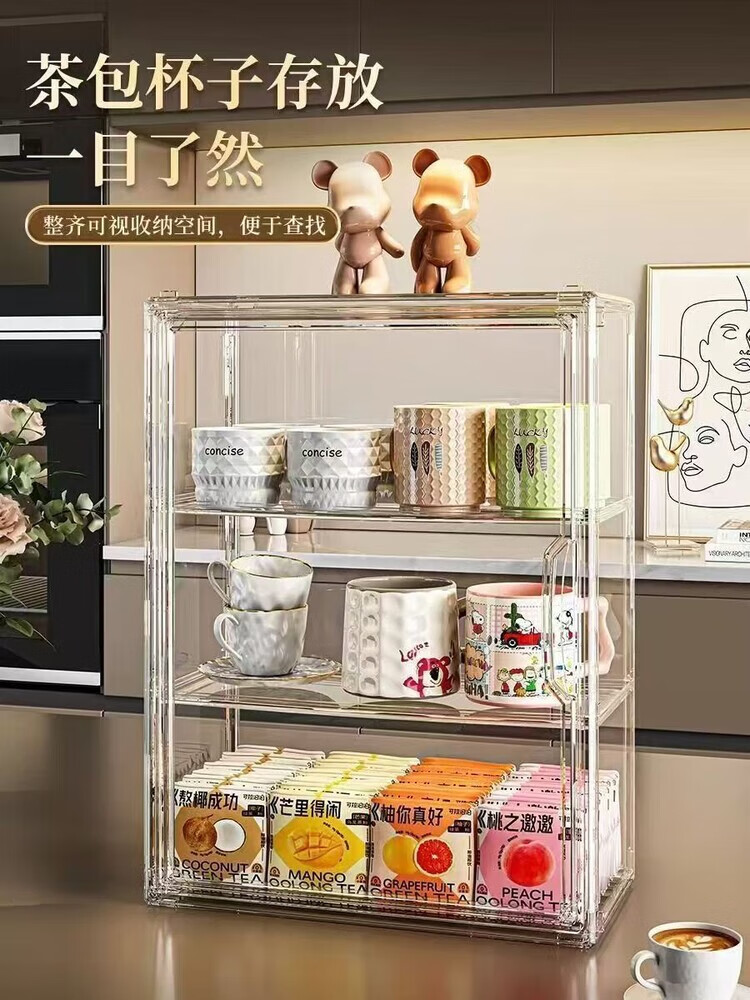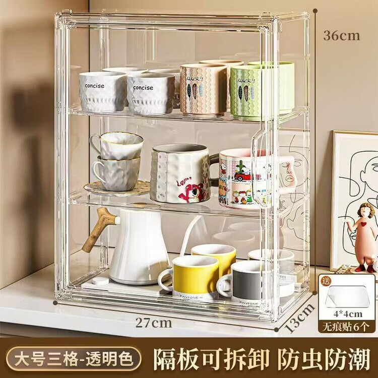 泰禧阁杯子防尘置物架桌面杯架水杯架子储物柜茶具茶杯亚克力透明收纳柜 BM分格透明柜【三层-收纳柜】