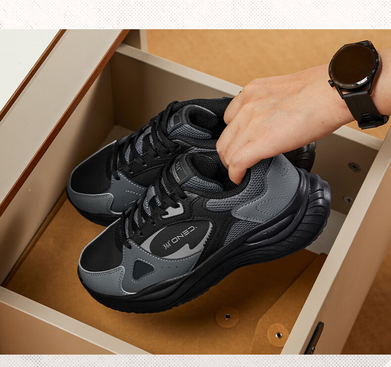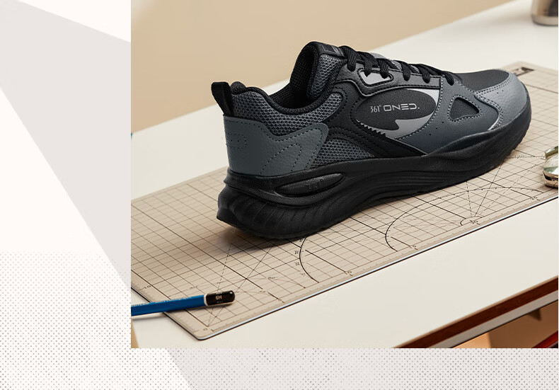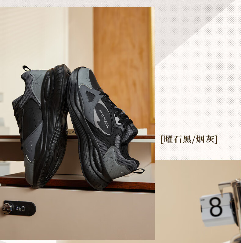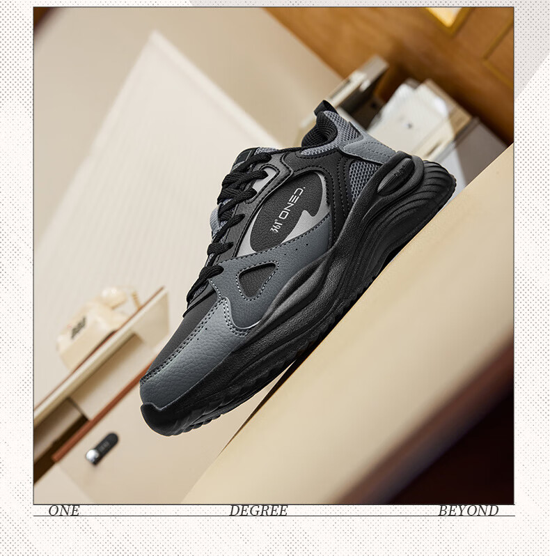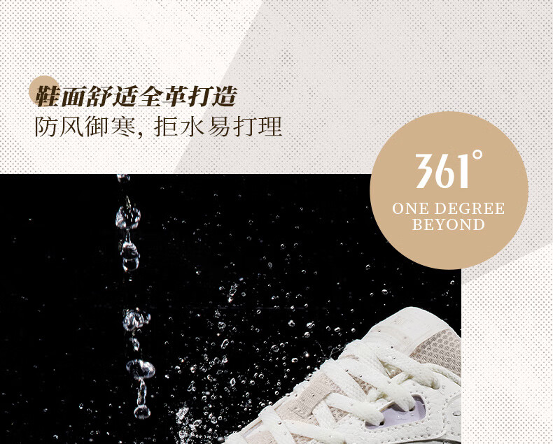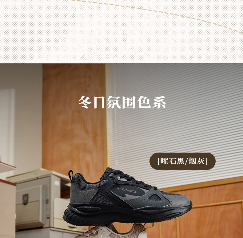 361°女鞋运动鞋女2025秋冬季新款防水皮面黑色跑步鞋轻便防滑休闲鞋子 曜石黑/烟灰 38
