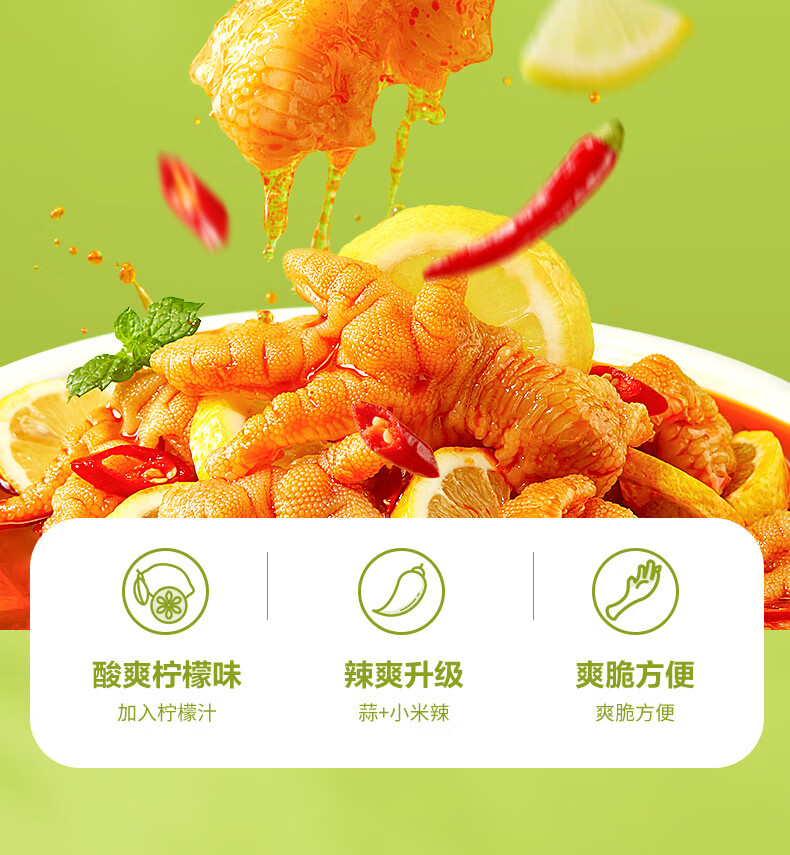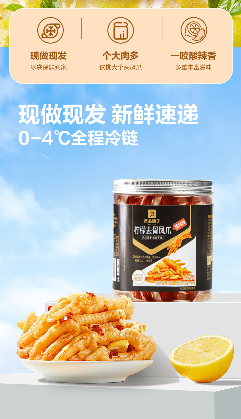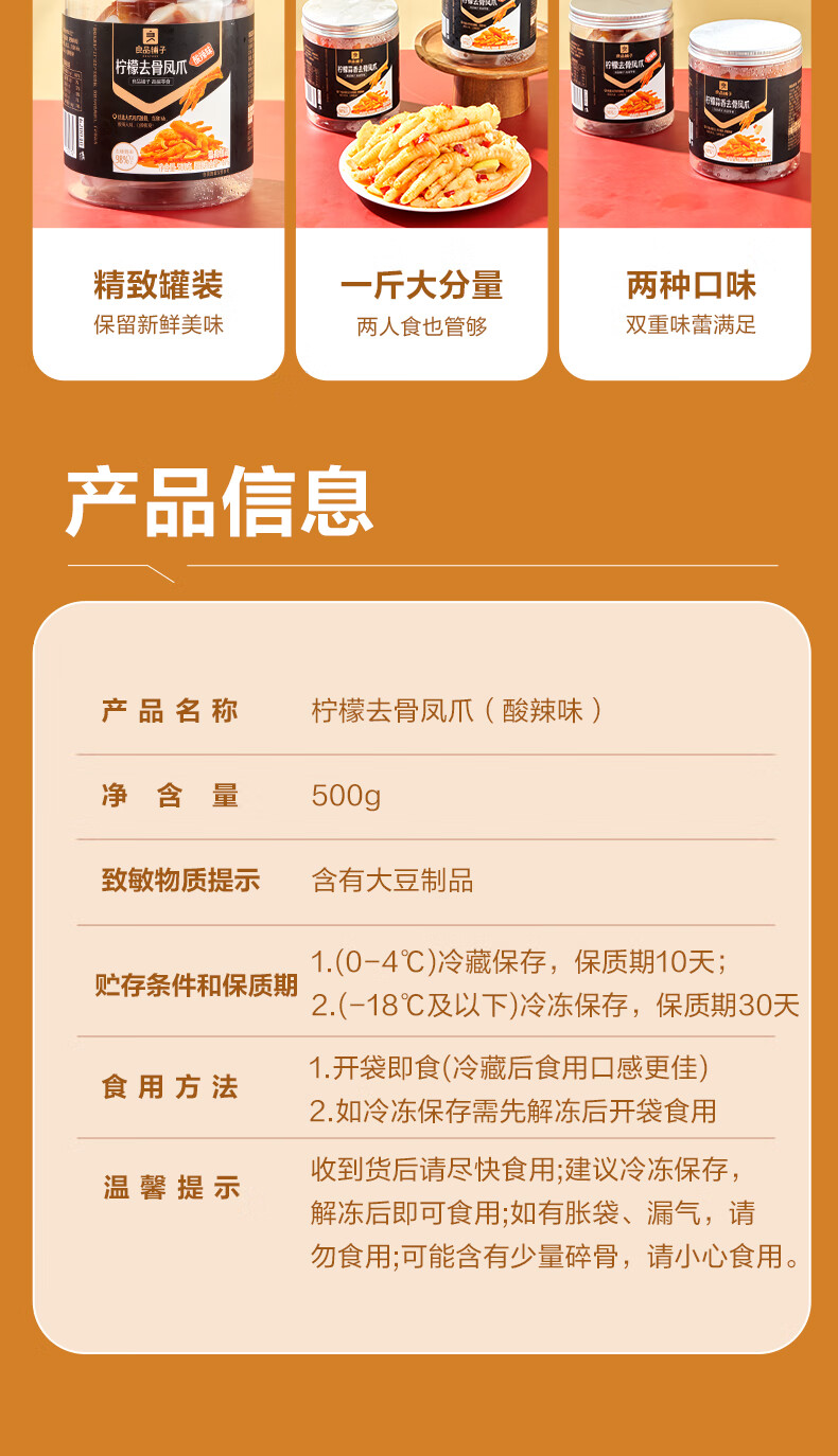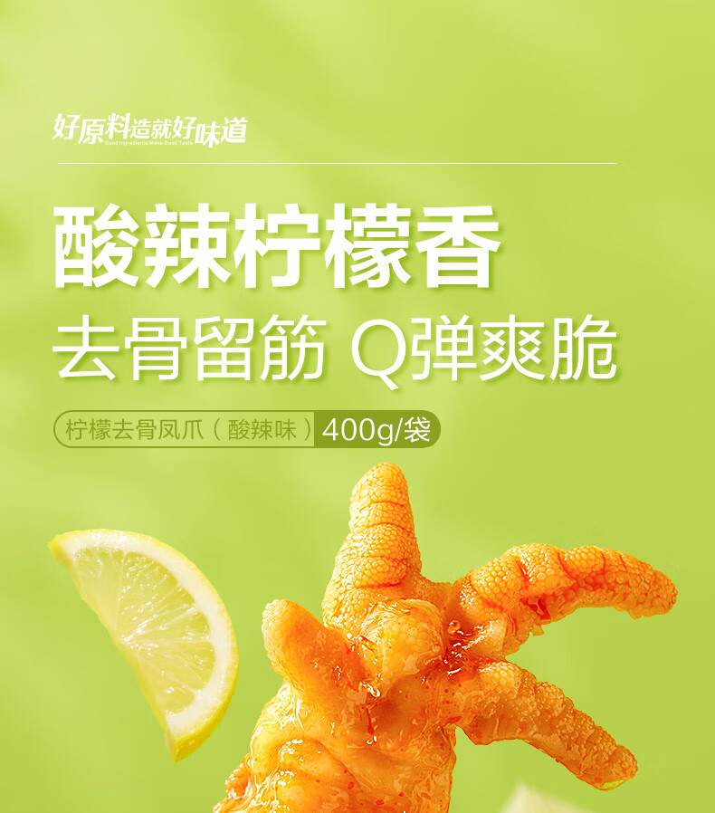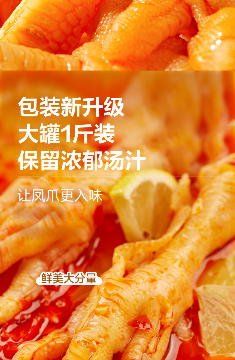 良品铺子无骨鸡爪蒜香柠檬酸辣去骨凤爪鸡肉熟食零食酸辣过瘾 柠檬去骨凤爪 500g*2罐 【酸辣】