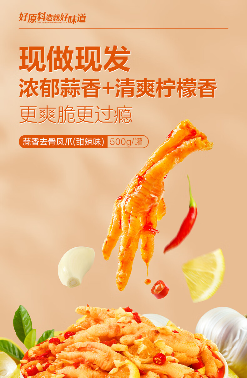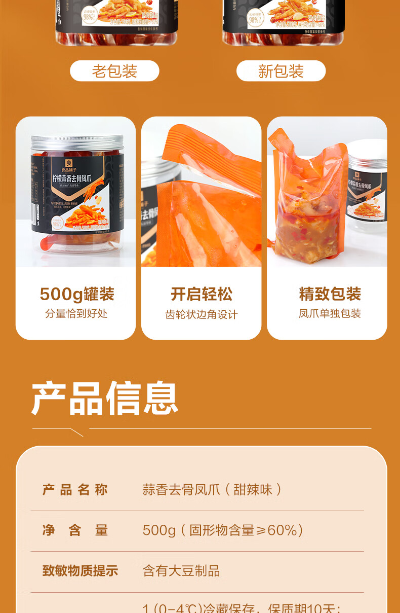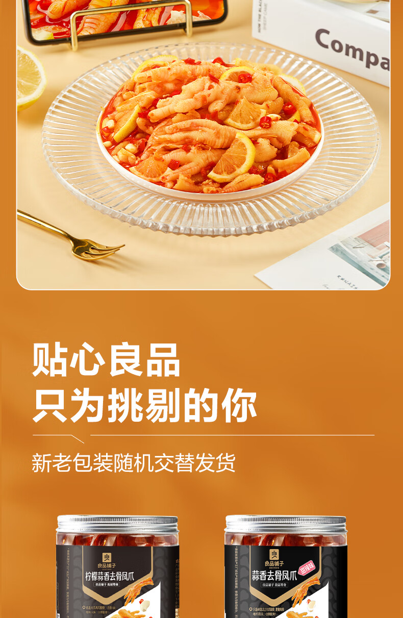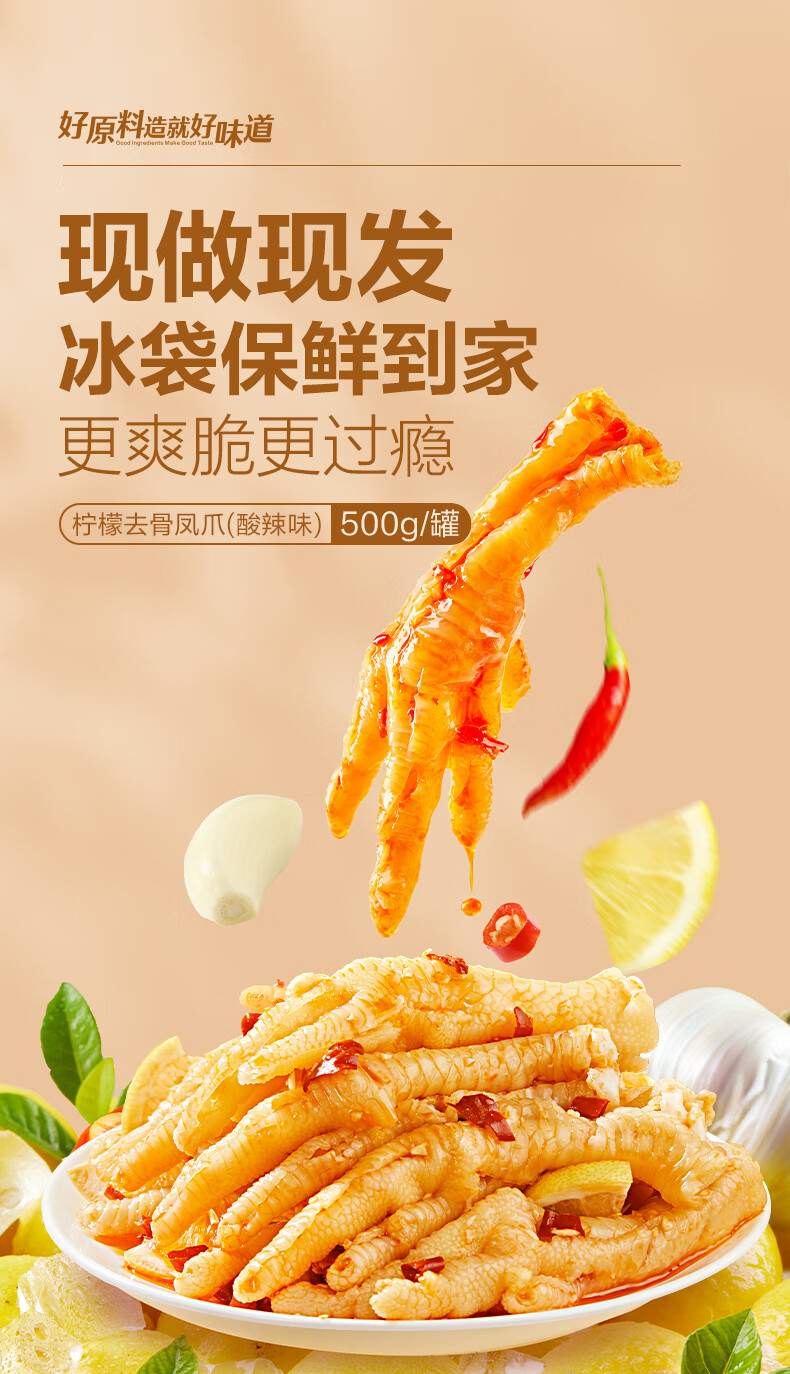 良品铺子无骨鸡爪蒜香柠檬酸辣去骨凤爪鸡肉熟食零食酸辣过瘾 柠檬去骨凤爪 500g*2罐 【酸辣】