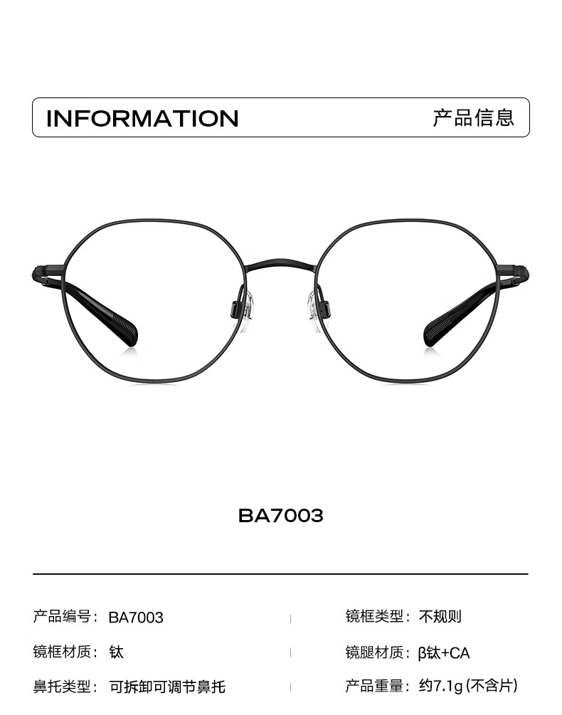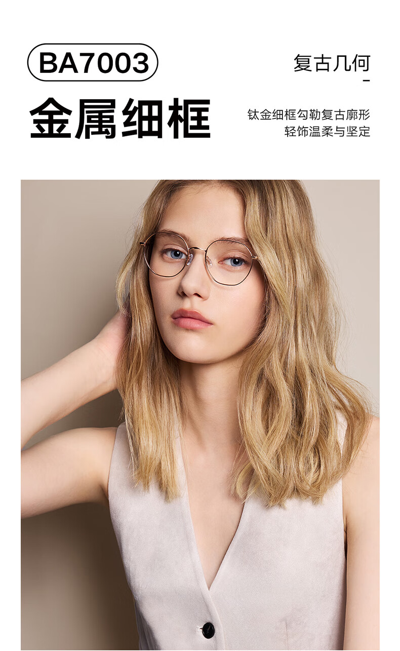 BOLON暴龙眼镜框25新品近视镜架钛框复古轻质百搭可配镜女BA7003 B30