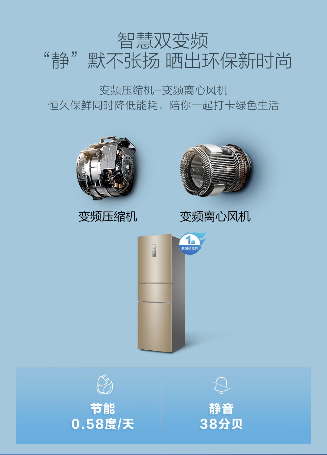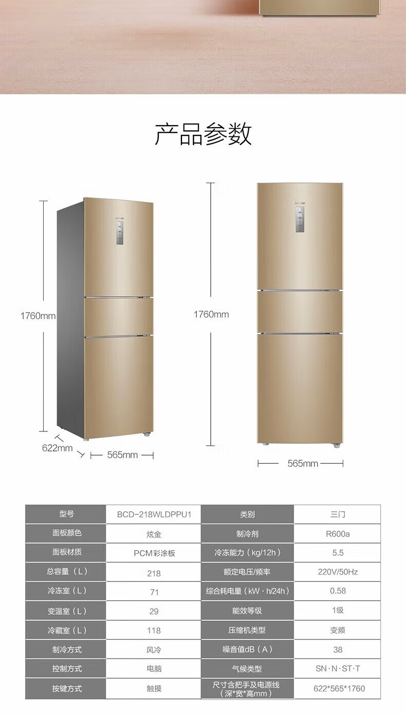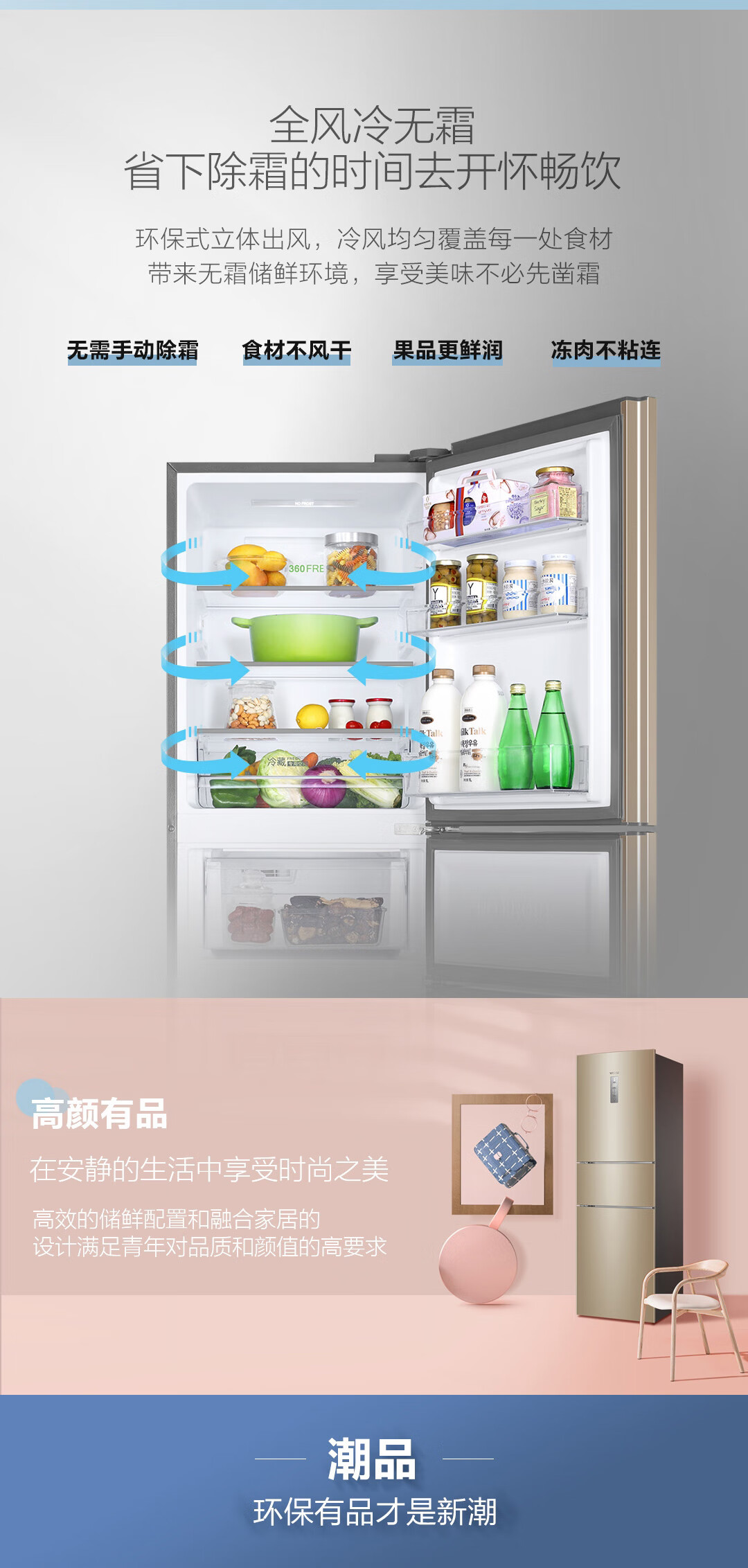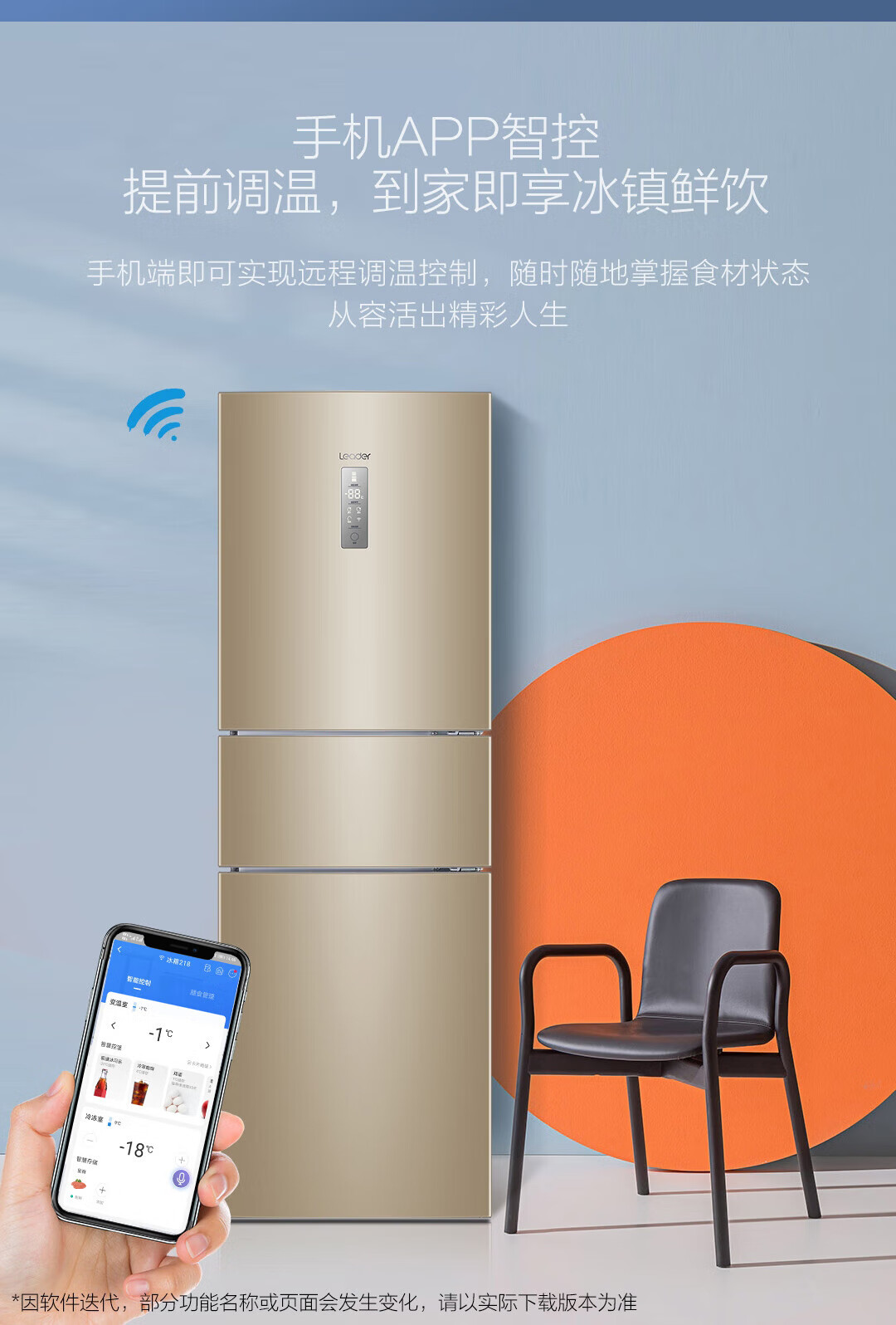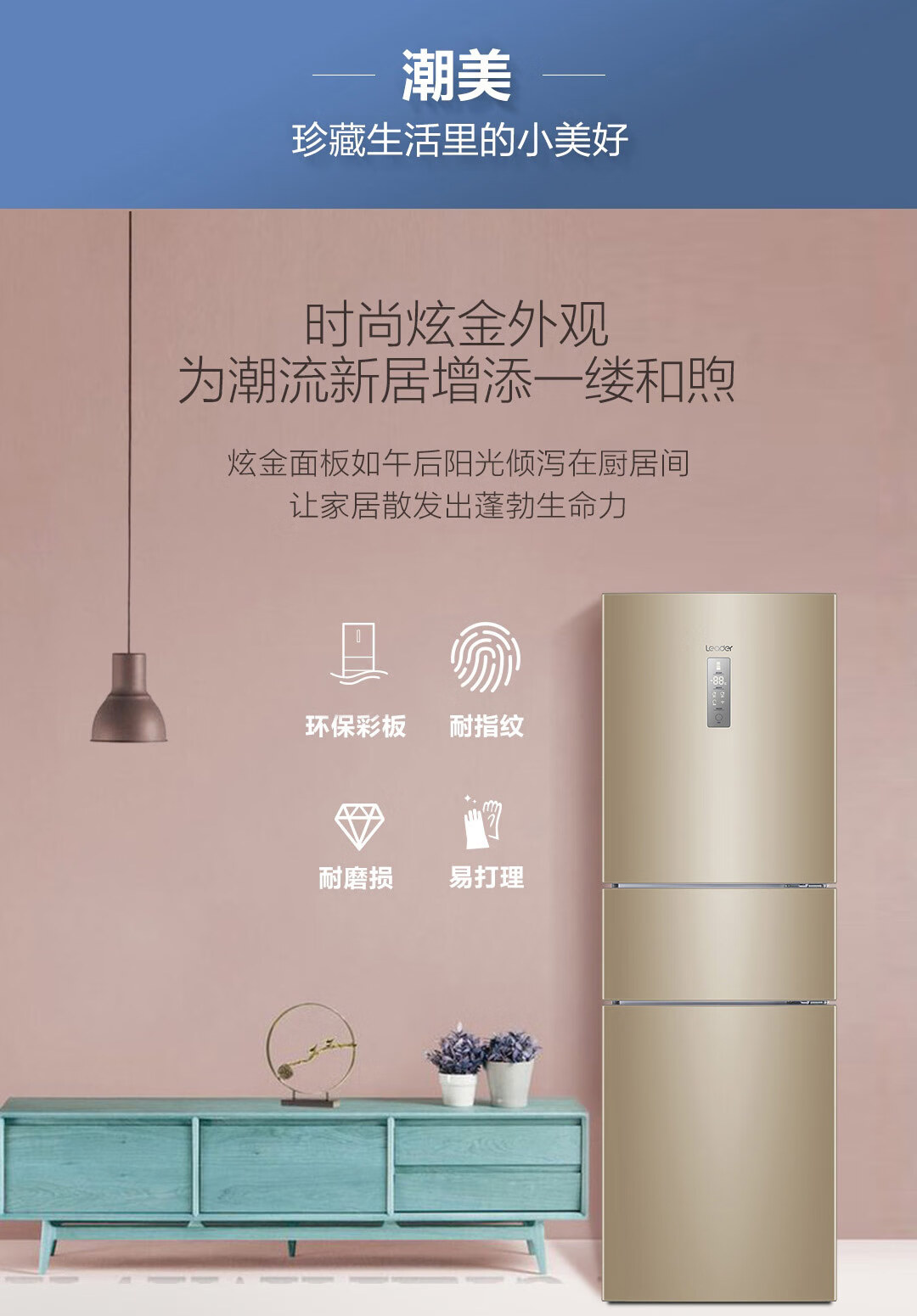 海尔智家冰箱218升一级节能无霜三门家用风冷无霜高配全宽变温除菌冰箱 海尔智家Leader冰箱 218升变频风冷无霜