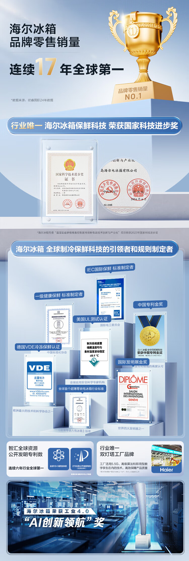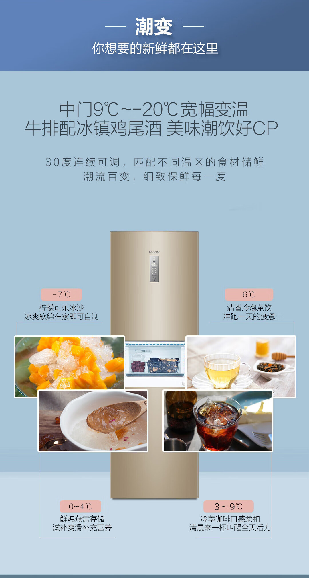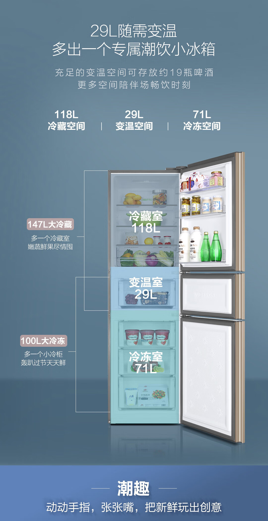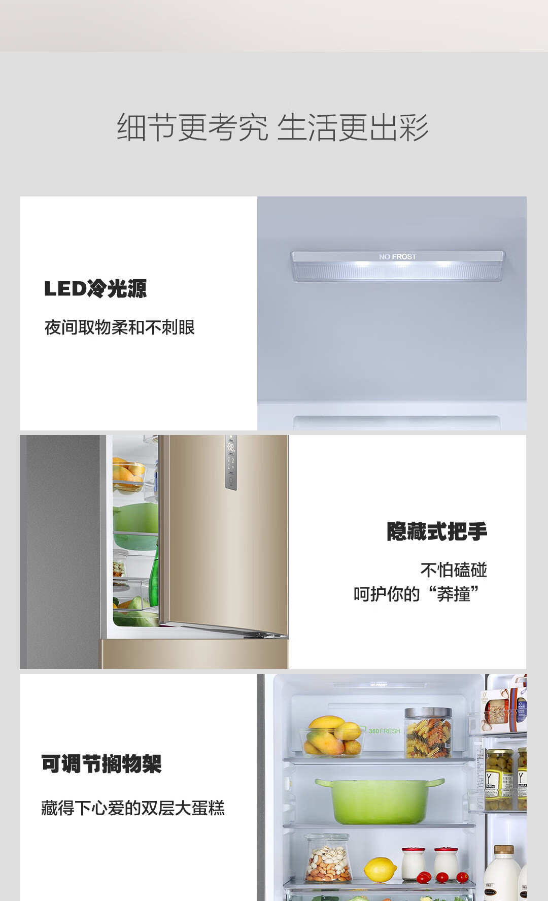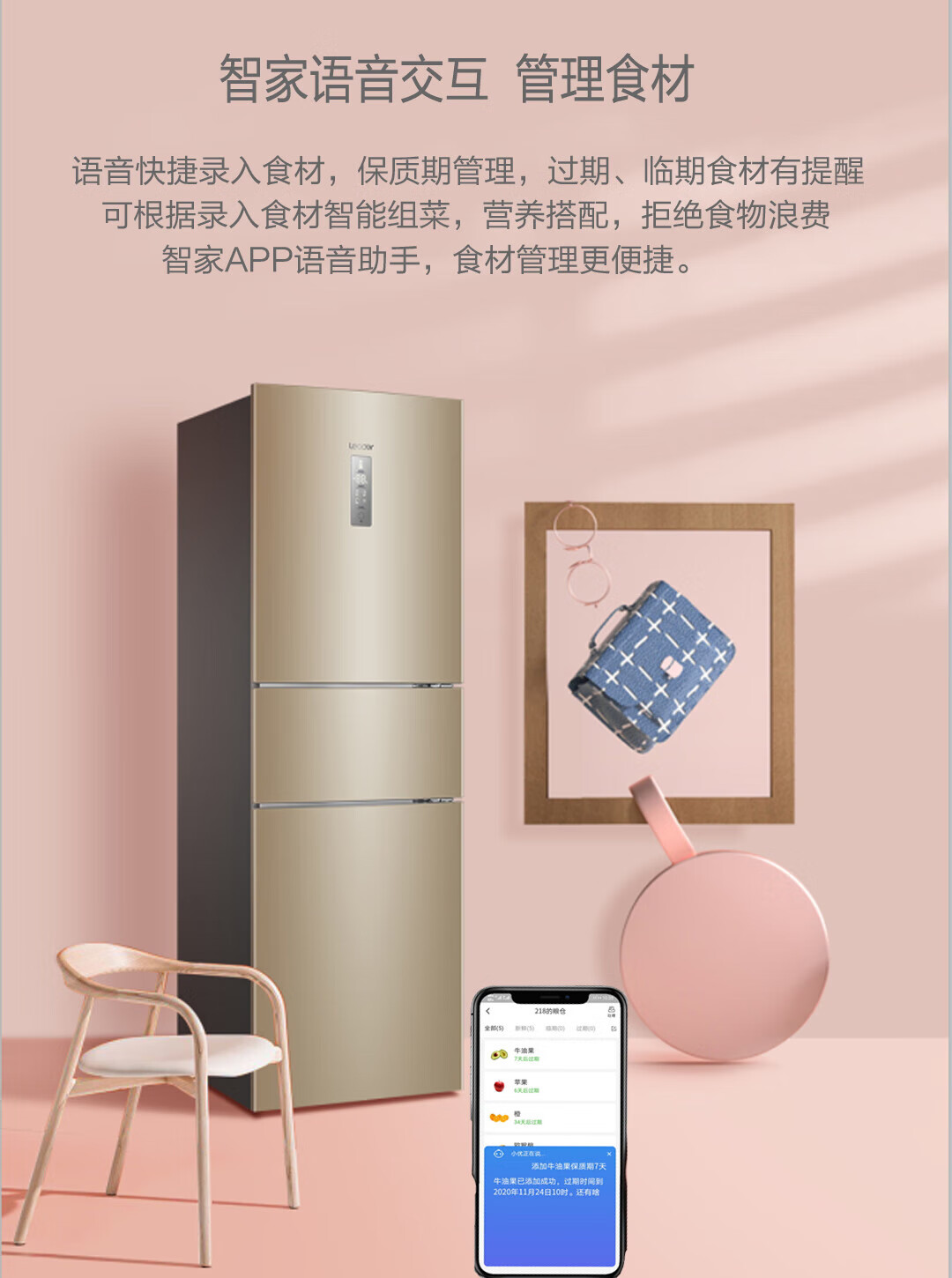 海尔智家冰箱218升一级节能无霜三门家用风冷无霜高配全宽变温除菌冰箱 海尔智家Leader冰箱 218升变频风冷无霜