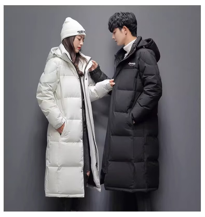 JEEP SPIRIT极寒零下40度羽绒服男女情侣长款过膝冬季新款加厚保暖连帽外套女 长款羽绒服-黑色【男女同款】 L 【建100-115斤】