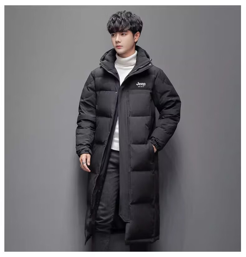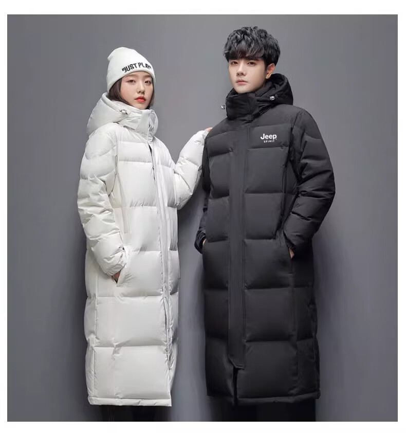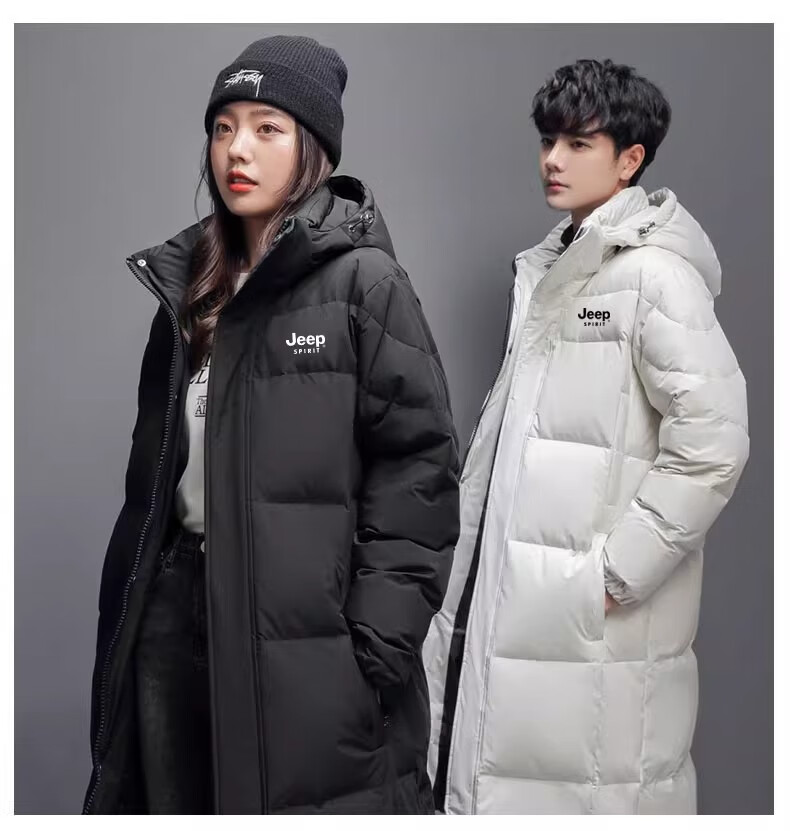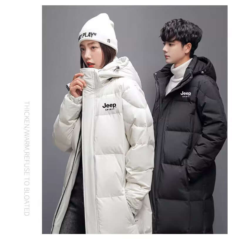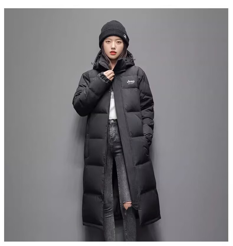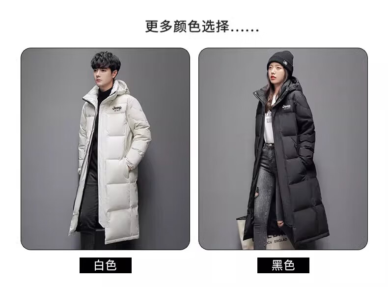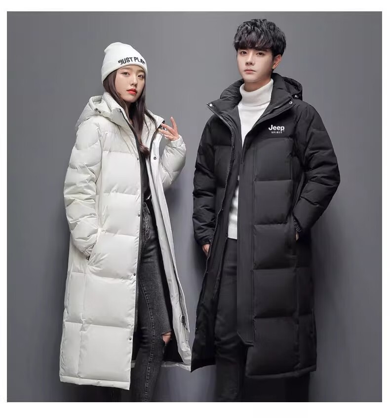 JEEP SPIRIT极寒零下40度新款中戏长款羽绒服男女情侣过膝外套白鸭绒保暖加厚 长款羽绒服-黑色【加绒保暖男女同款】 2XL 【130-150斤】
