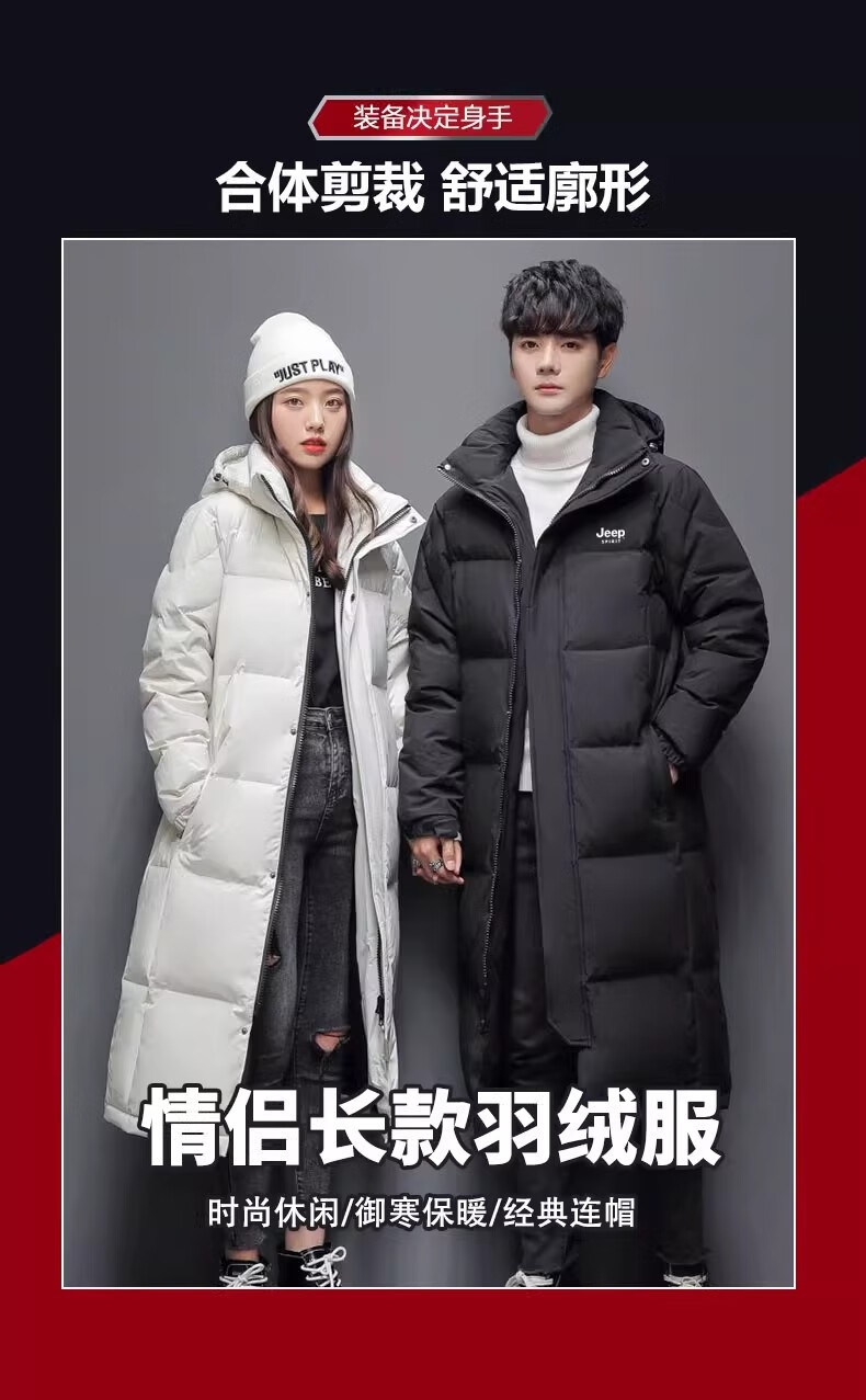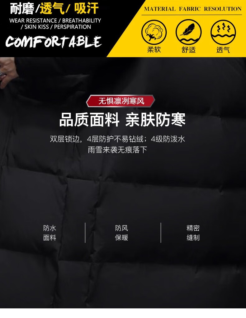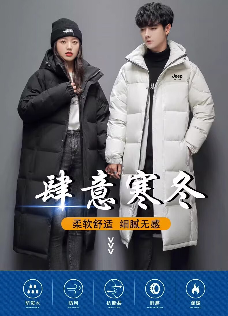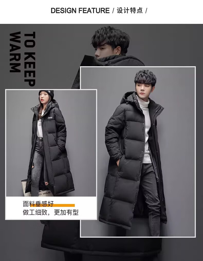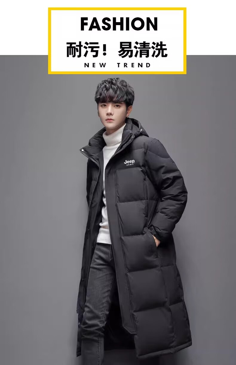 JEEP SPIRIT极寒零下40度新款中戏长款羽绒服男女情侣过膝外套白鸭绒保暖加厚 长款羽绒服-黑色【加绒保暖男女同款】 2XL 【130-150斤】