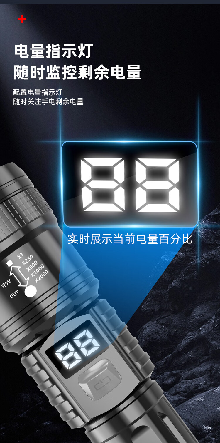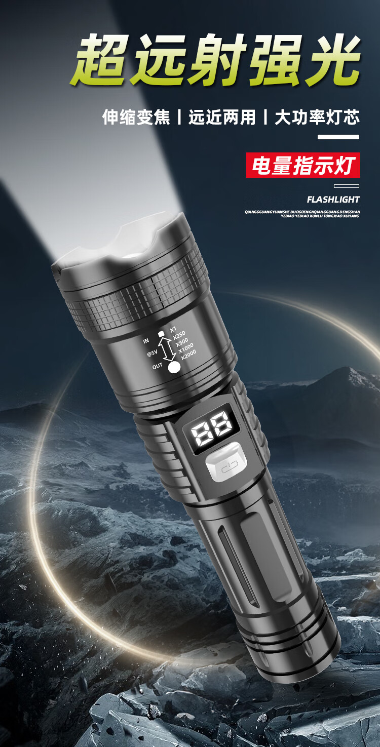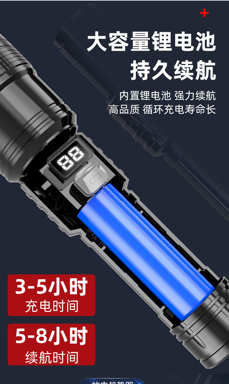 哈拿(TRE-Hana)手电筒户外强光远射超亮可充电伸缩变焦家用外出巡逻照明应急 K6607A手电筒【不带液晶显示】