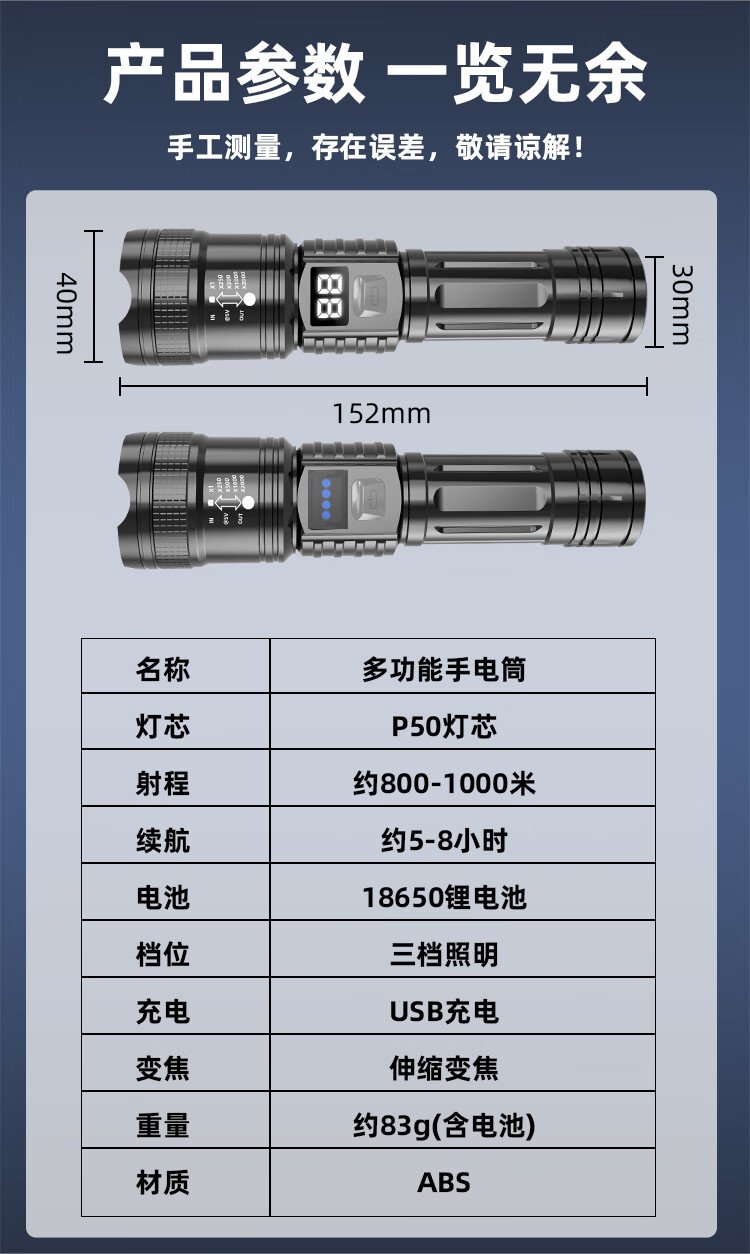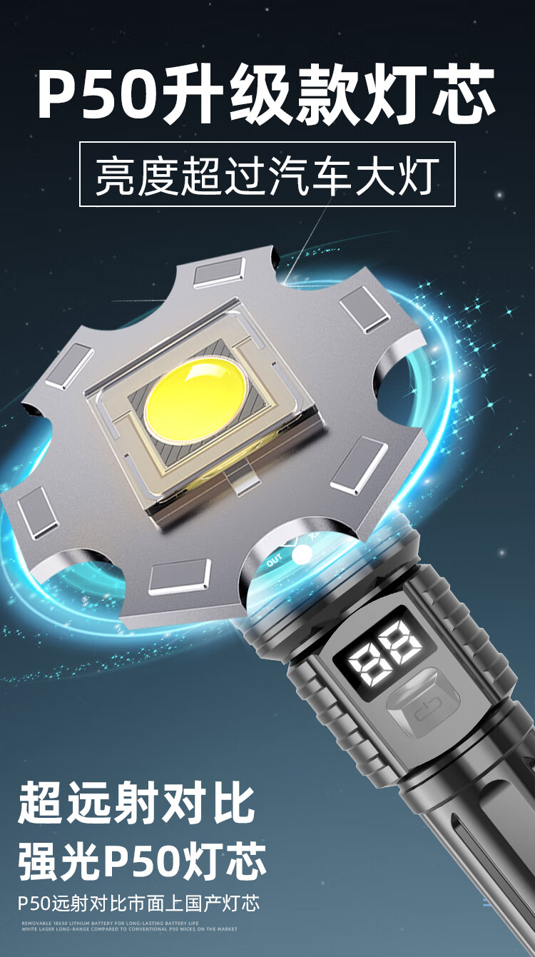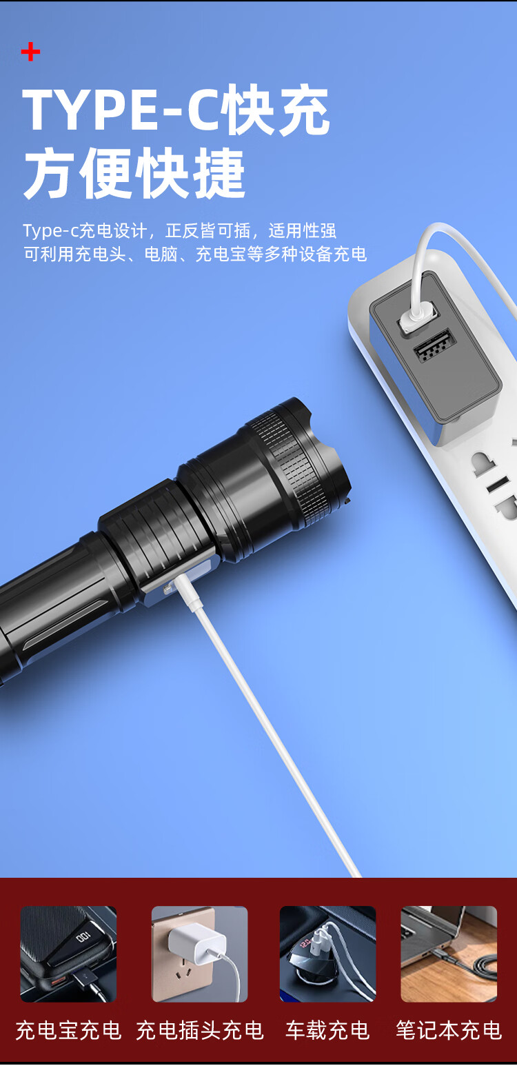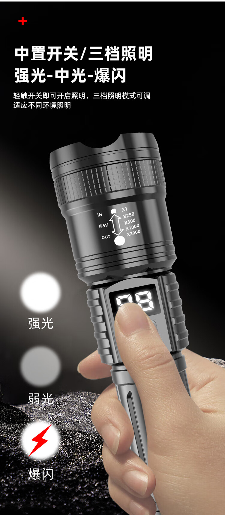 哈拿(TRE-Hana)手电筒户外强光远射超亮可充电伸缩变焦家用外出巡逻照明应急 K6607A手电筒【不带液晶显示】
