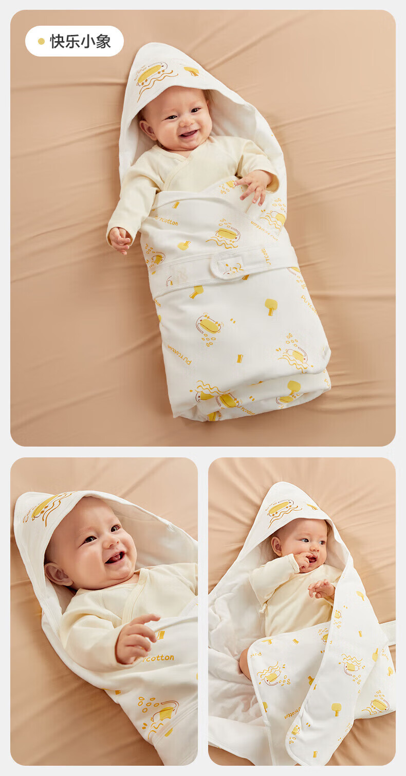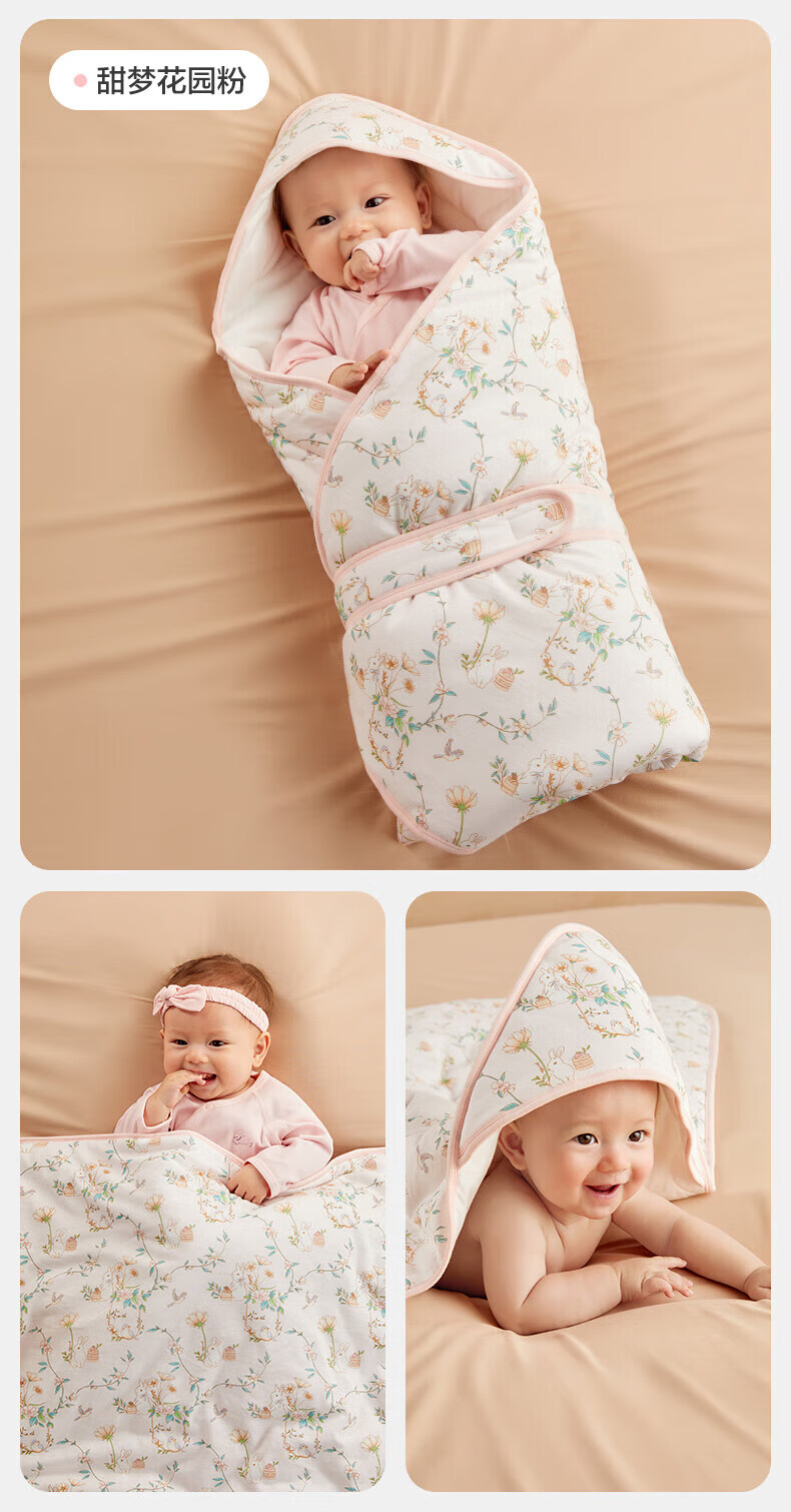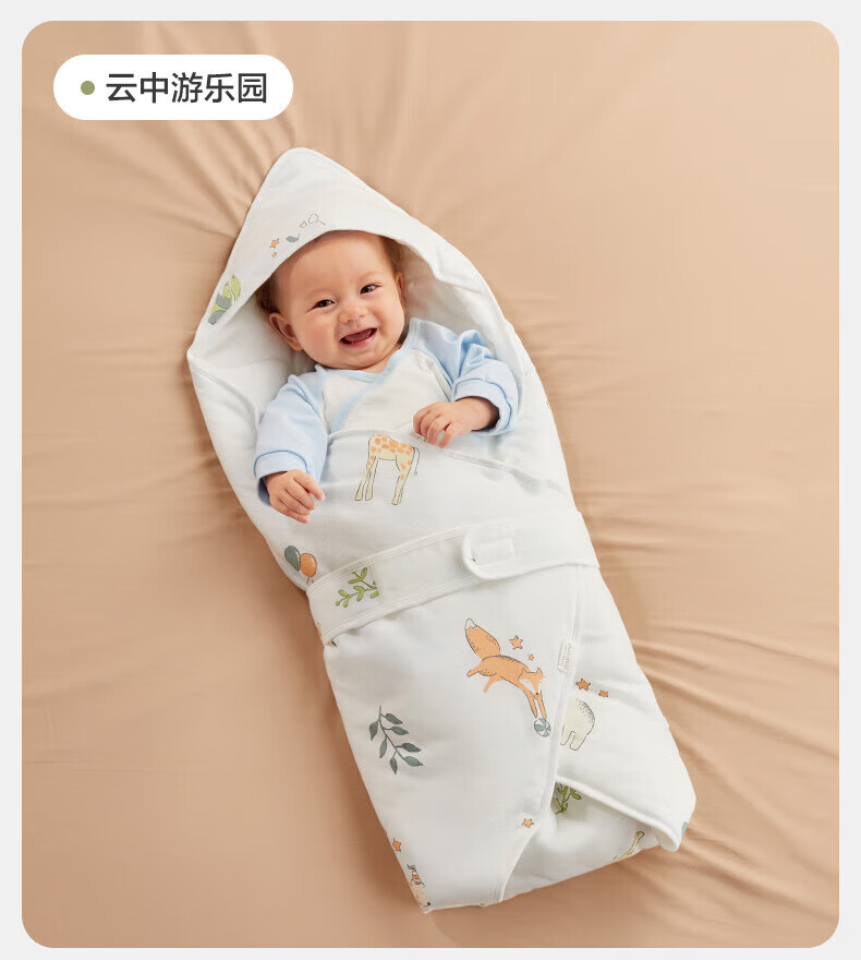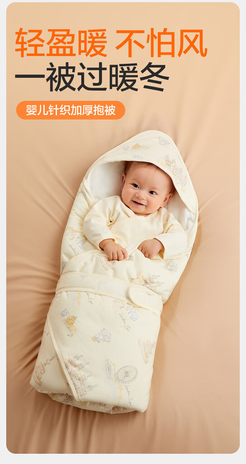 全棉时代(PurCotton)婴儿包被纯棉宝宝包被产房襁褓被子包单巾睡袋保温透气秋冬 【秋冬款】童话树屋 90×90cm