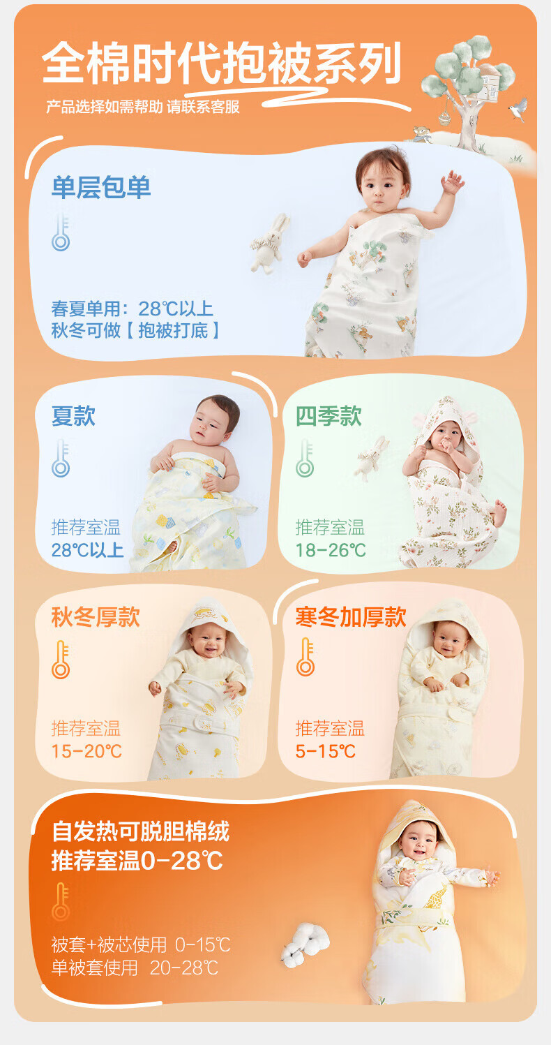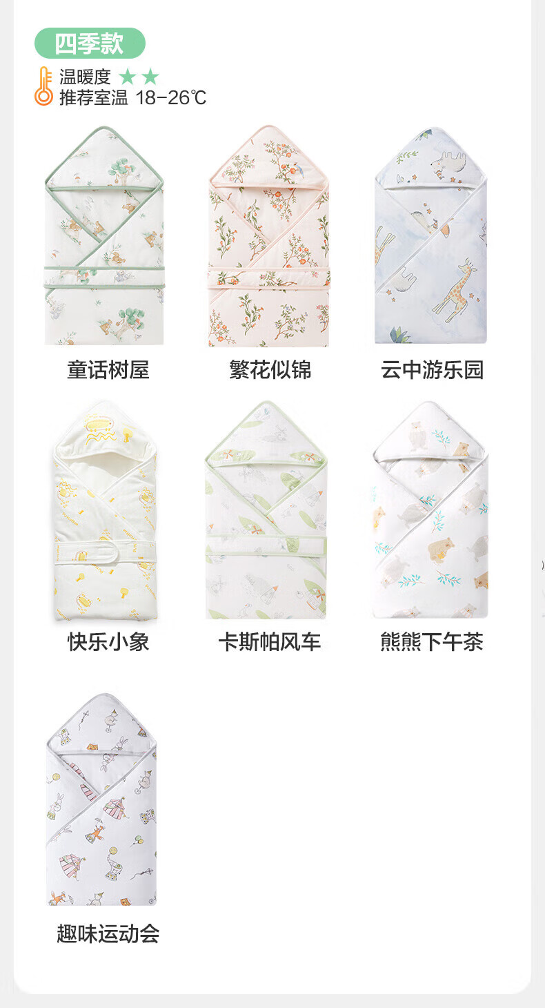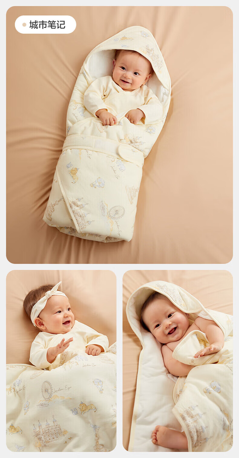 全棉时代(PurCotton)婴儿包被纯棉宝宝包被产房襁褓被子包单巾睡袋保温透气秋冬 【秋冬款】童话树屋 90×90cm