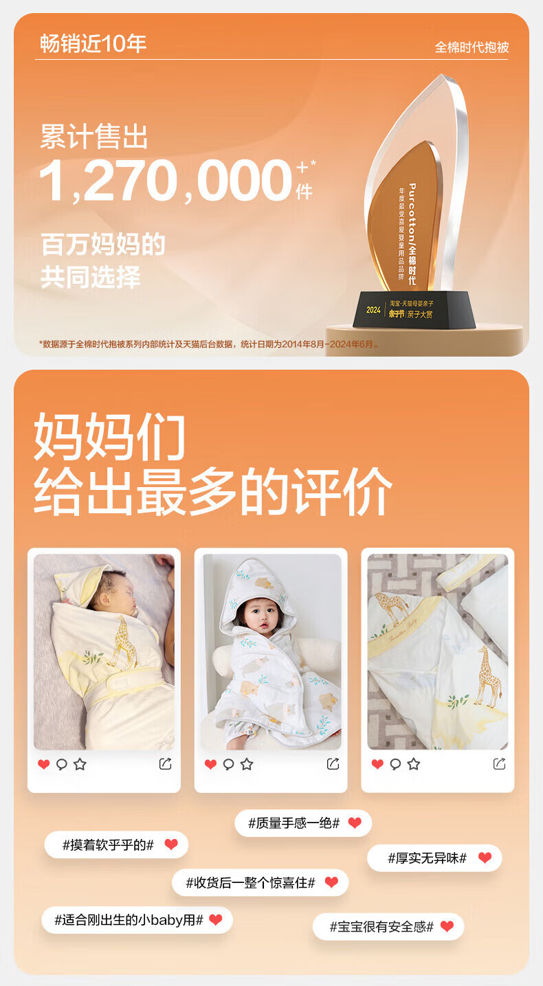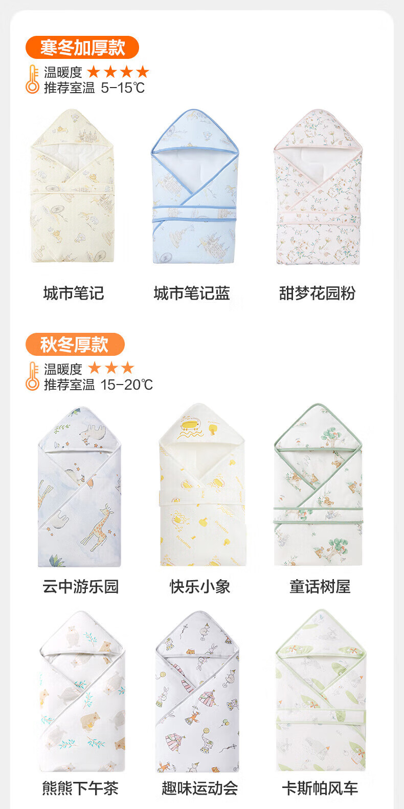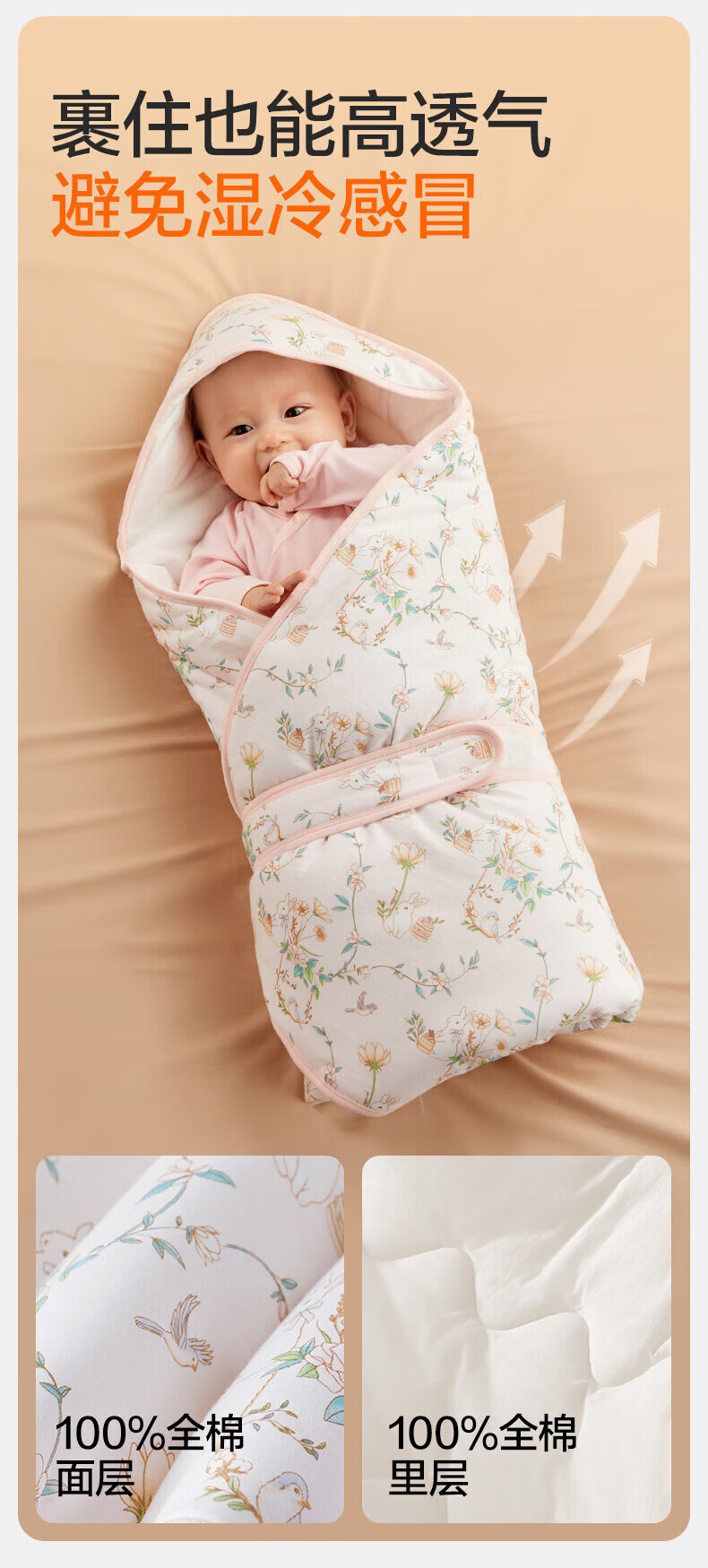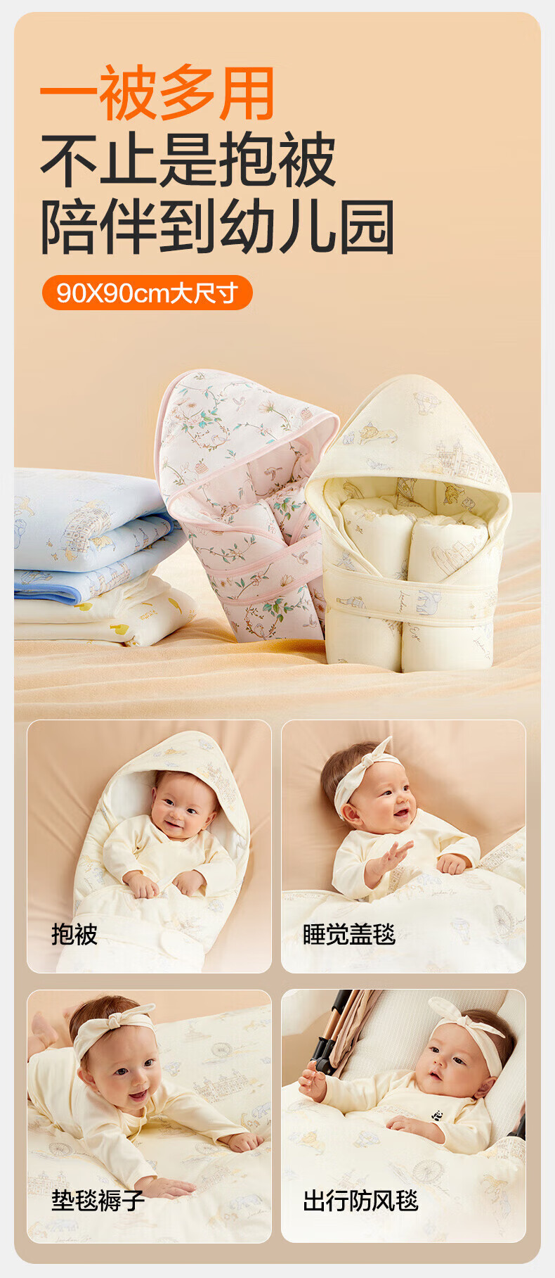 全棉时代(PurCotton)婴儿包被纯棉宝宝包被产房襁褓被子包单巾睡袋保温透气秋冬 【秋冬款】童话树屋 90×90cm