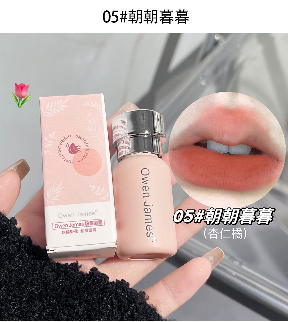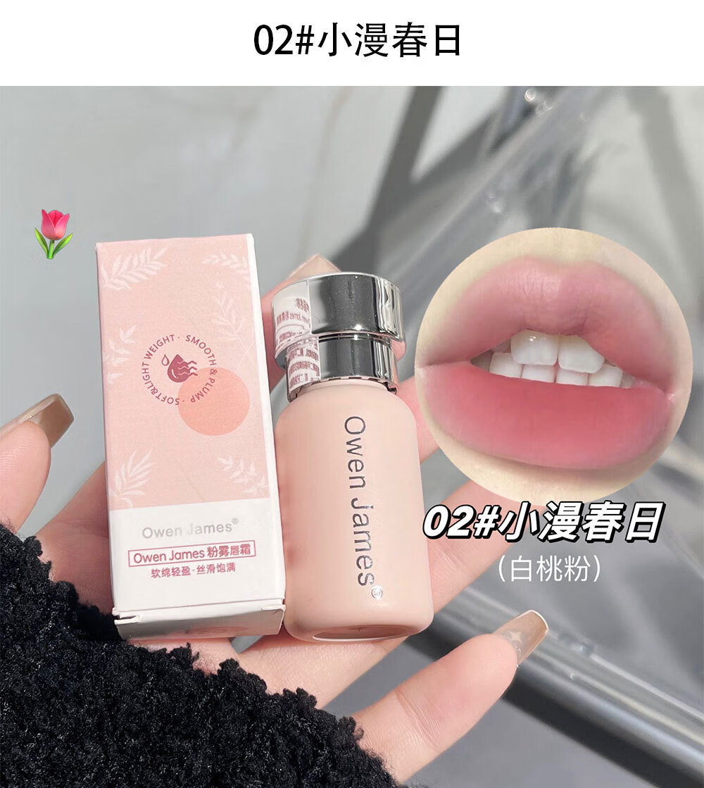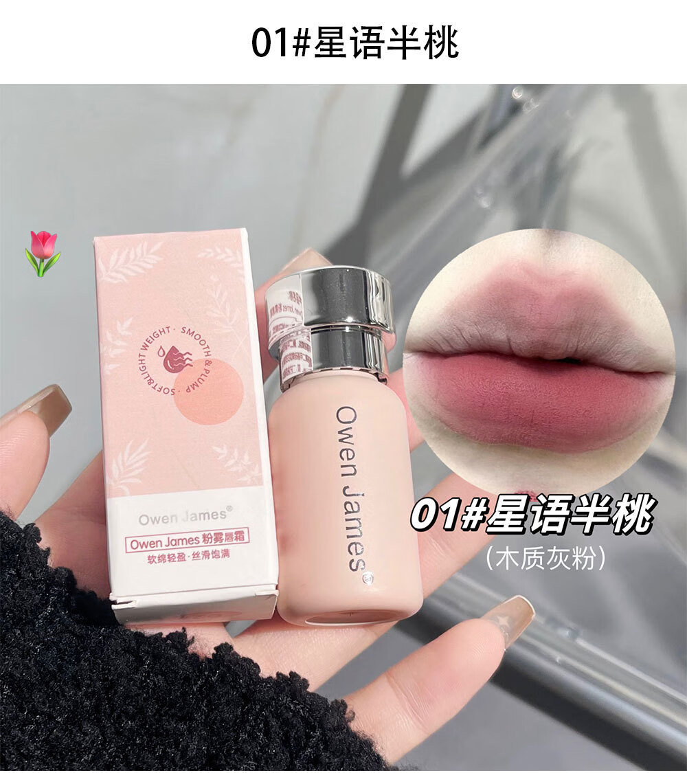 【工厂直发】Owenjames小粉霜唇泥哑光雾面丝绒持久不易掉色口红 01#星语半桃