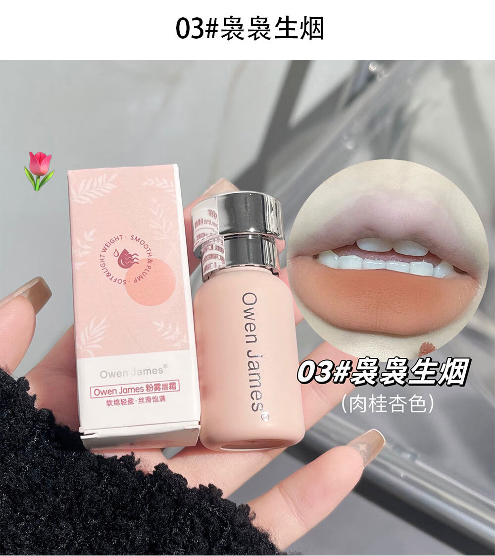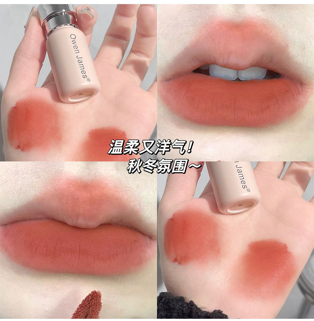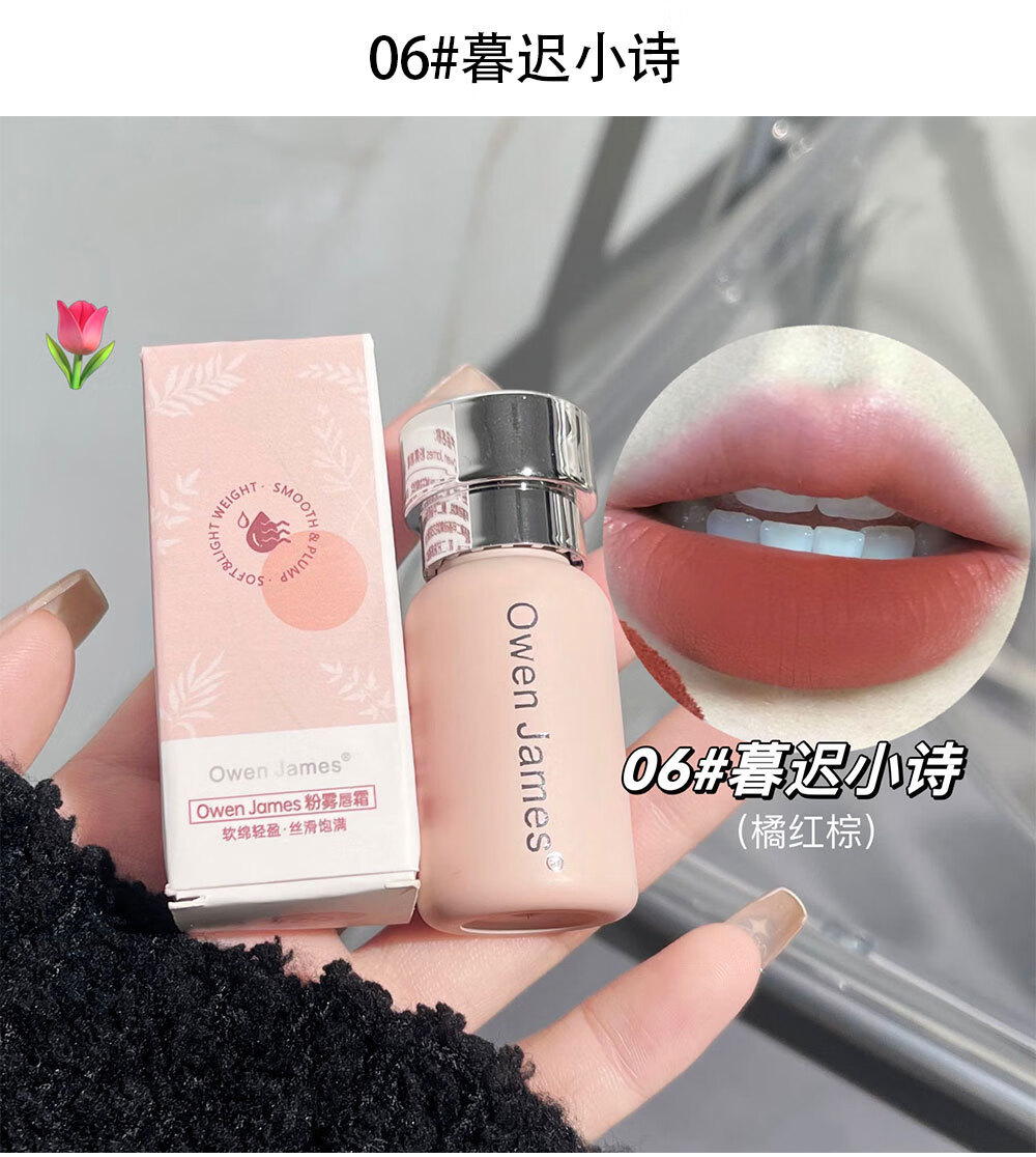 【工厂直发】Owenjames小粉霜唇泥哑光雾面丝绒持久不易掉色口红 01#星语半桃