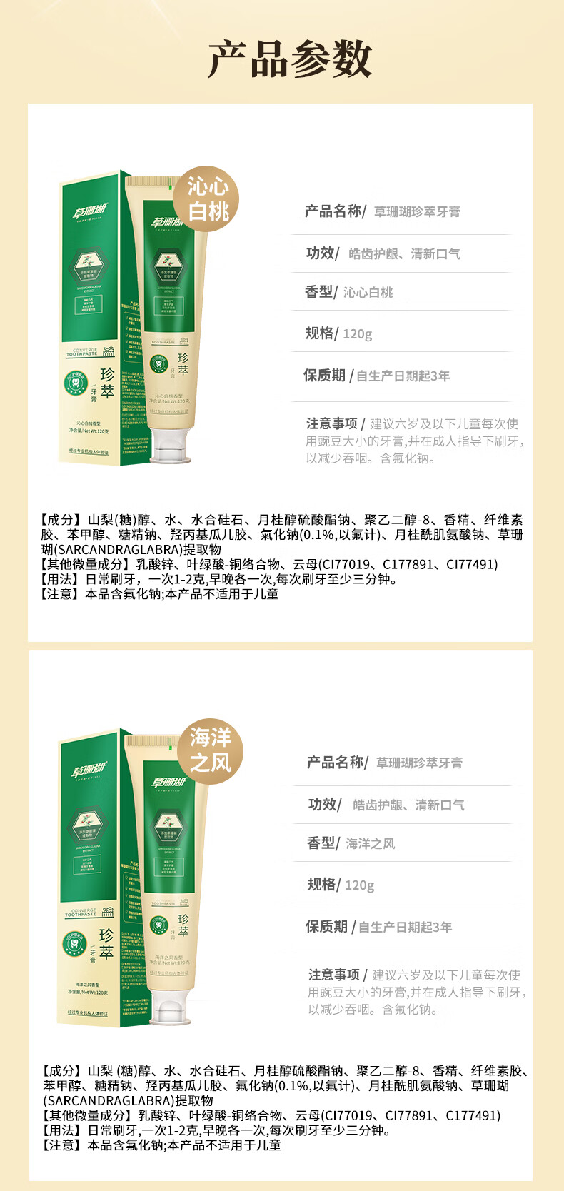草珊瑚 海洋之风珍萃牙膏120g清新口气去黄去渍洁白牙齿 海洋之风120g*1支