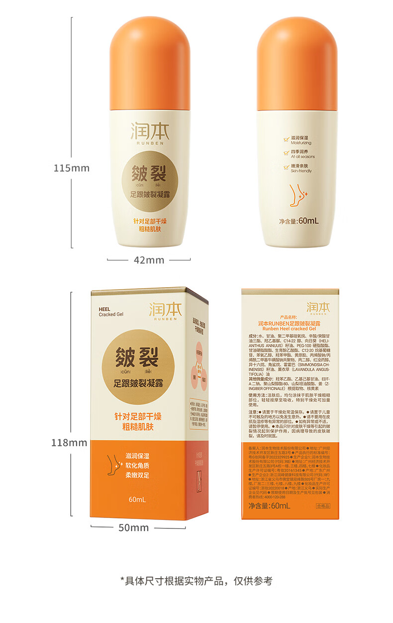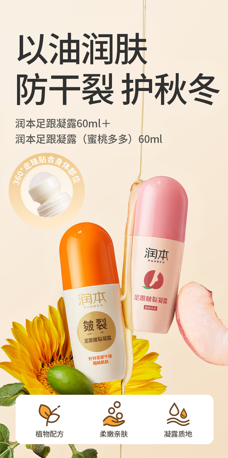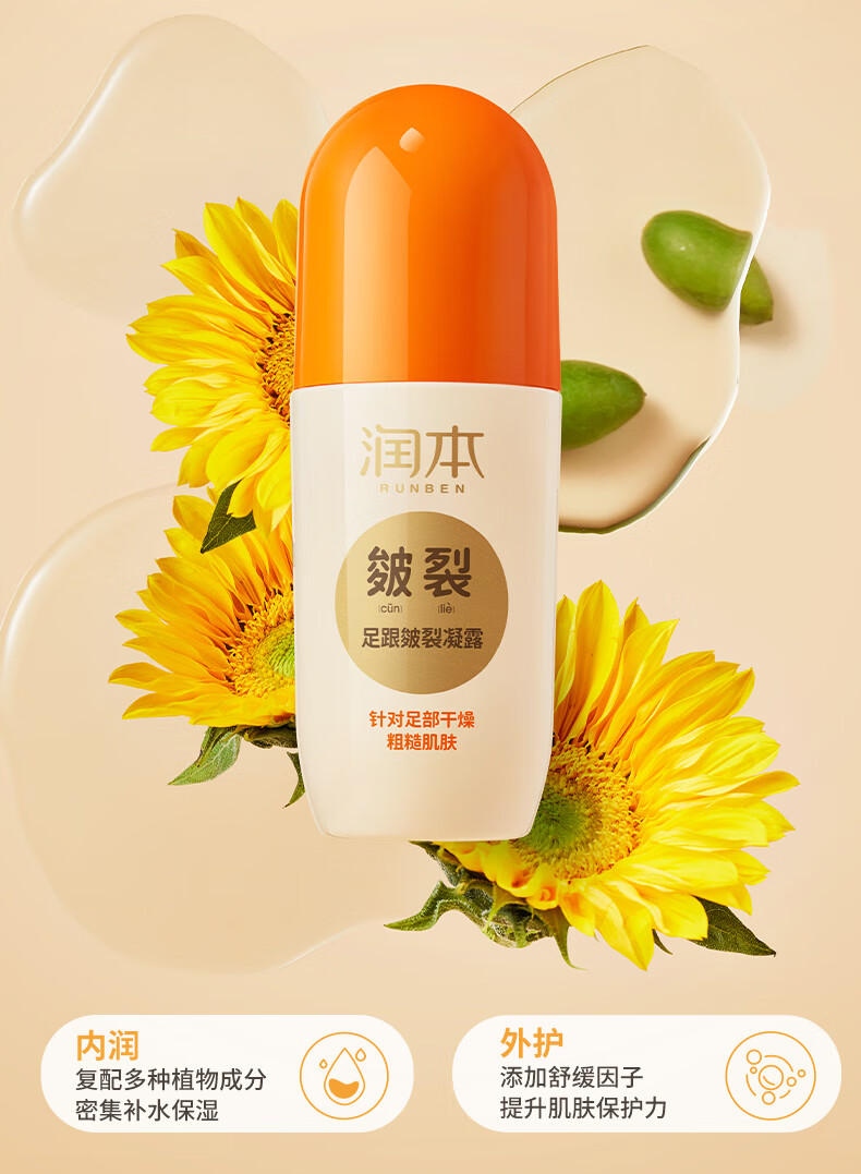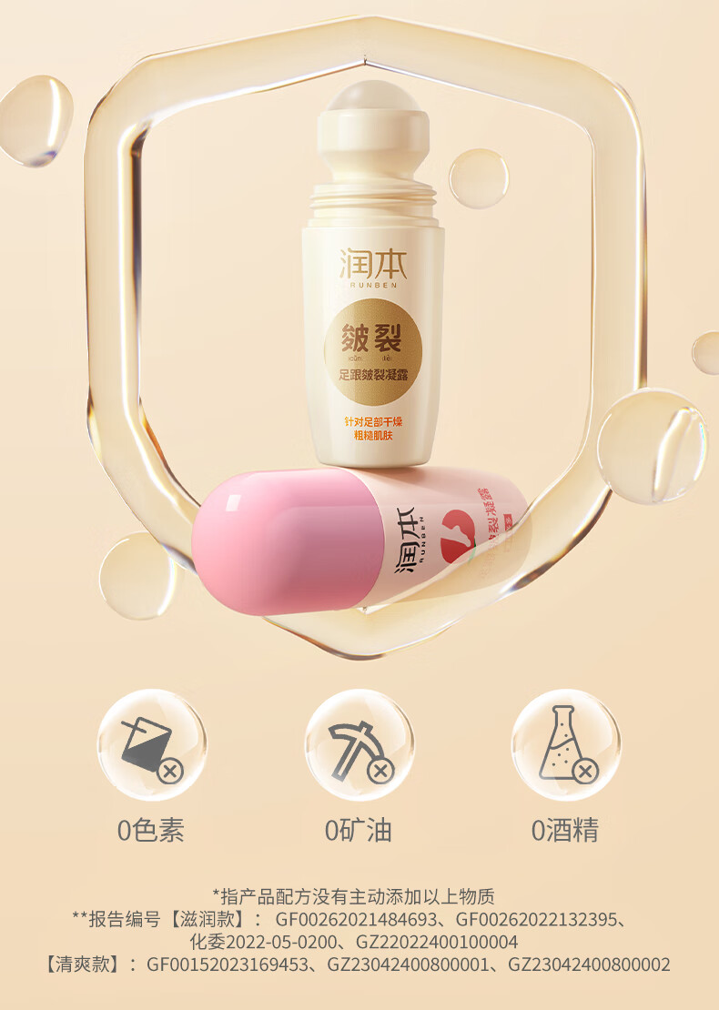 润本(RUNBEN)皴裂膏脚后跟干裂走珠露防裂龟开裂治脚裂脱皮滋润护足霜滚珠 15g 1瓶 皴裂膏
