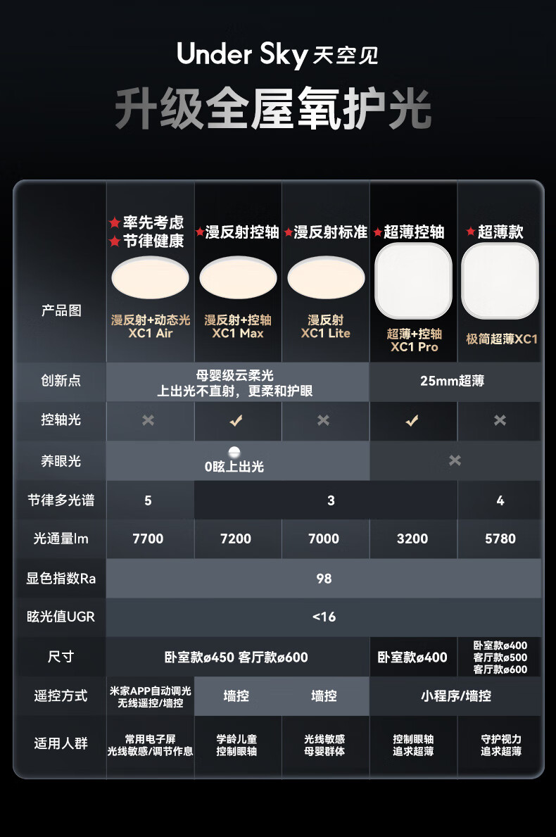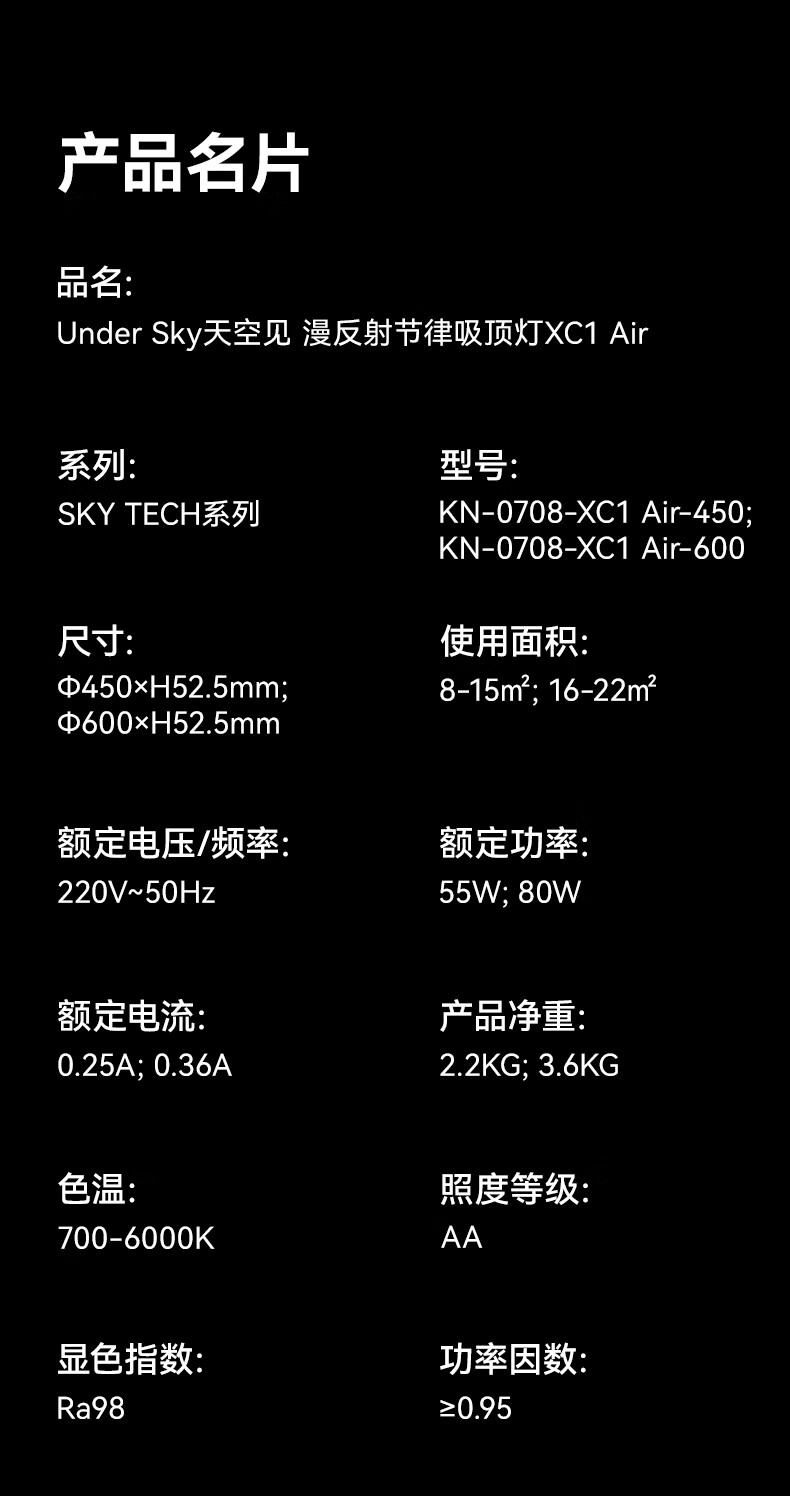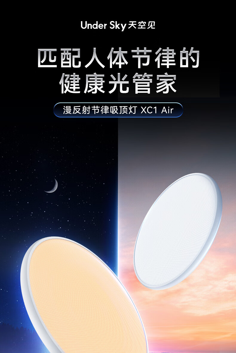 UNDER SKY 天空见吸顶灯LED客厅灯全光谱漫反射节律卧室灯智能控制 XC1-Air450