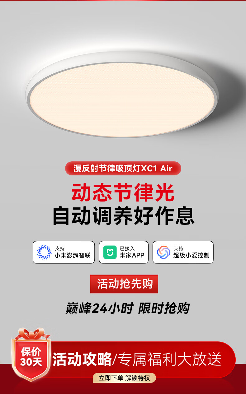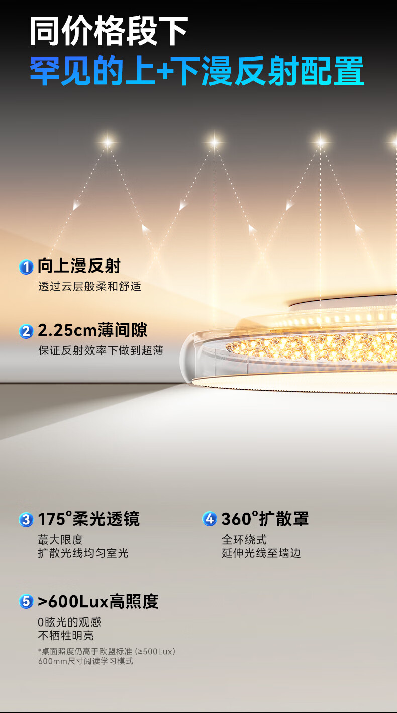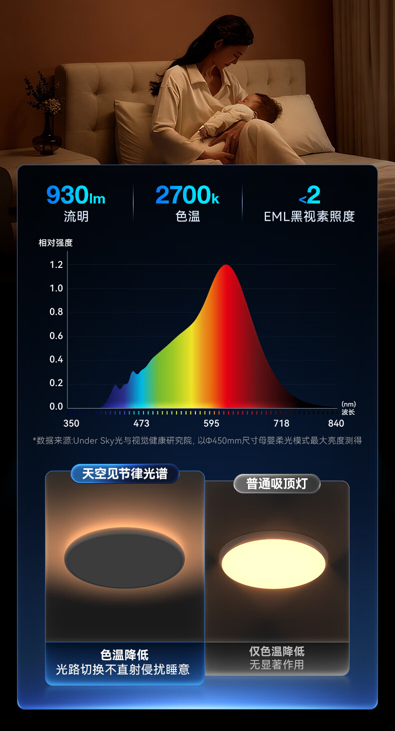 UNDER SKY 天空见吸顶灯LED客厅灯全光谱漫反射节律卧室灯智能控制 XC1-Air450
