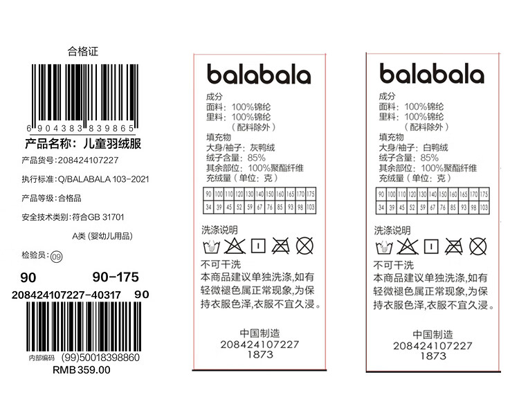 巴拉巴拉童装男童羽绒服宝宝儿童秋冬轻薄女童中大童外套保暖208424107227