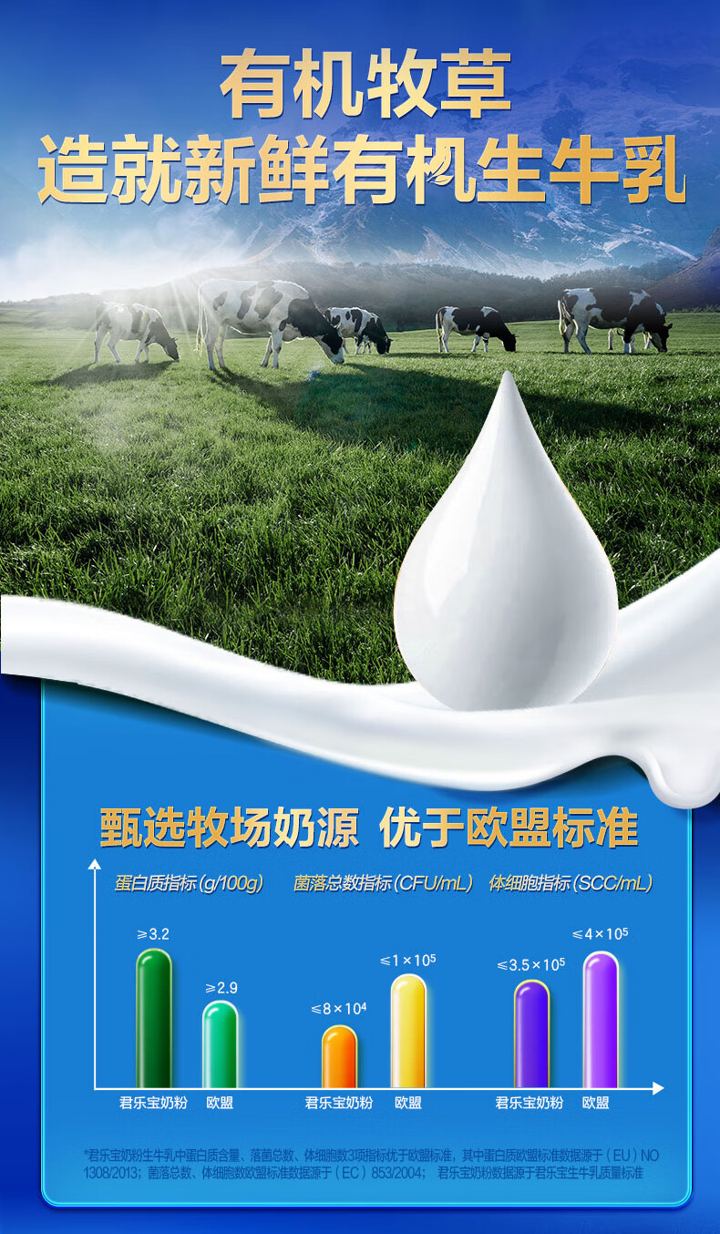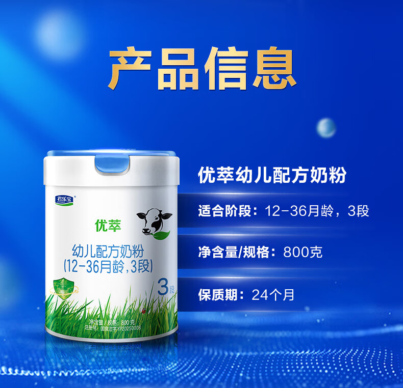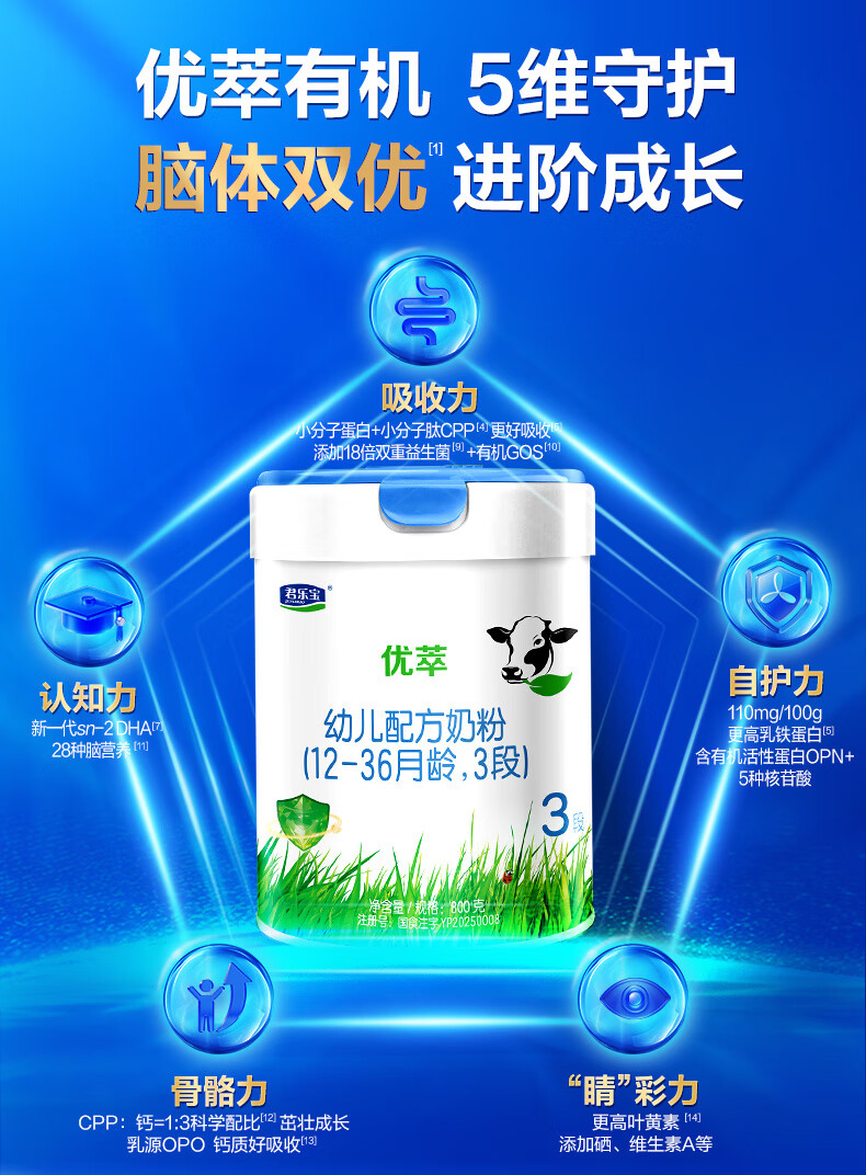 君乐宝(JUNLEBAO)有机优萃3段幼儿配方奶粉(12-36月龄)800g听装新旧随机发货