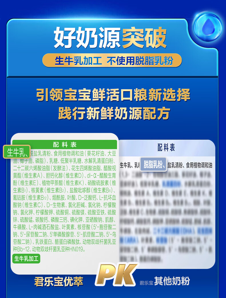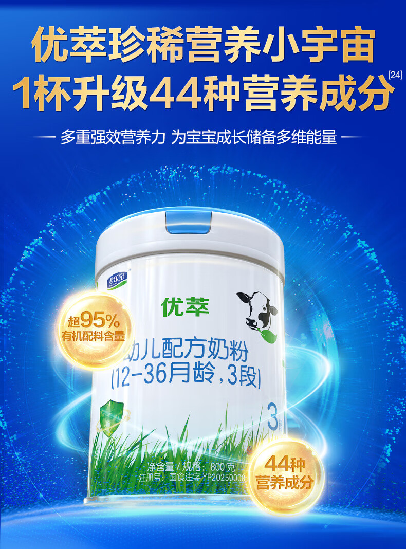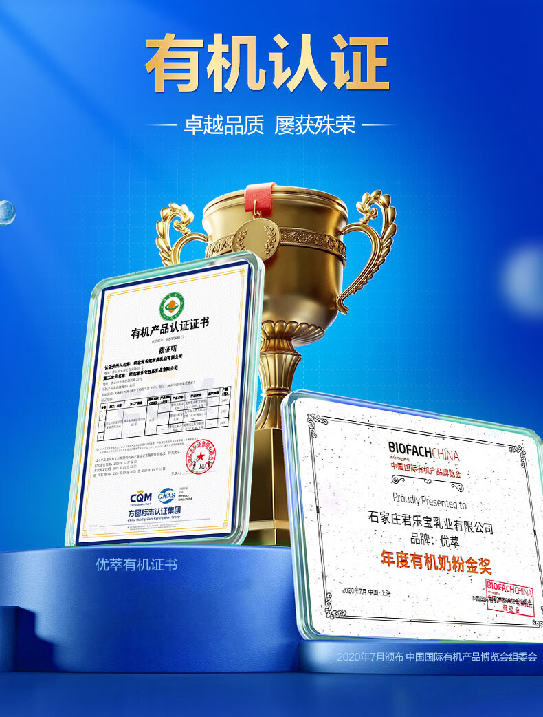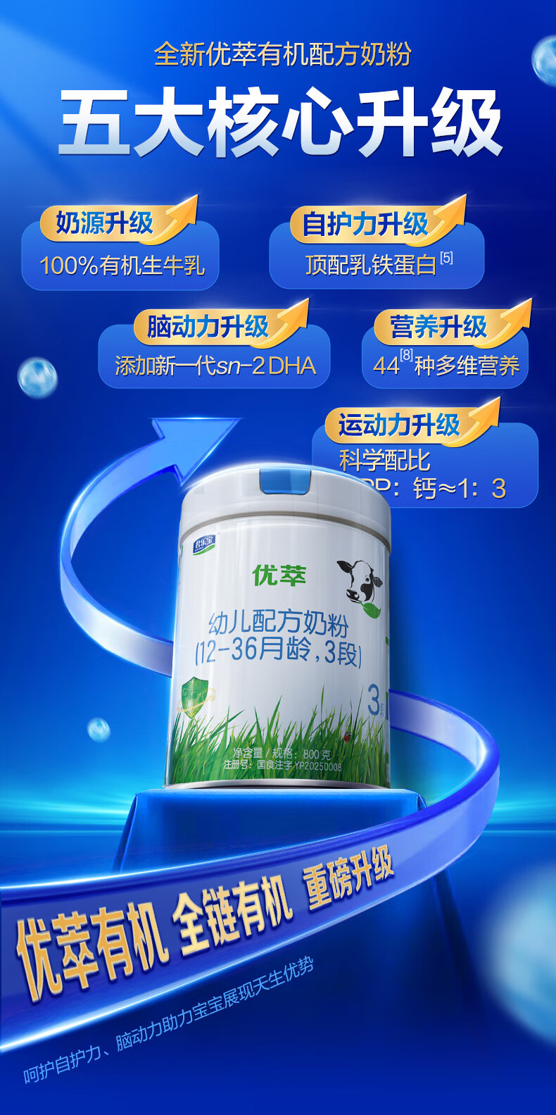 君乐宝(JUNLEBAO)有机优萃3段幼儿配方奶粉(12-36月龄)800g听装新旧随机发货