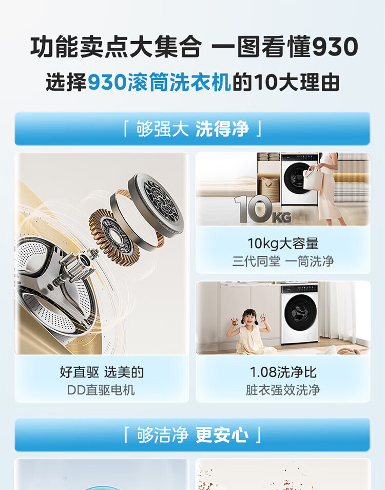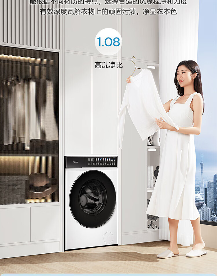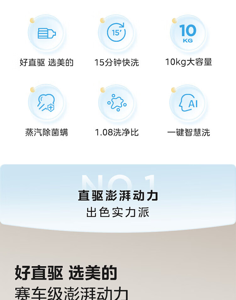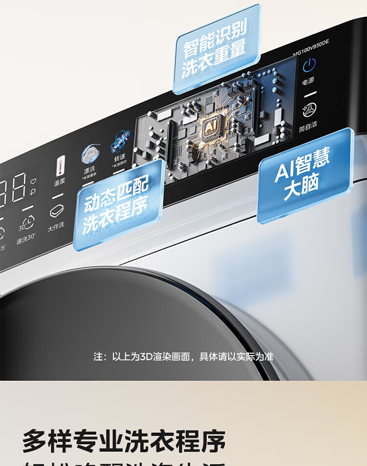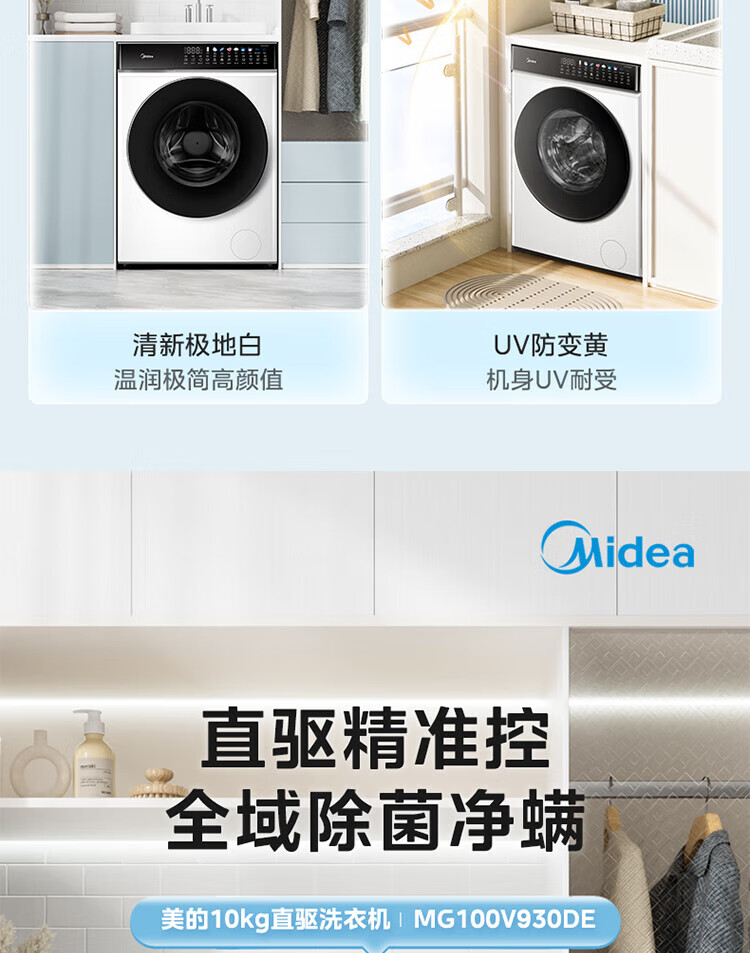 美的(Midea)滚筒洗衣机全自动家用10公斤直驱变频 轻净直驱系列 蒸汽除菌螨 筒自洁 以旧换新 MG100V930DE