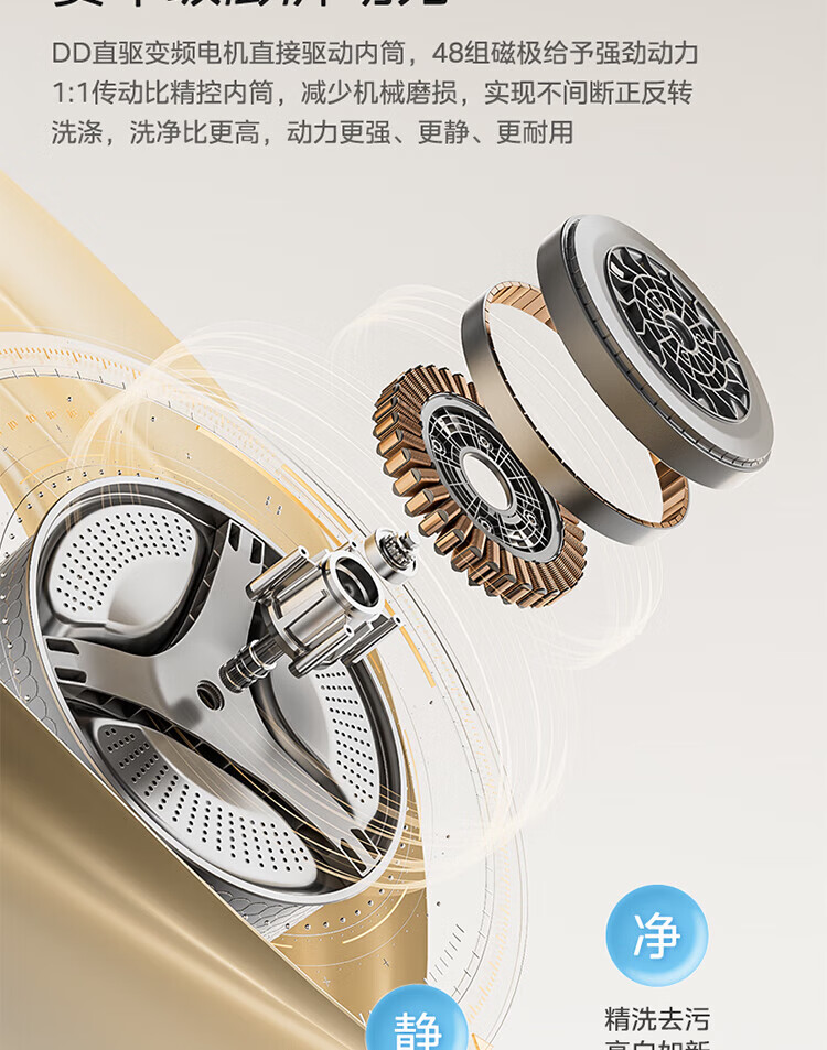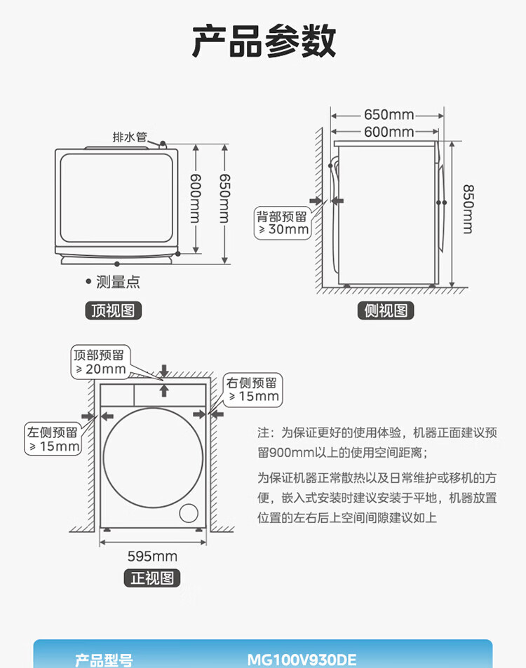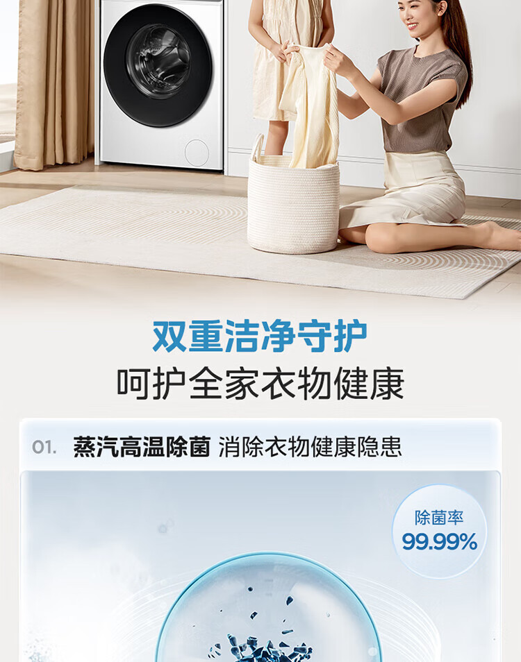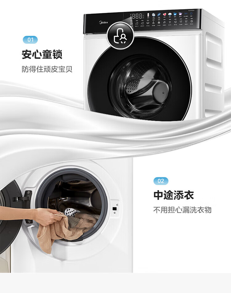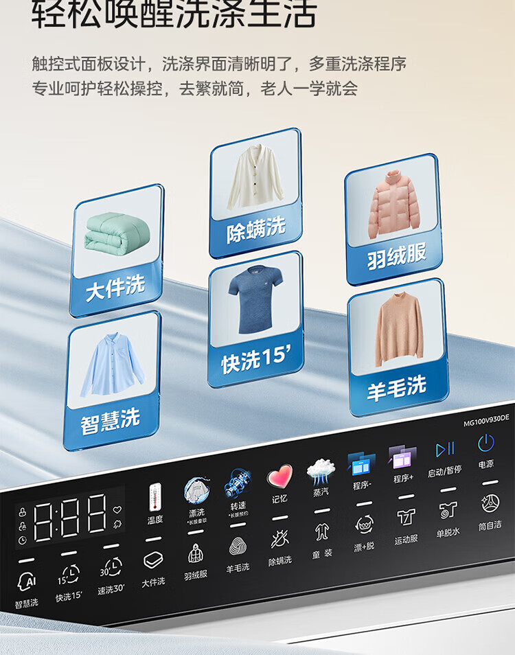 美的(Midea)滚筒洗衣机全自动家用10公斤直驱变频 轻净直驱系列 蒸汽除菌螨 筒自洁 以旧换新 MG100V930DE