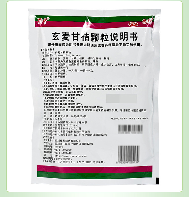 蜀中 玄麦甘桔颗粒 10克*20袋 清热滋阴 祛痰利咽 用于阴虚火旺 虚火上浮 口鼻干燥 咽喉肿痛