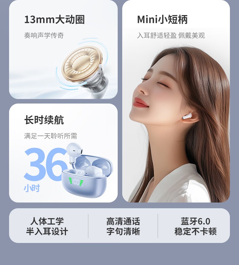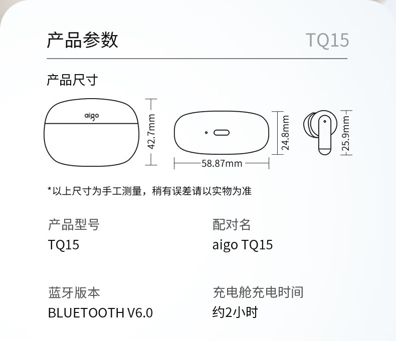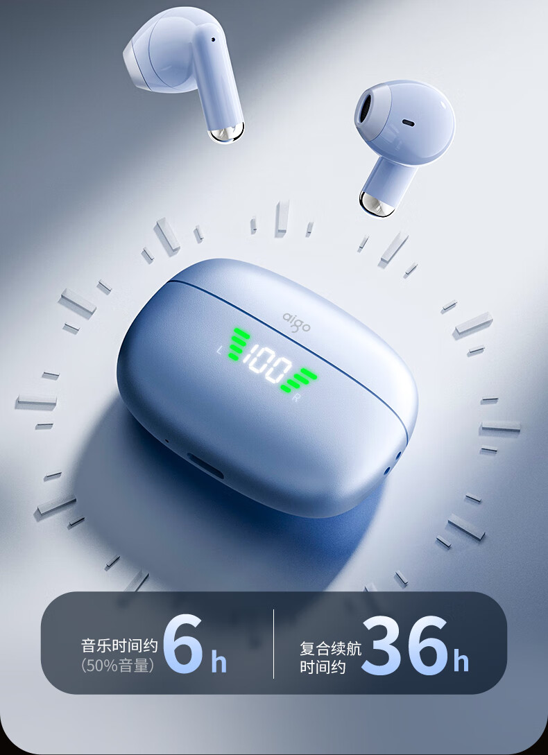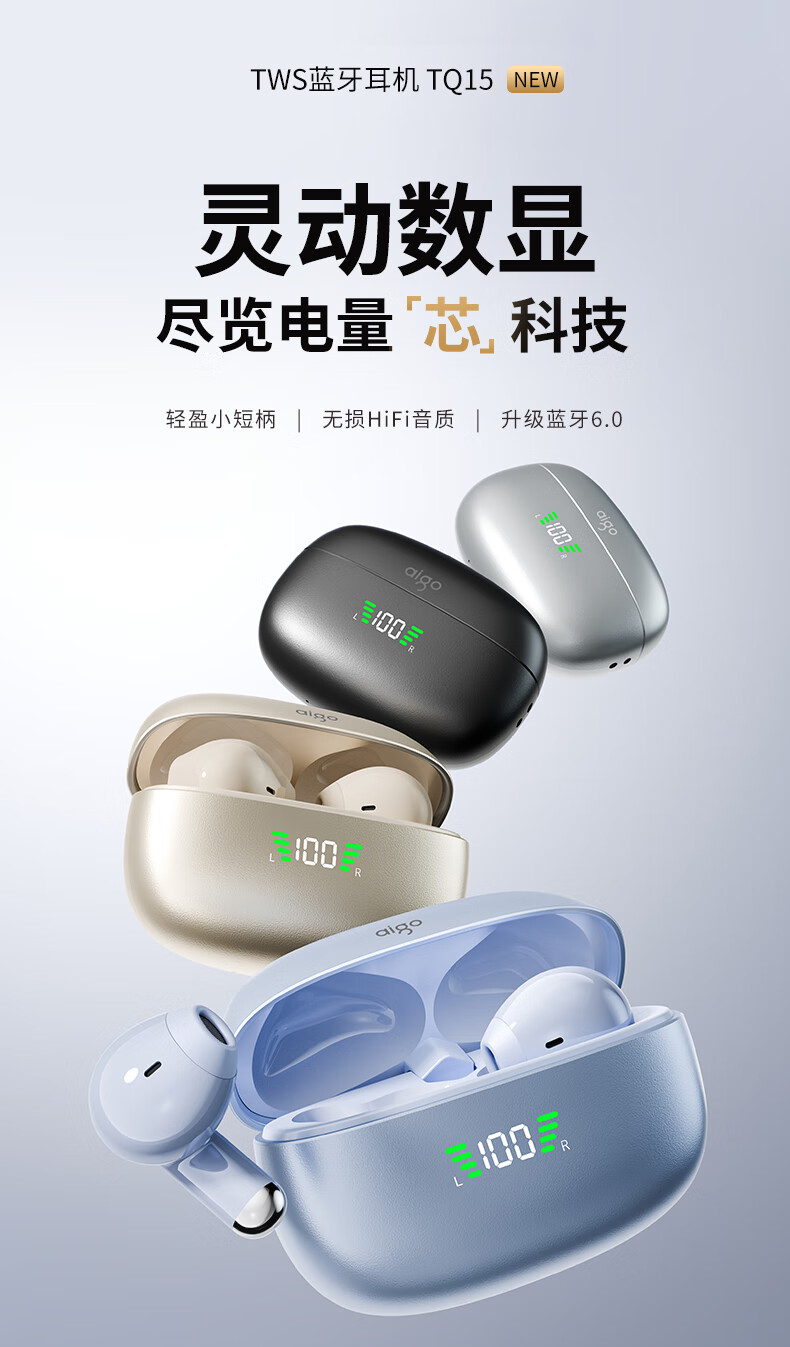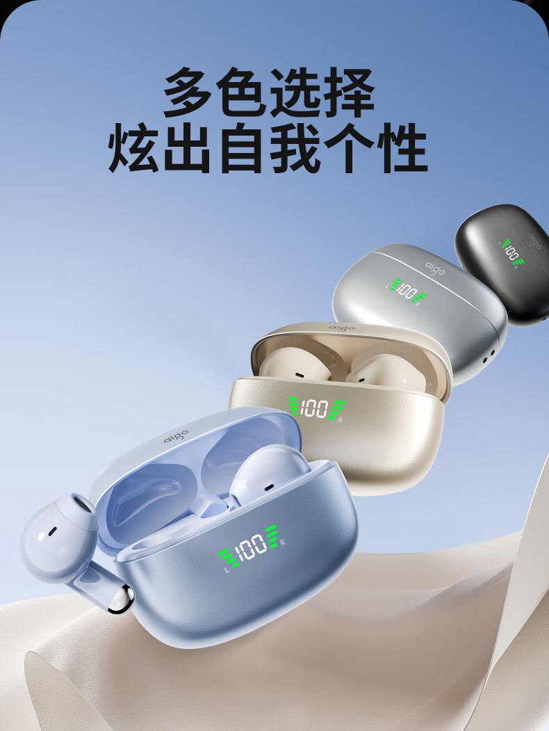 爱国者(aigo)【25年新款电量数显蓝牙6.0】无线蓝牙耳机半入耳运动游戏长续航好音质适用于苹果小米TQ15鎏金米