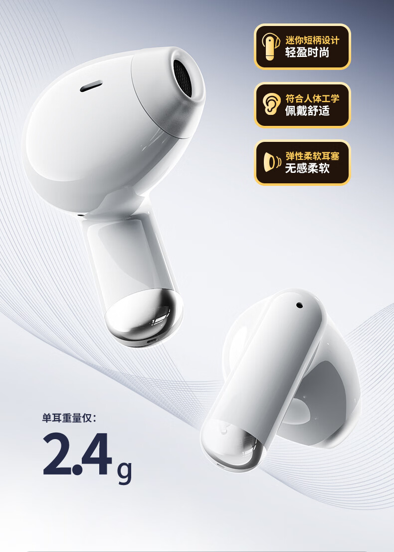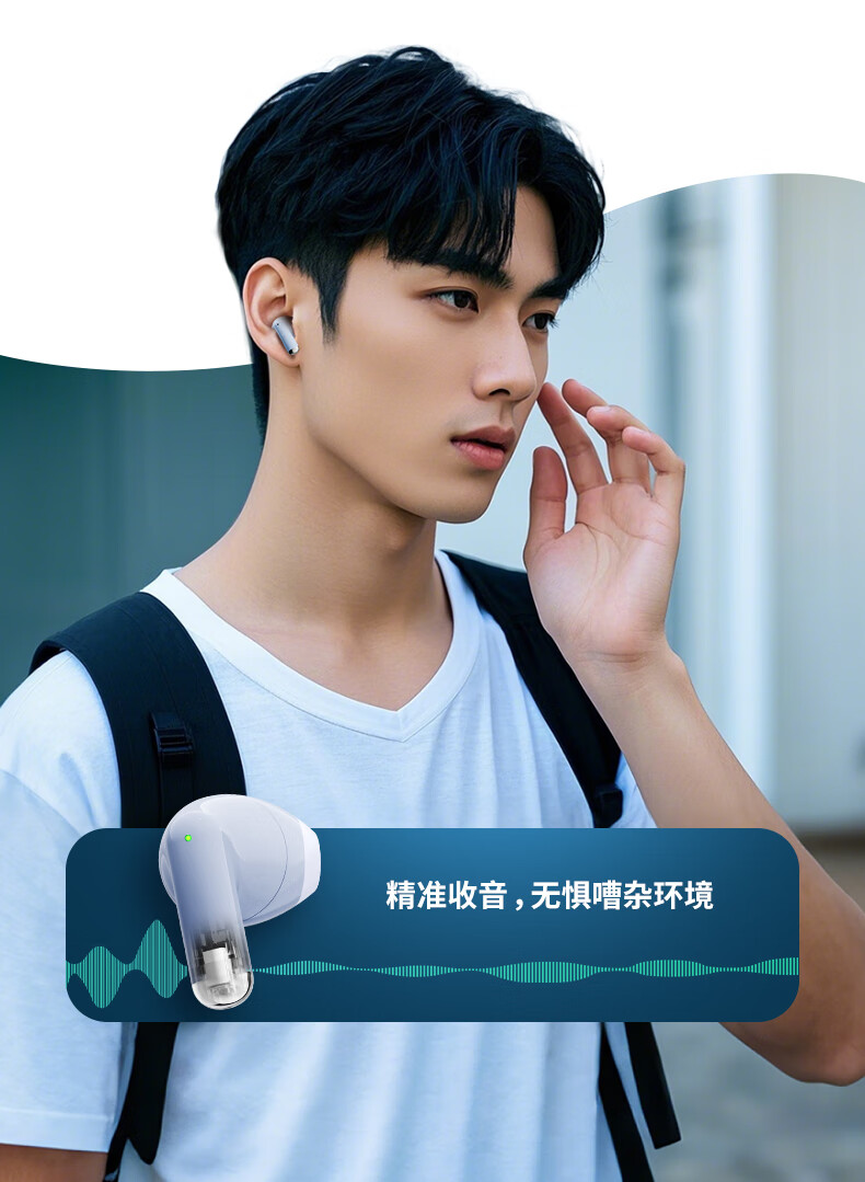 AI降噪 适用蓝牙耳机真无线半入耳式主动降噪低音 雪白5.4立体全景音效+降噪佩戴更