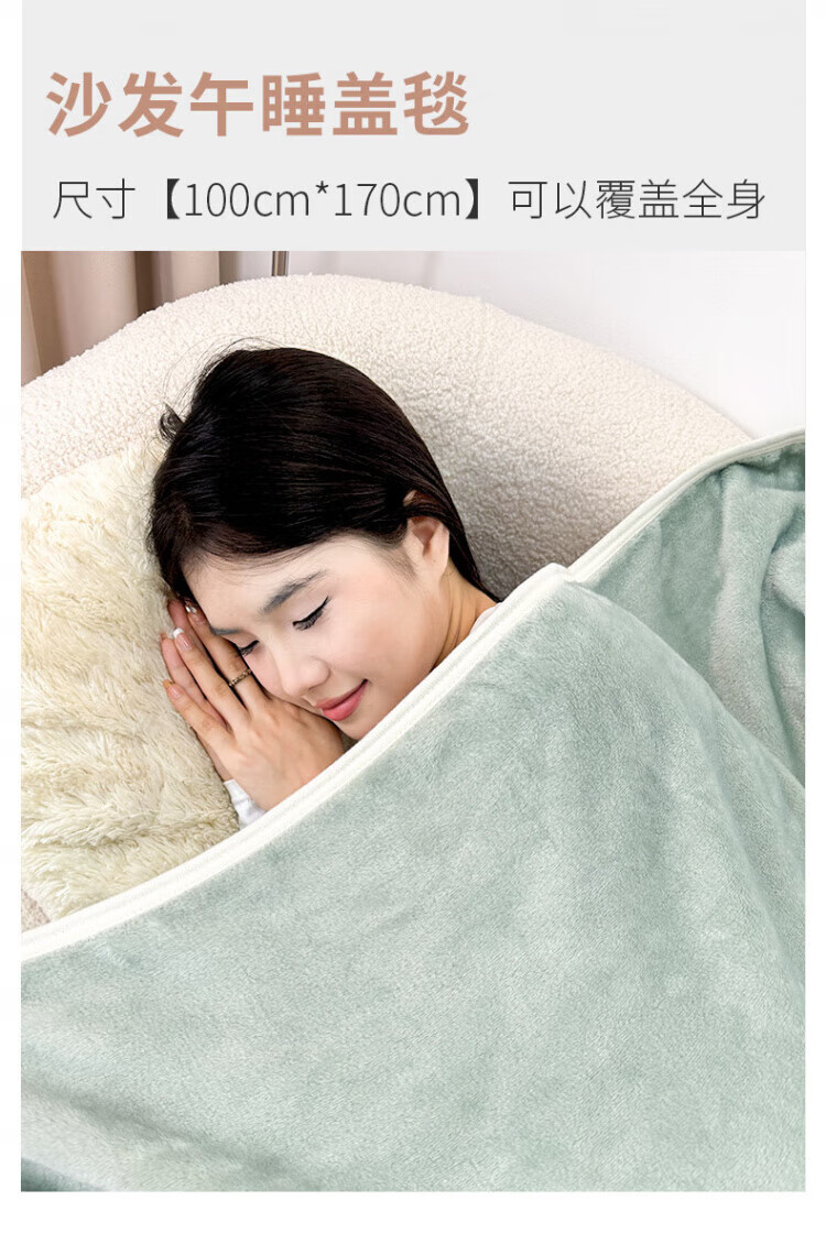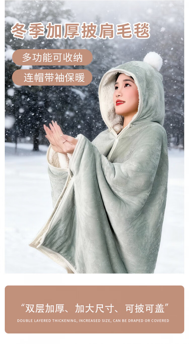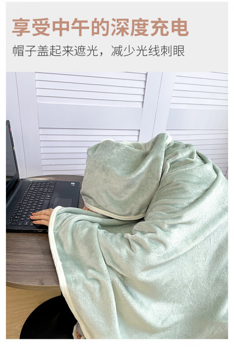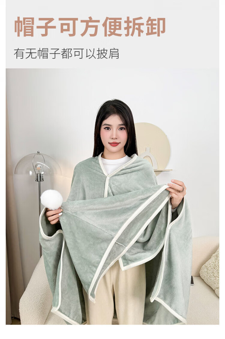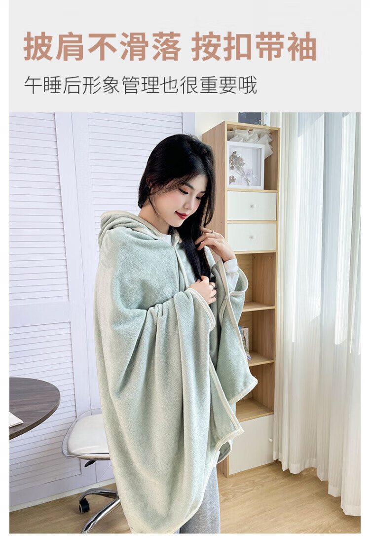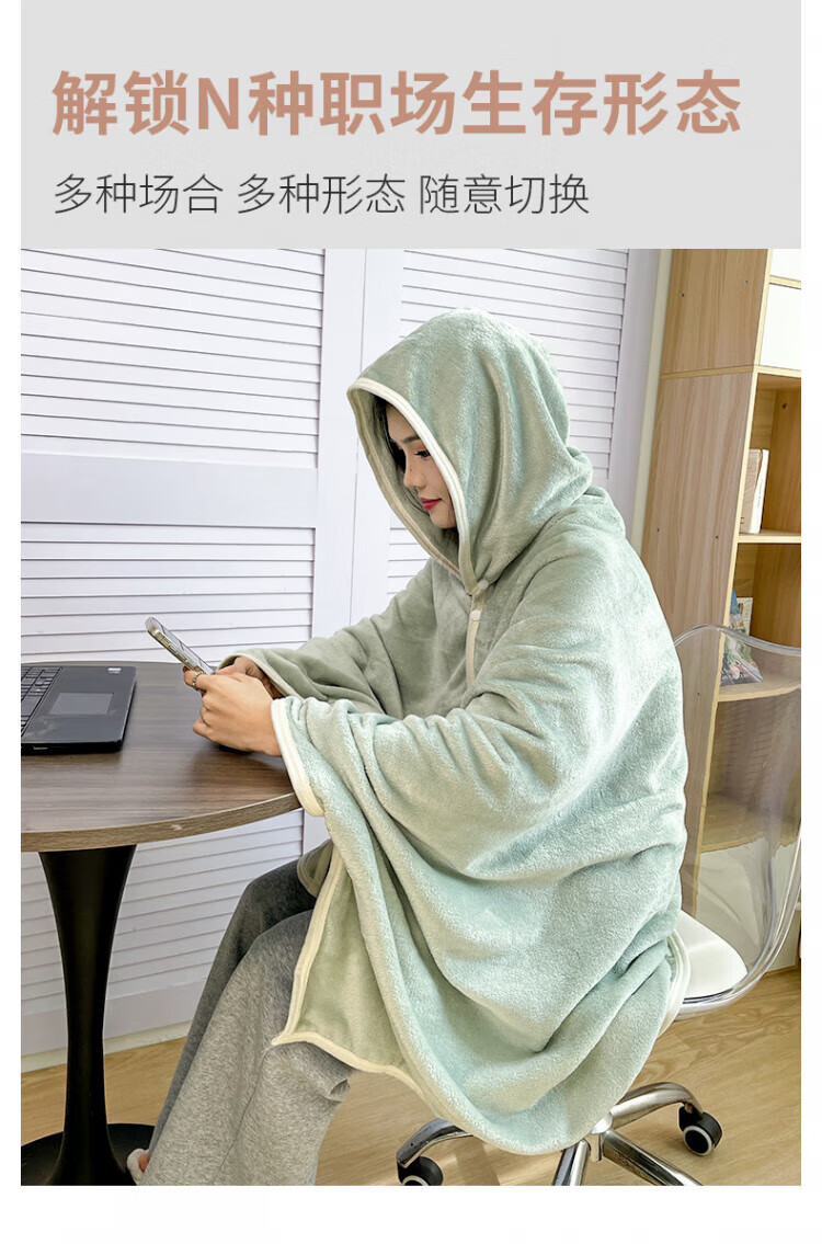 WCZ德国冬季办公室披肩毛毯午休小毯子可收纳工位空调连帽带帽斗篷午 抹茶绿-薄款 100cm*170cm