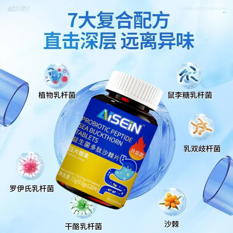 益生菌多肽沙棘片口臭口气重嘴巴臭苦干丁香口腔异味清新留香持久 1瓶120片【加强装多瓶更划算】