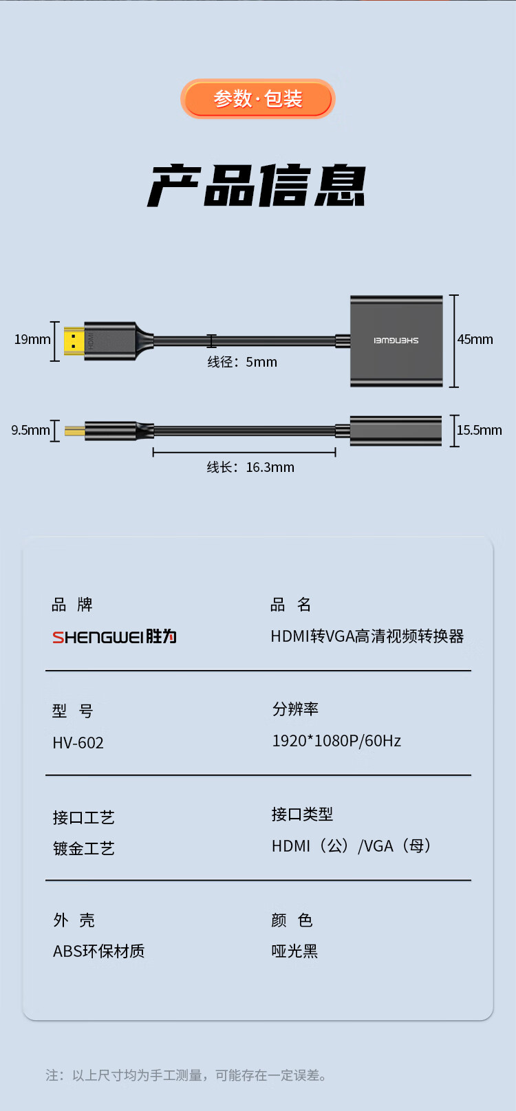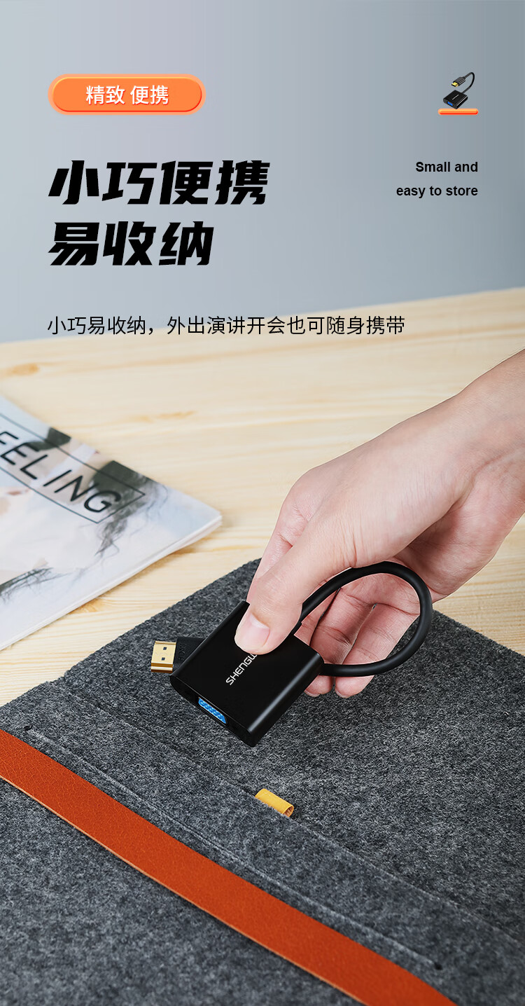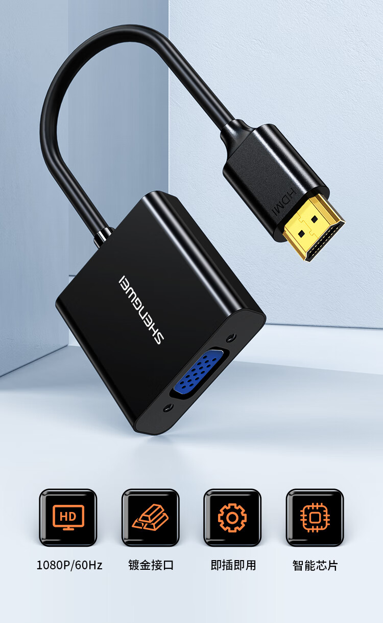 胜为(shengwei)HDMI转VGA线转换器 高清视频转接头适配器 笔记本电脑机顶盒连接电视显示器投影仪 黑HV-602