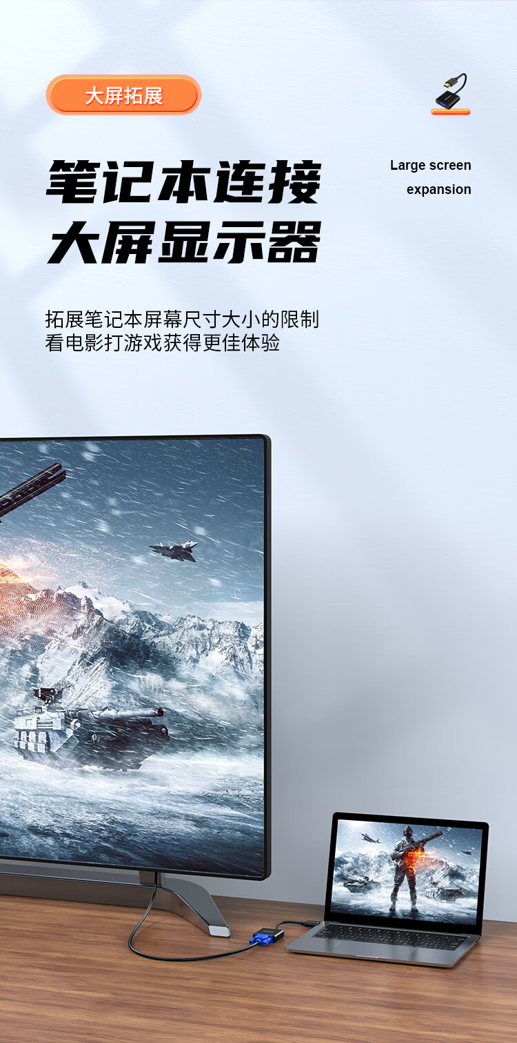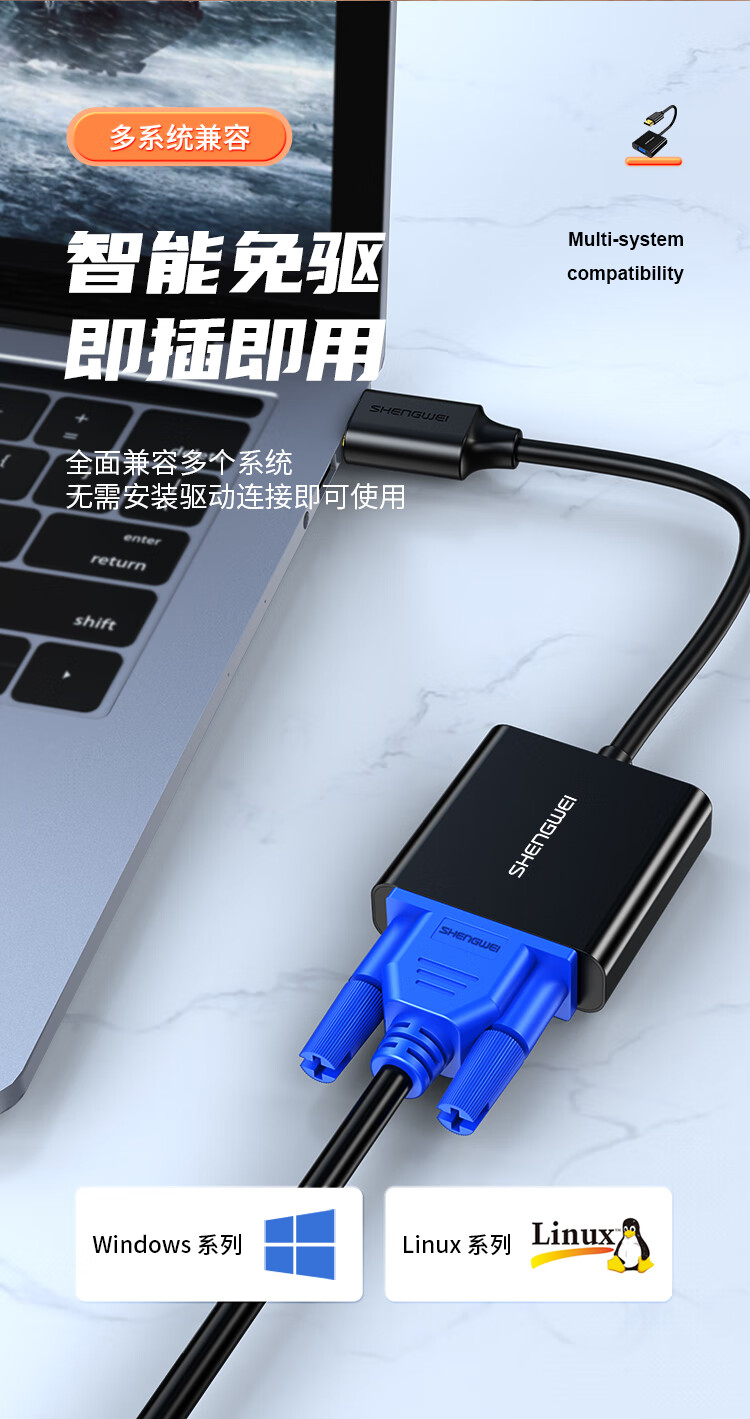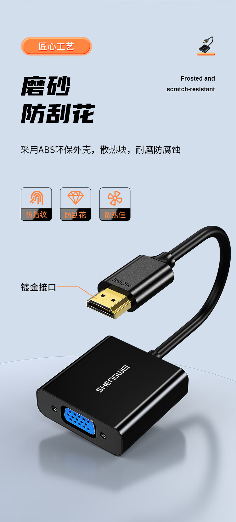 胜为(shengwei)HDMI转VGA线转换器 高清视频转接头适配器 笔记本电脑机顶盒连接电视显示器投影仪 黑HV-602