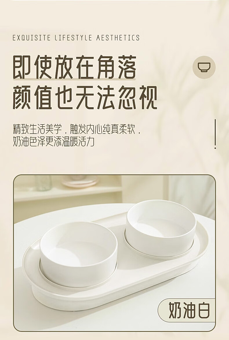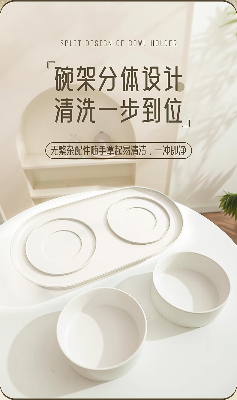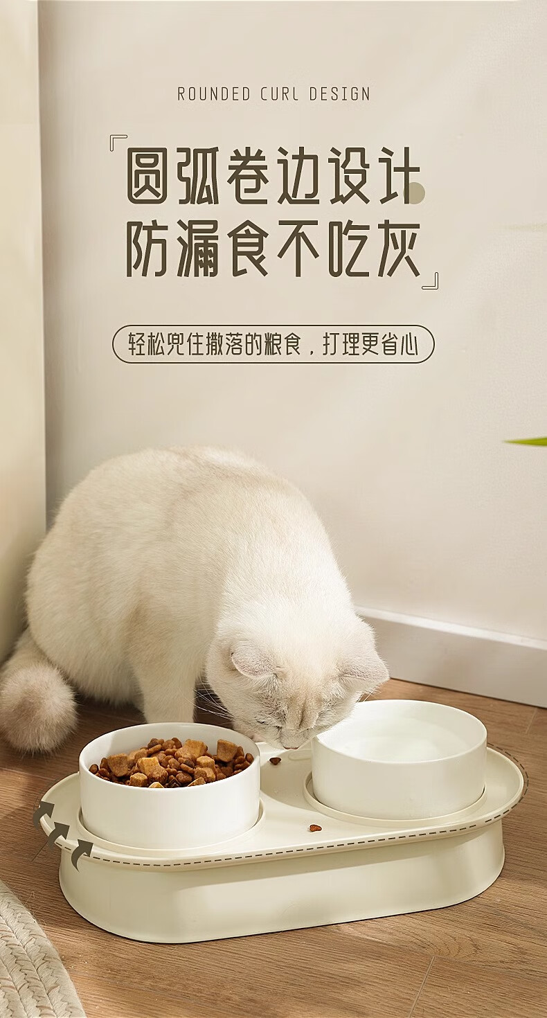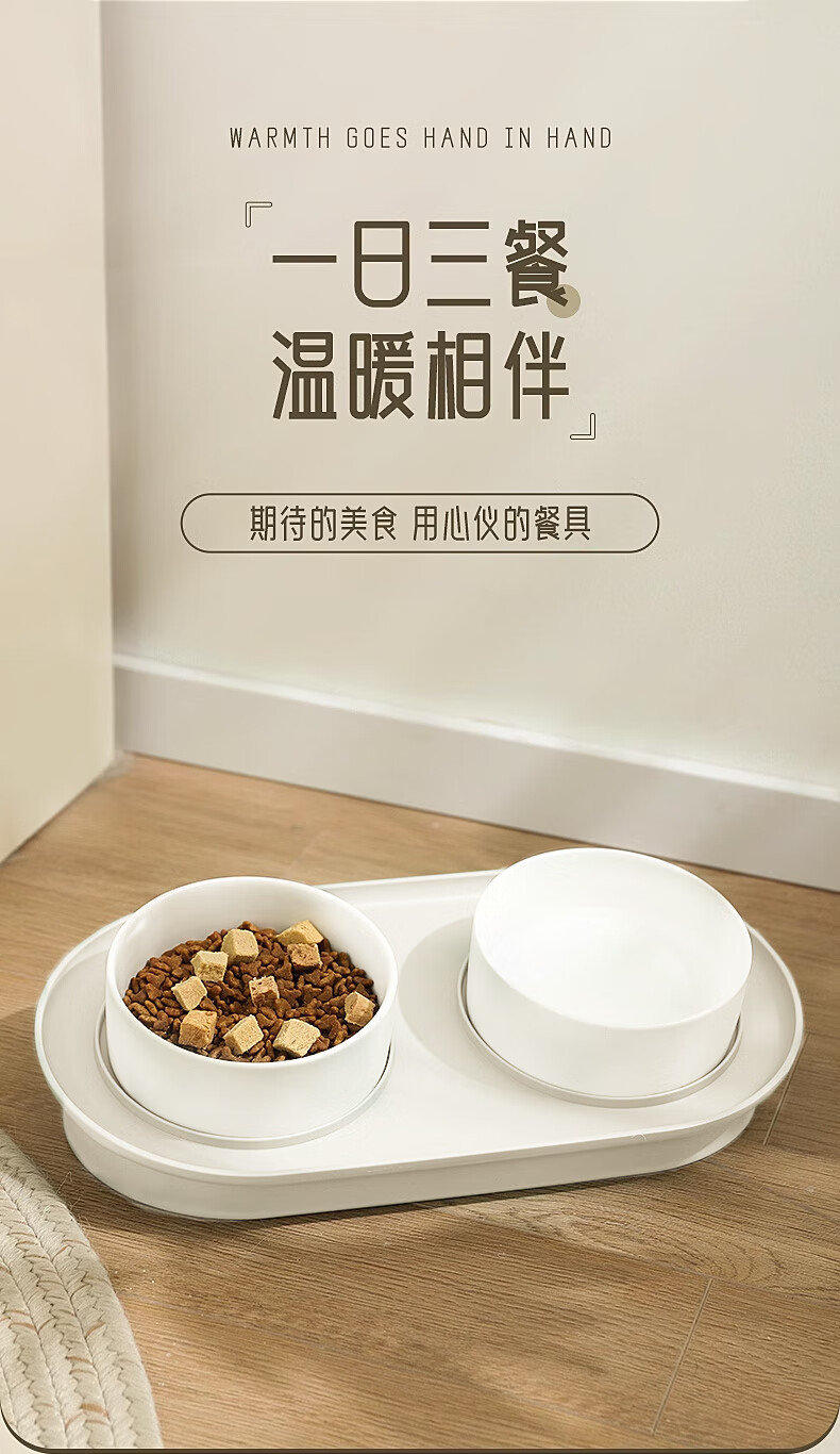 华元宠具(hoopet)猫碗陶瓷双碗狗狗饭盆猫咪食盆喂食器猫粮盆喝水碗防打翻宠物用品