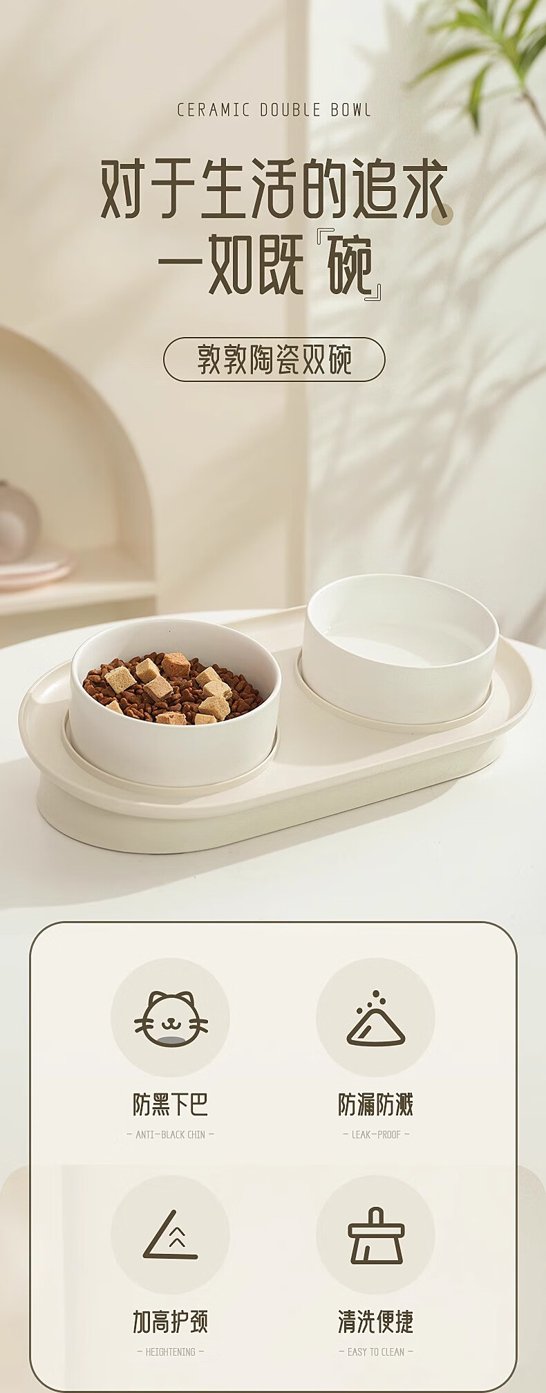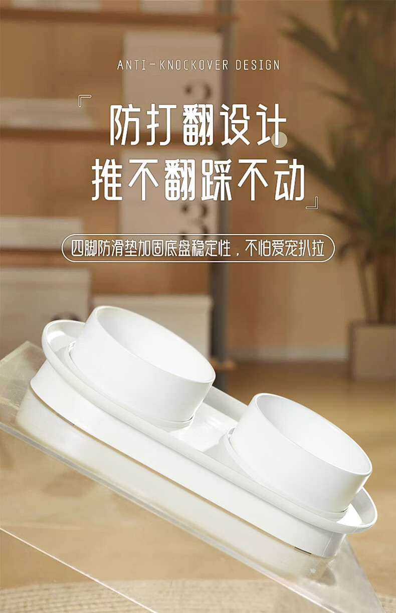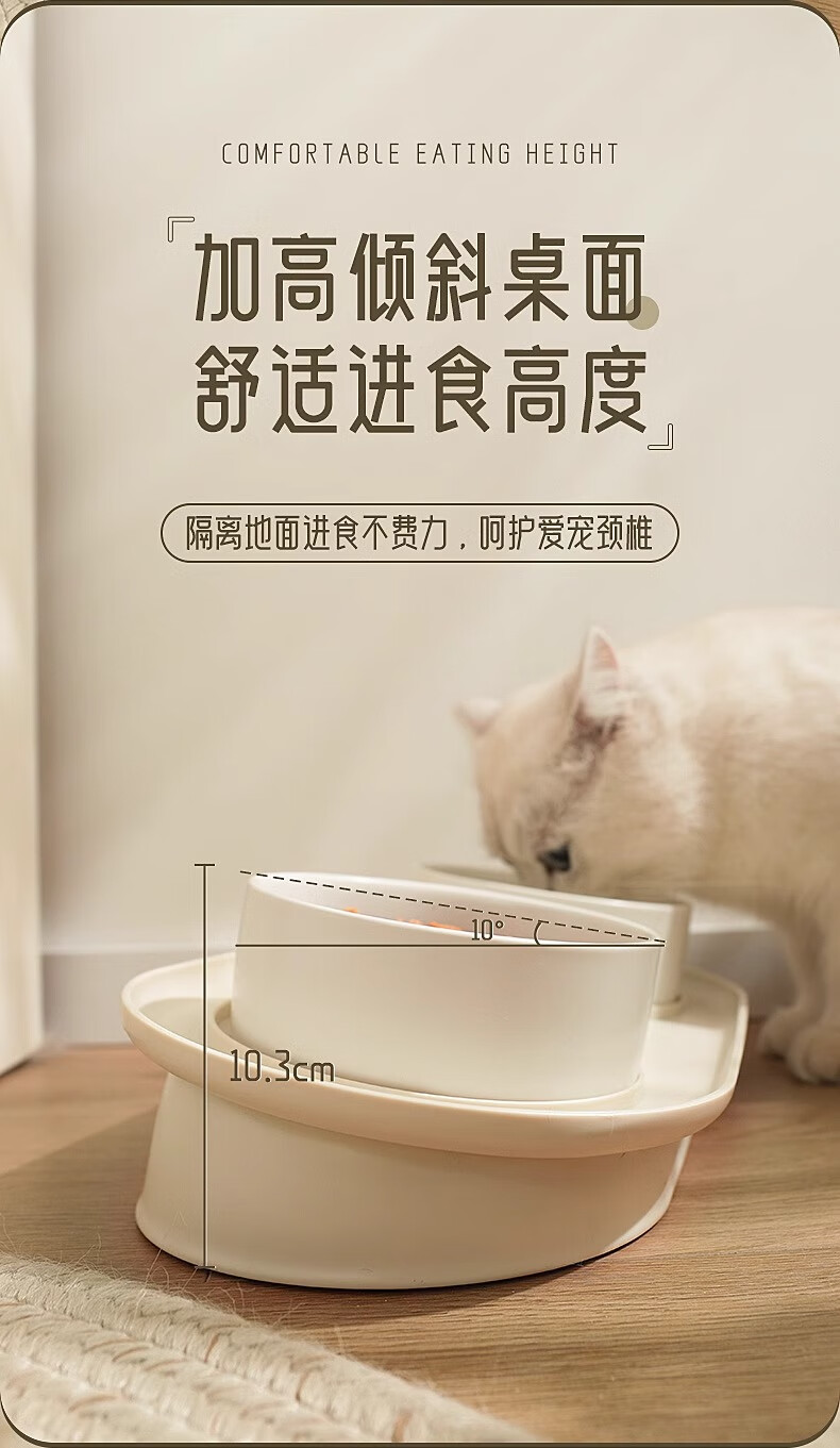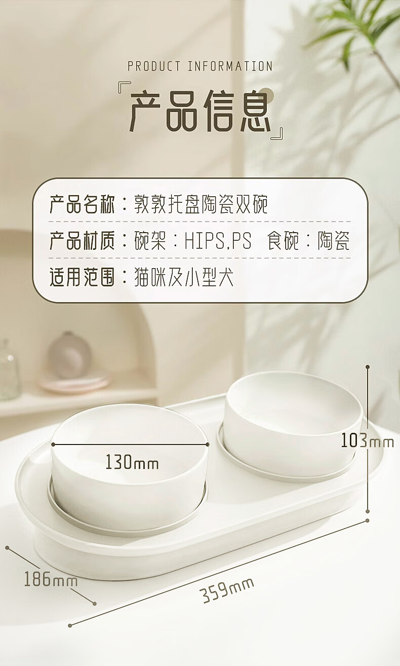 华元宠具(hoopet)猫碗陶瓷双碗狗狗饭盆猫咪食盆喂食器猫粮盆喝水碗防打翻宠物用品