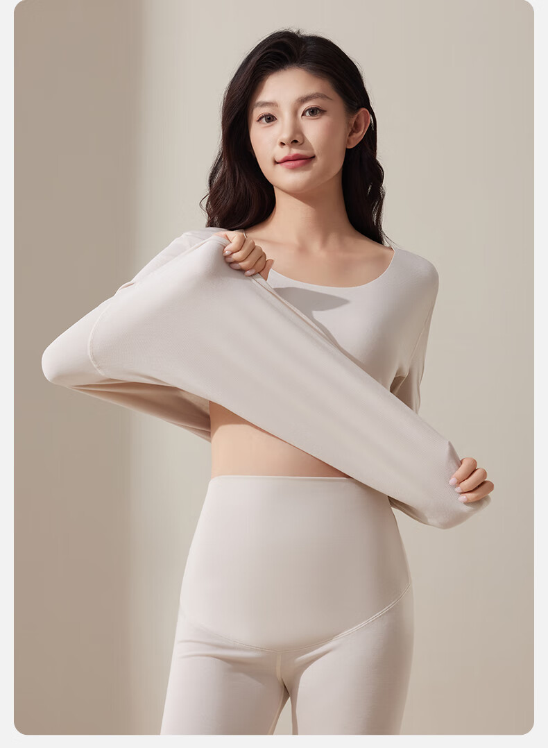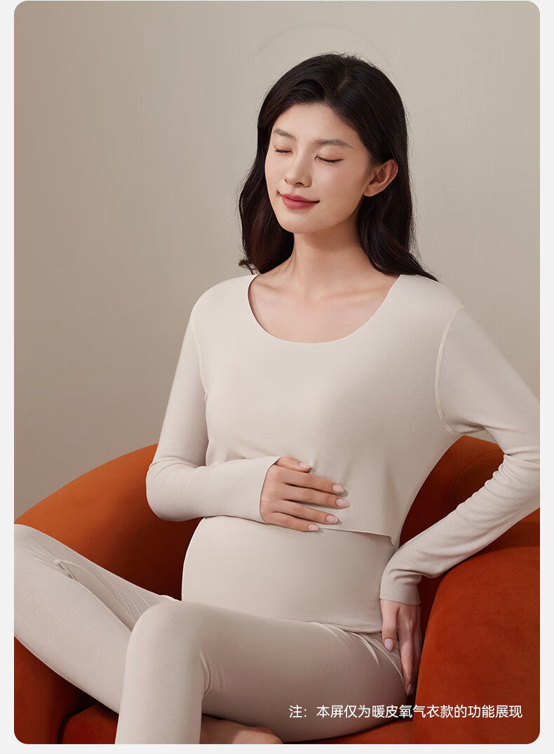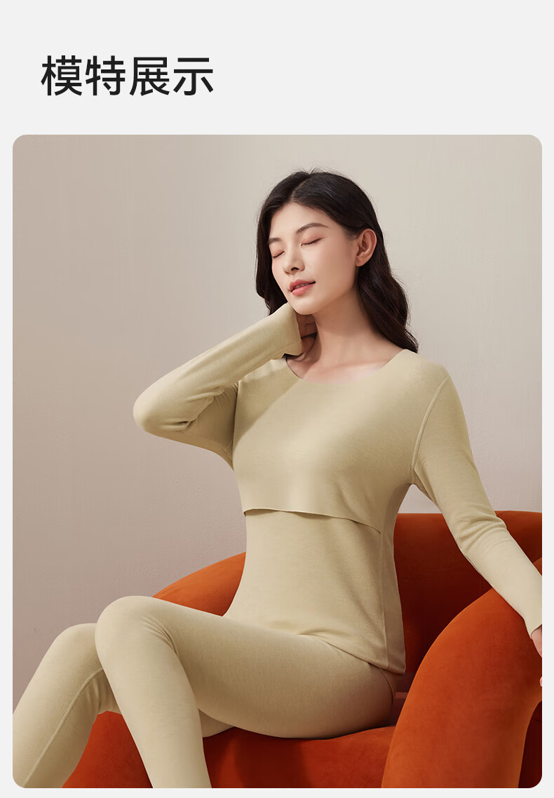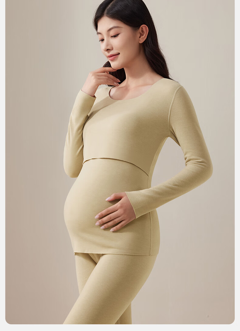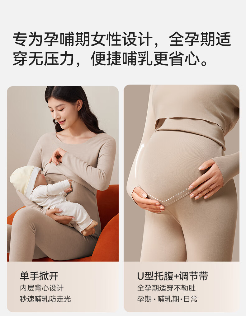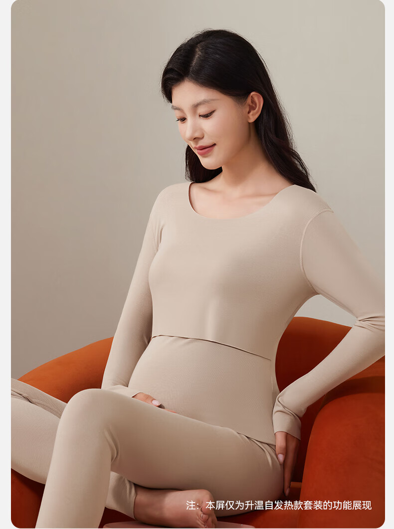十月结晶秋衣裤套装冬季孕产妇保暖内衣哺乳睡衣圆领打底衫带胸垫 裸感肤M