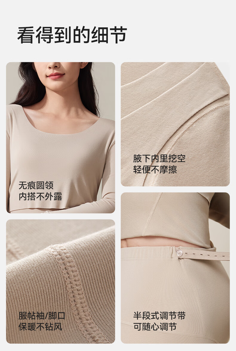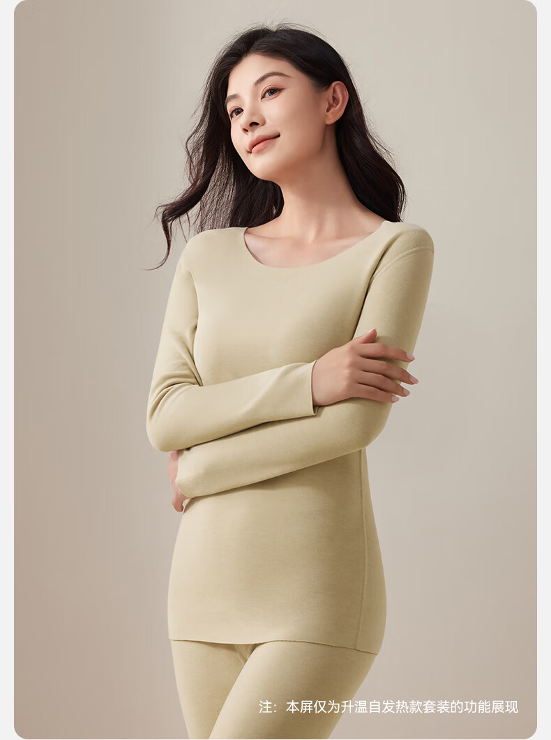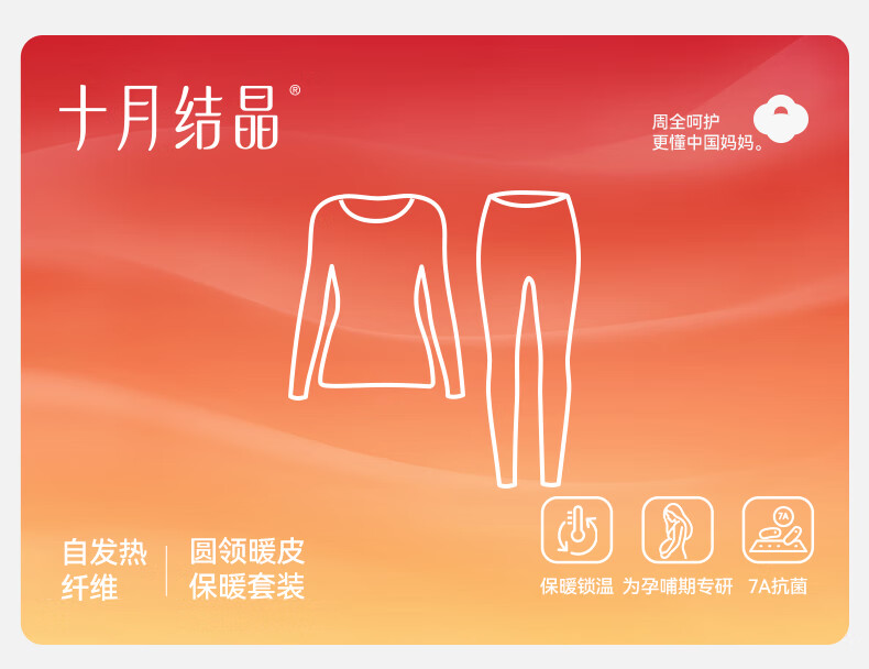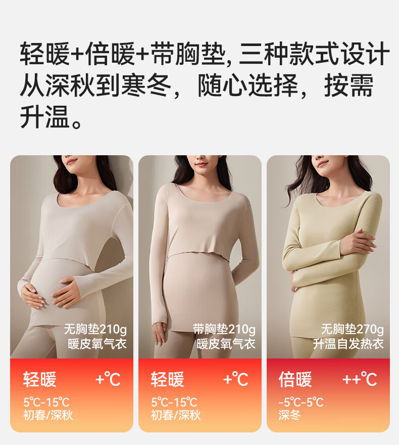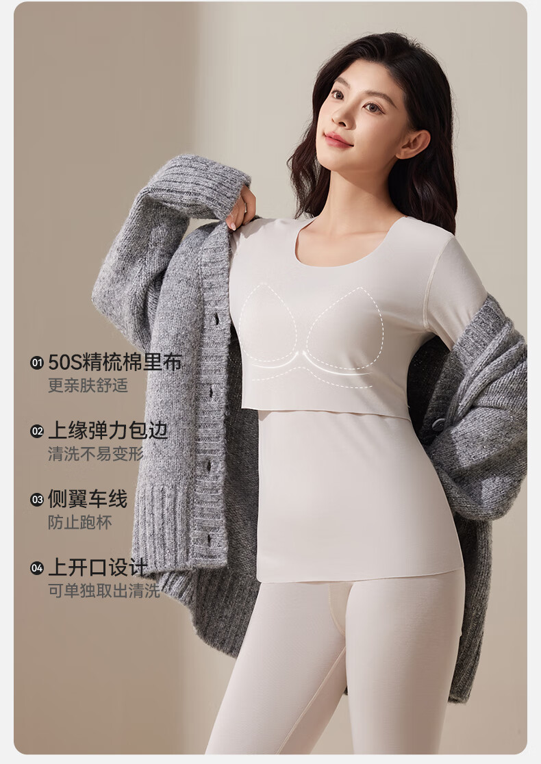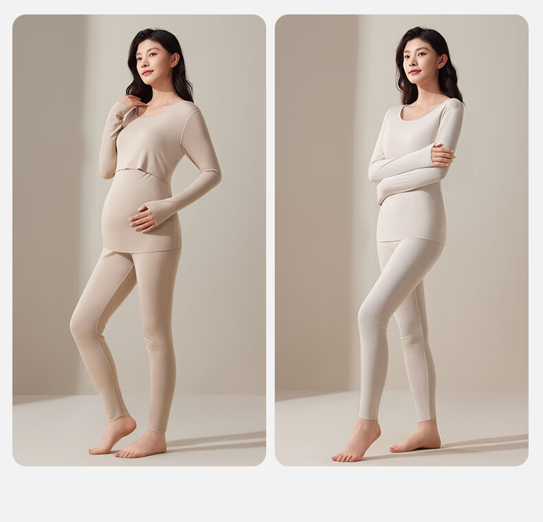 十月结晶秋衣裤套装冬季孕产妇保暖内衣哺乳睡衣圆领打底衫带胸垫 裸感肤M