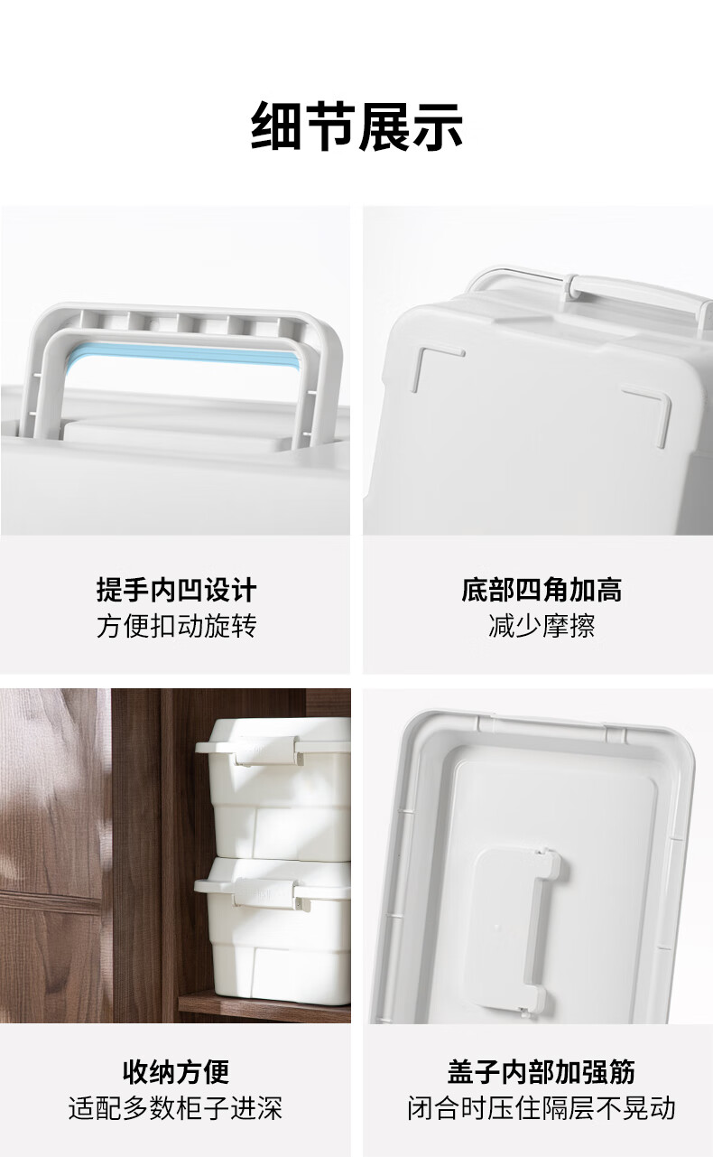 纳份爱收纳箱塑料家用加厚加大容量超大号储物箱衣服被子玩具整理专用箱 45#L小号 象牙白-【49*34*27.5cm】4扣4轮 3个装【店长主推 破损包赔】