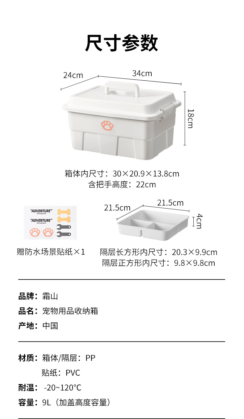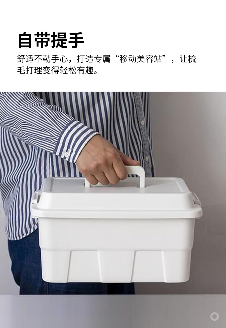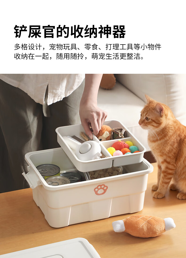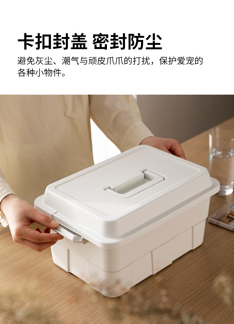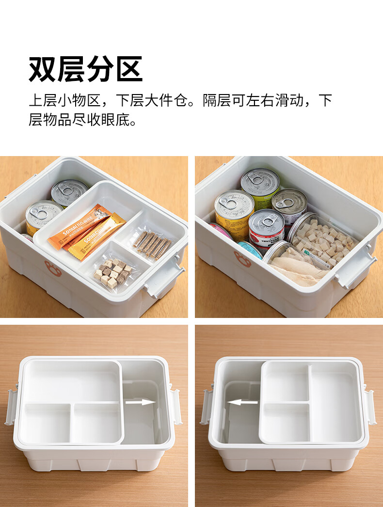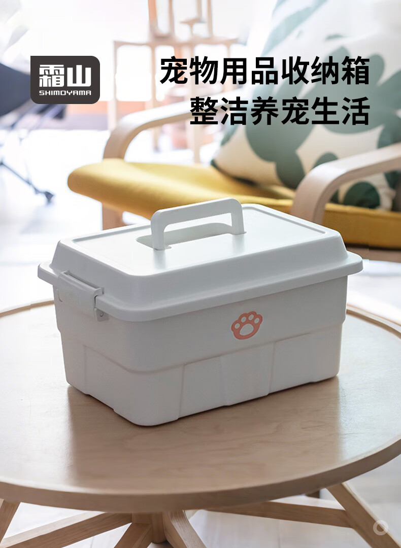 霜山杂物收纳盒猫狗罐头零食玩具带盖储物盒手提便携宠物用品整理 长34*宽24*高18cm