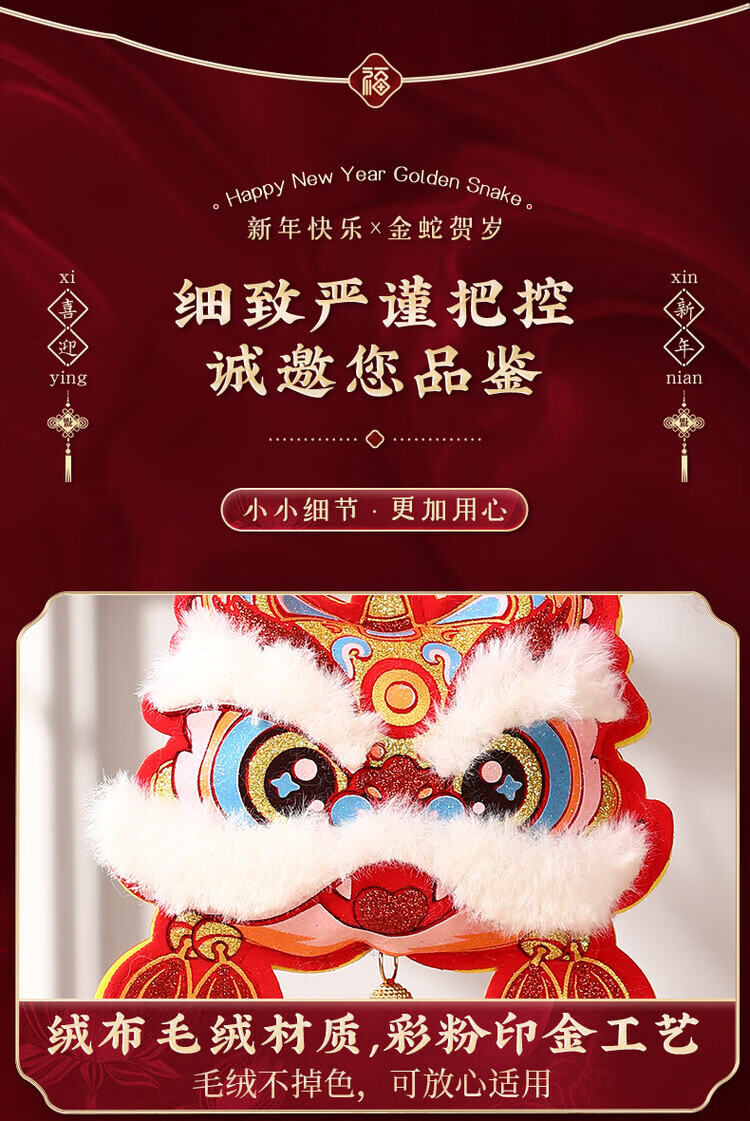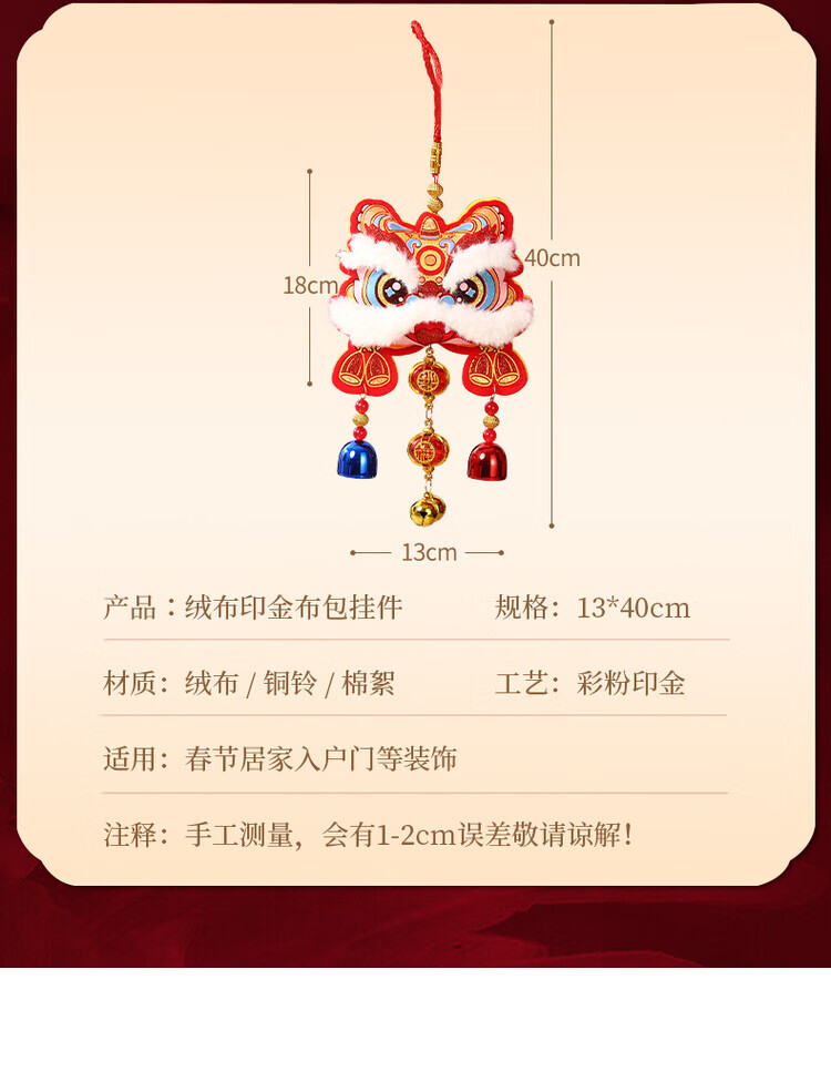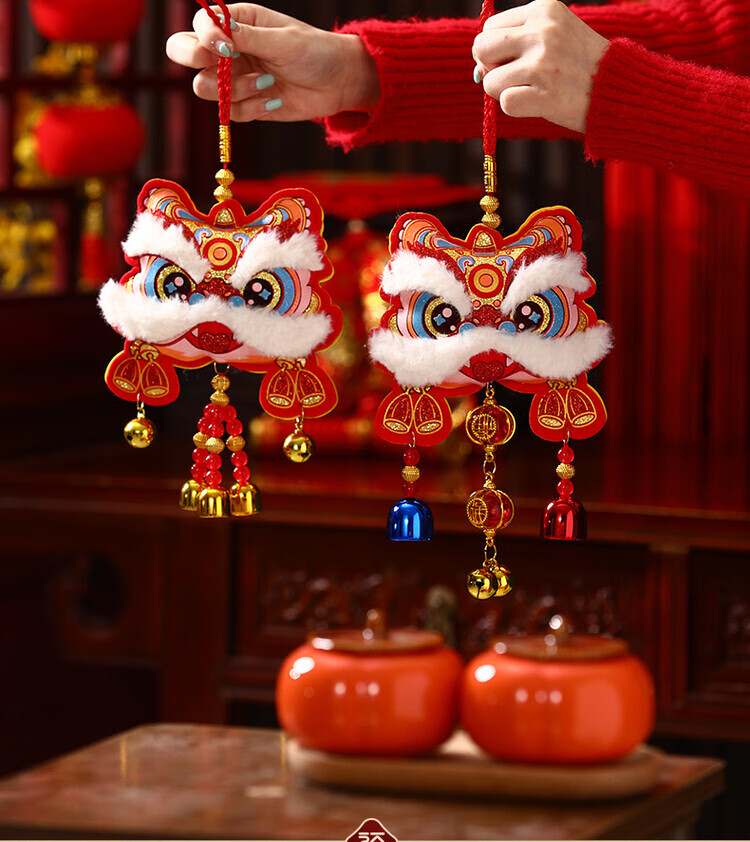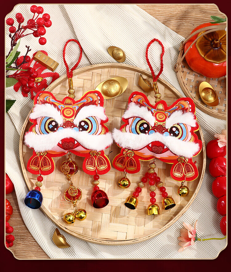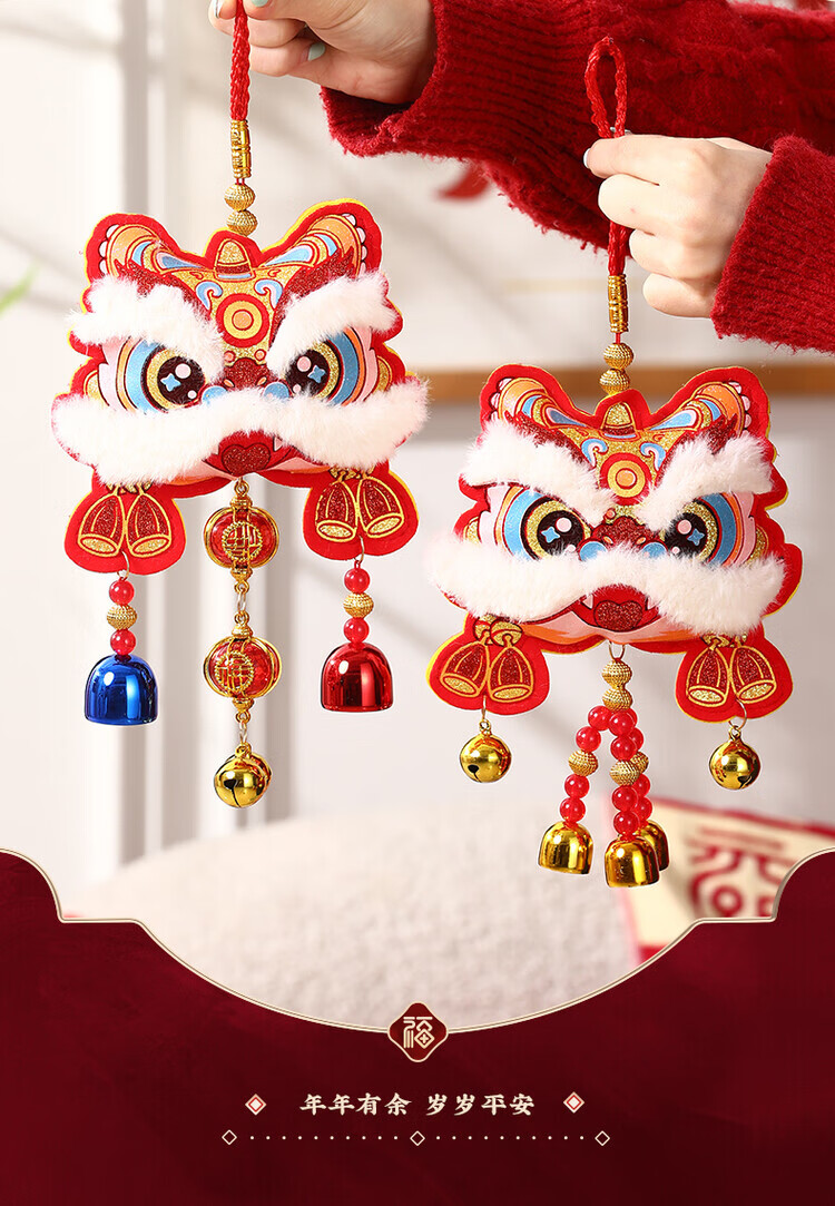 OYKTN2026马年新款新年装饰元旦春节过年醒狮挂件福字氛围贺年挂饰布置 【毛绒醒狮】彩风铃挂件(1个装)