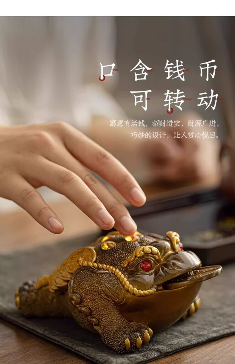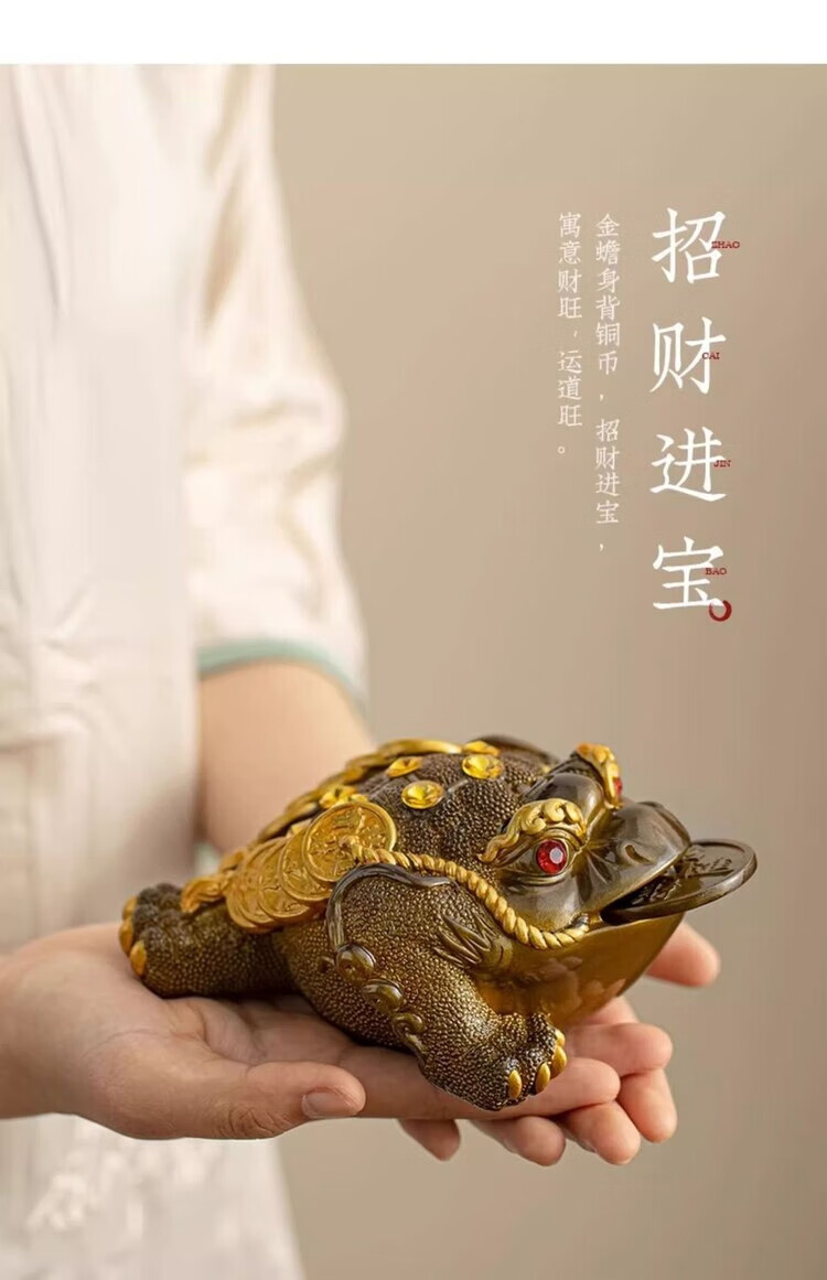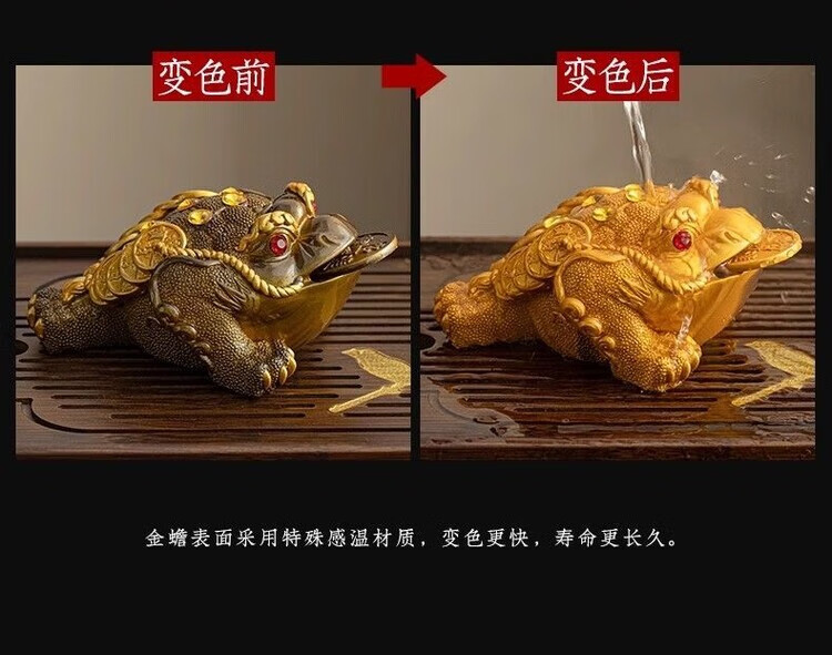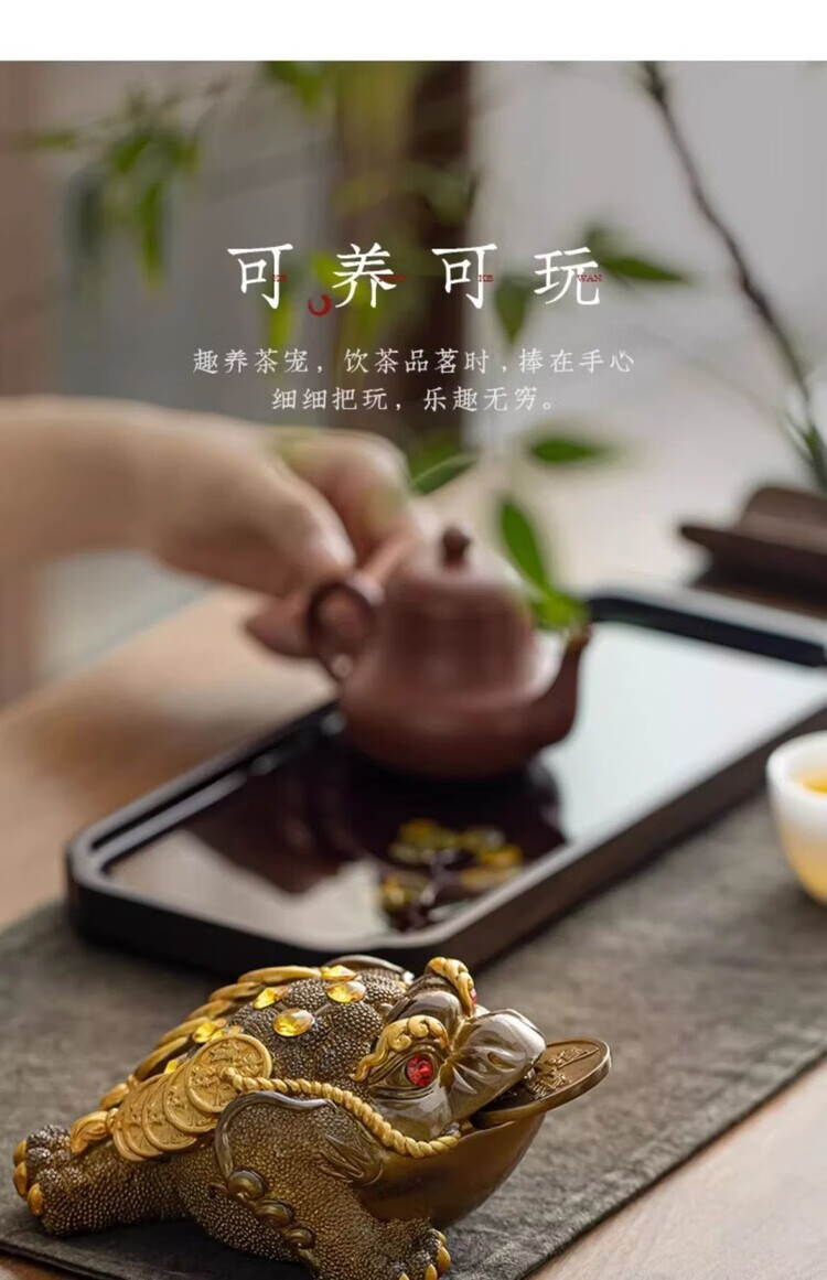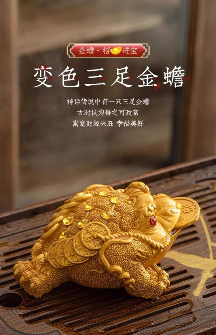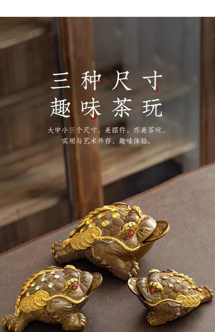 泰禧阁茶宠摆件金蟾精品可养招财变色茶具貔貅配件茶桌茶盘茶道茶台蟾蜍 大号-变色三足招财金蟾