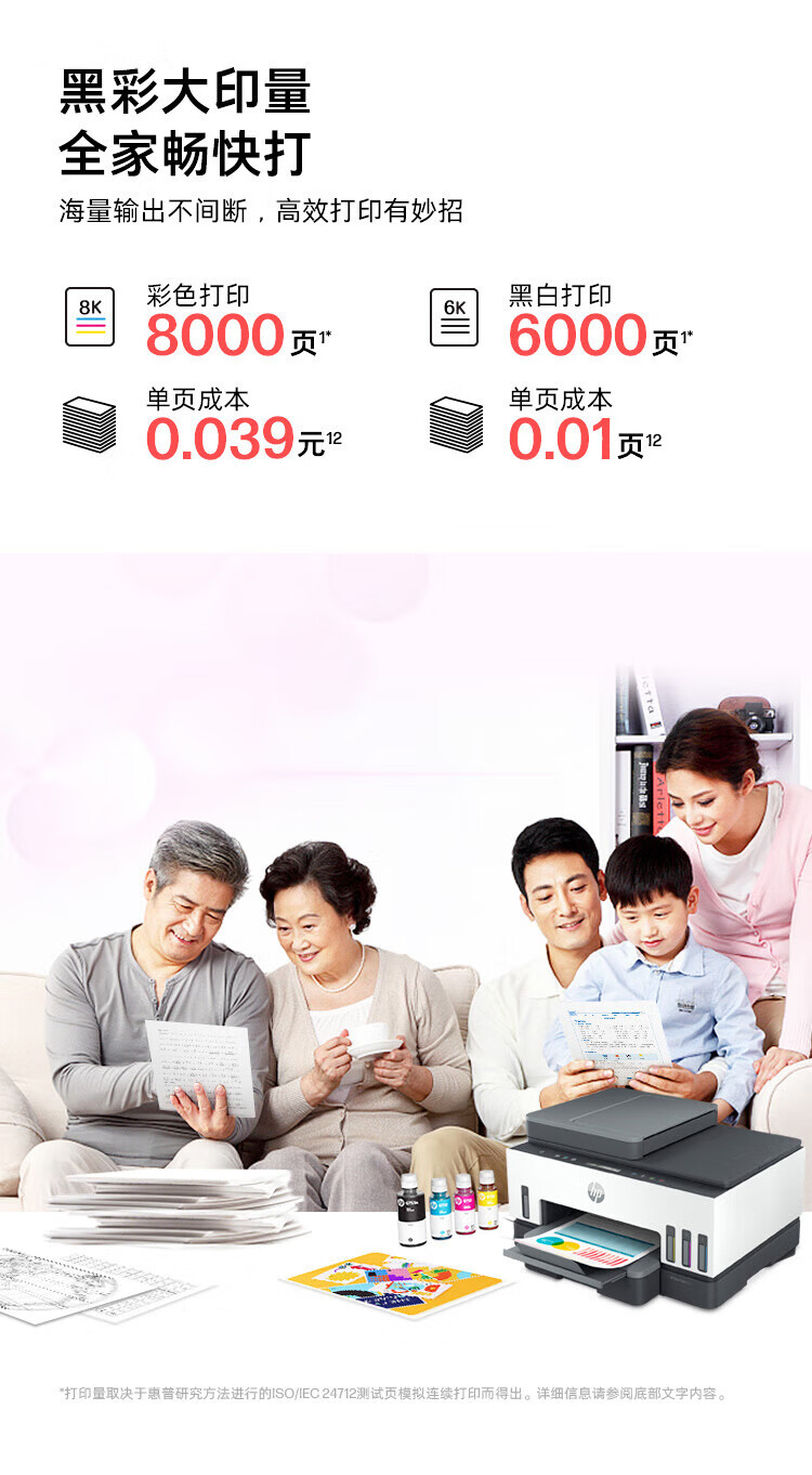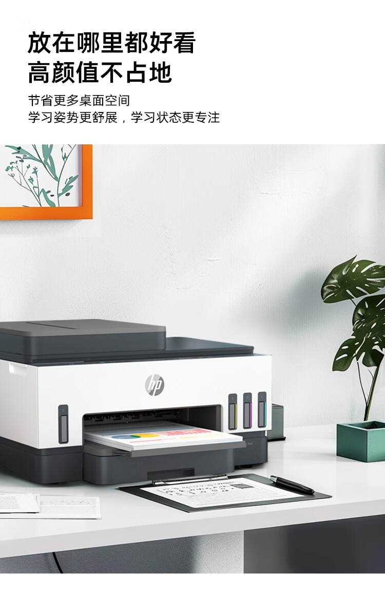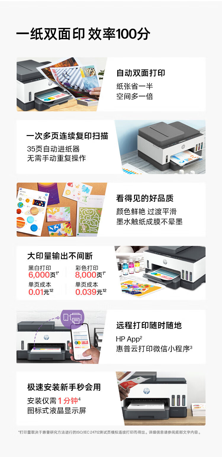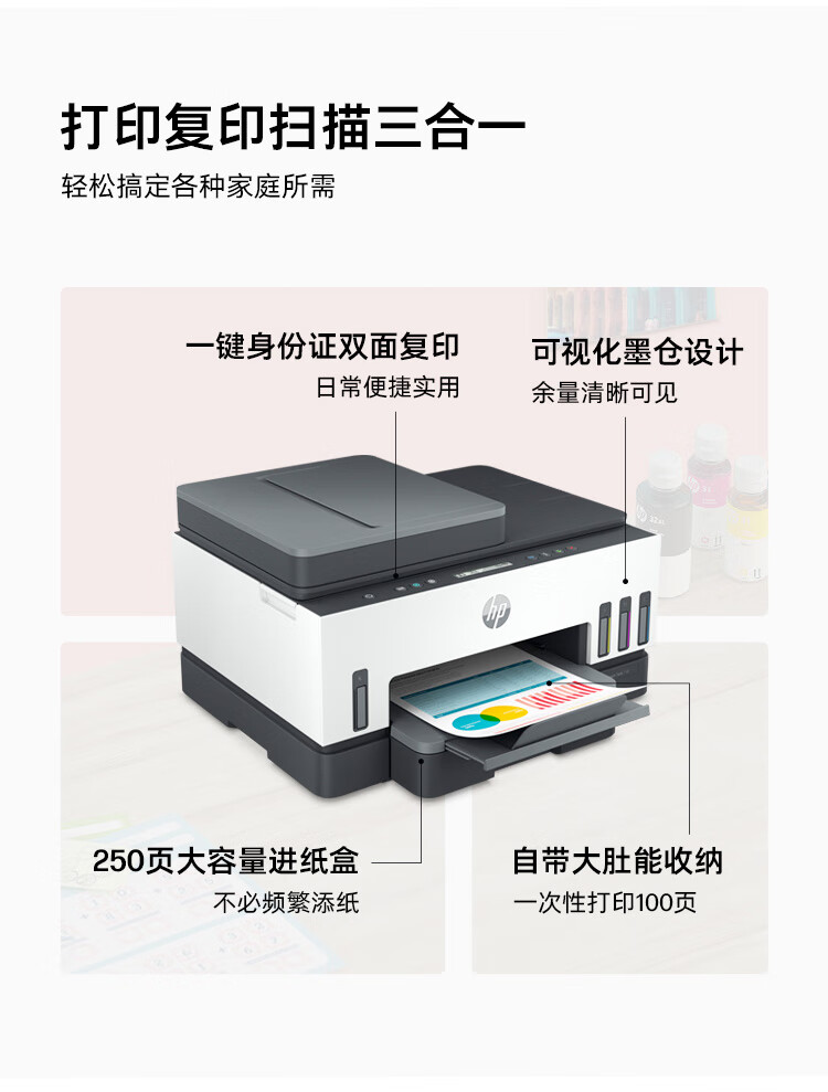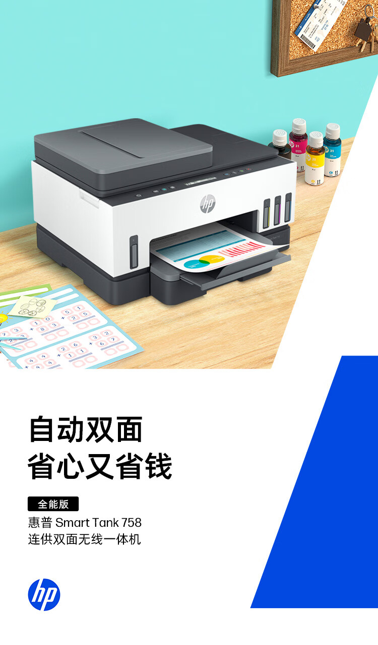 惠普(HP)758 连供无线自动双面家用打印机 三合一彩色打印复印扫描 内置墨仓单页成本1分钱