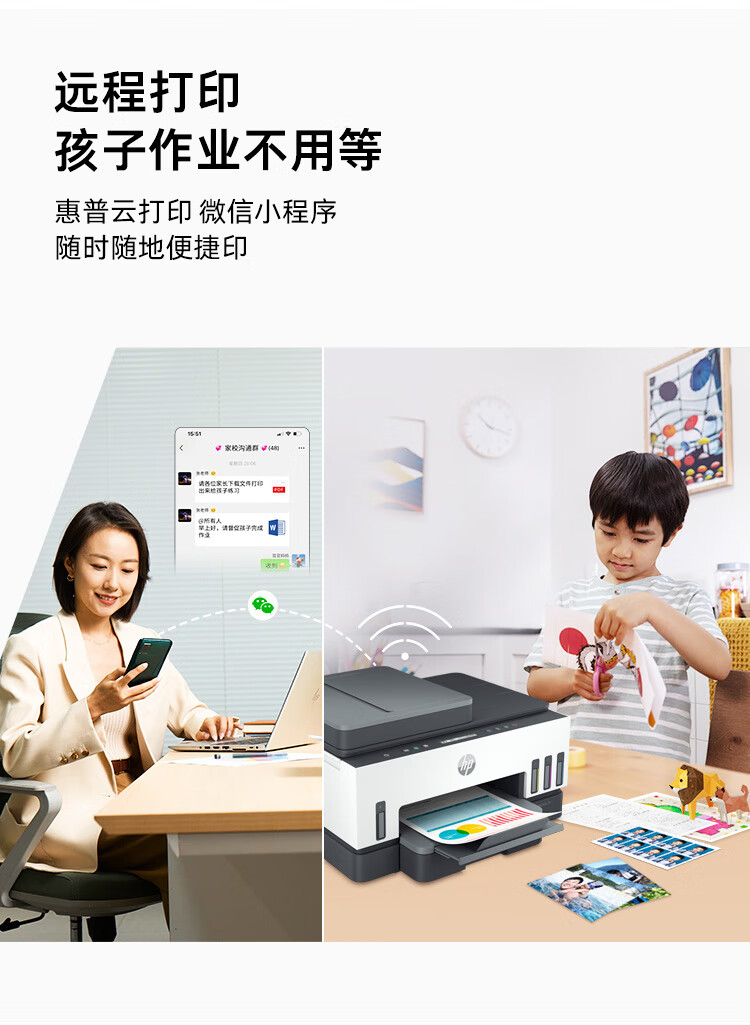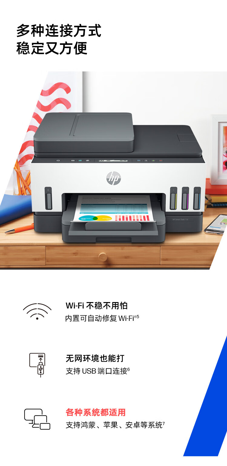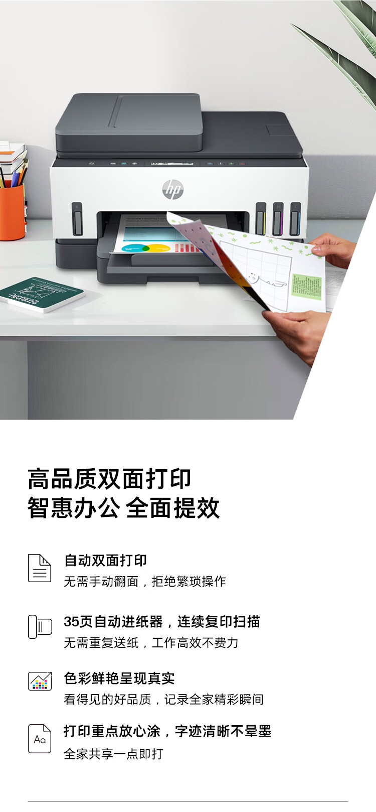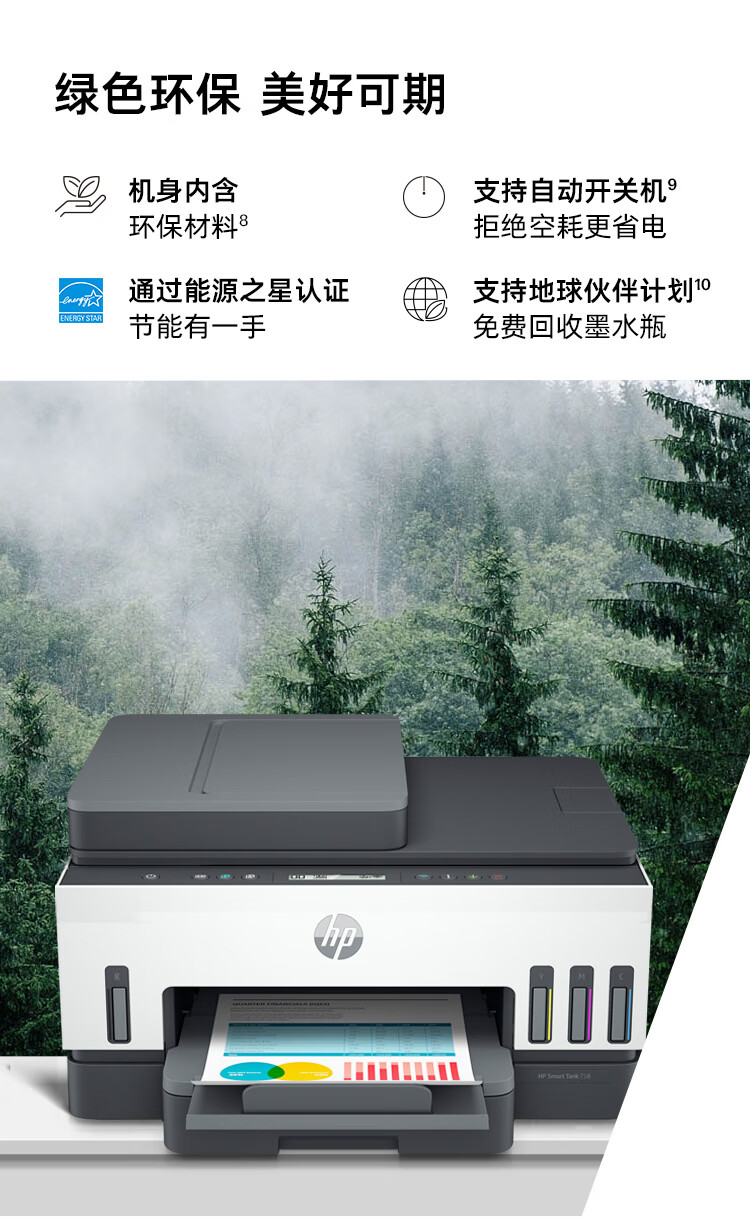 惠普(HP)758 连供无线自动双面家用打印机 三合一彩色打印复印扫描 内置墨仓单页成本1分钱