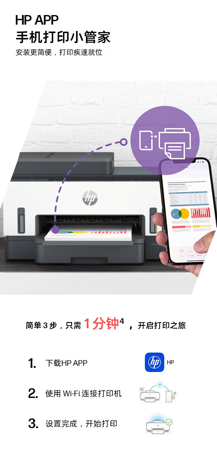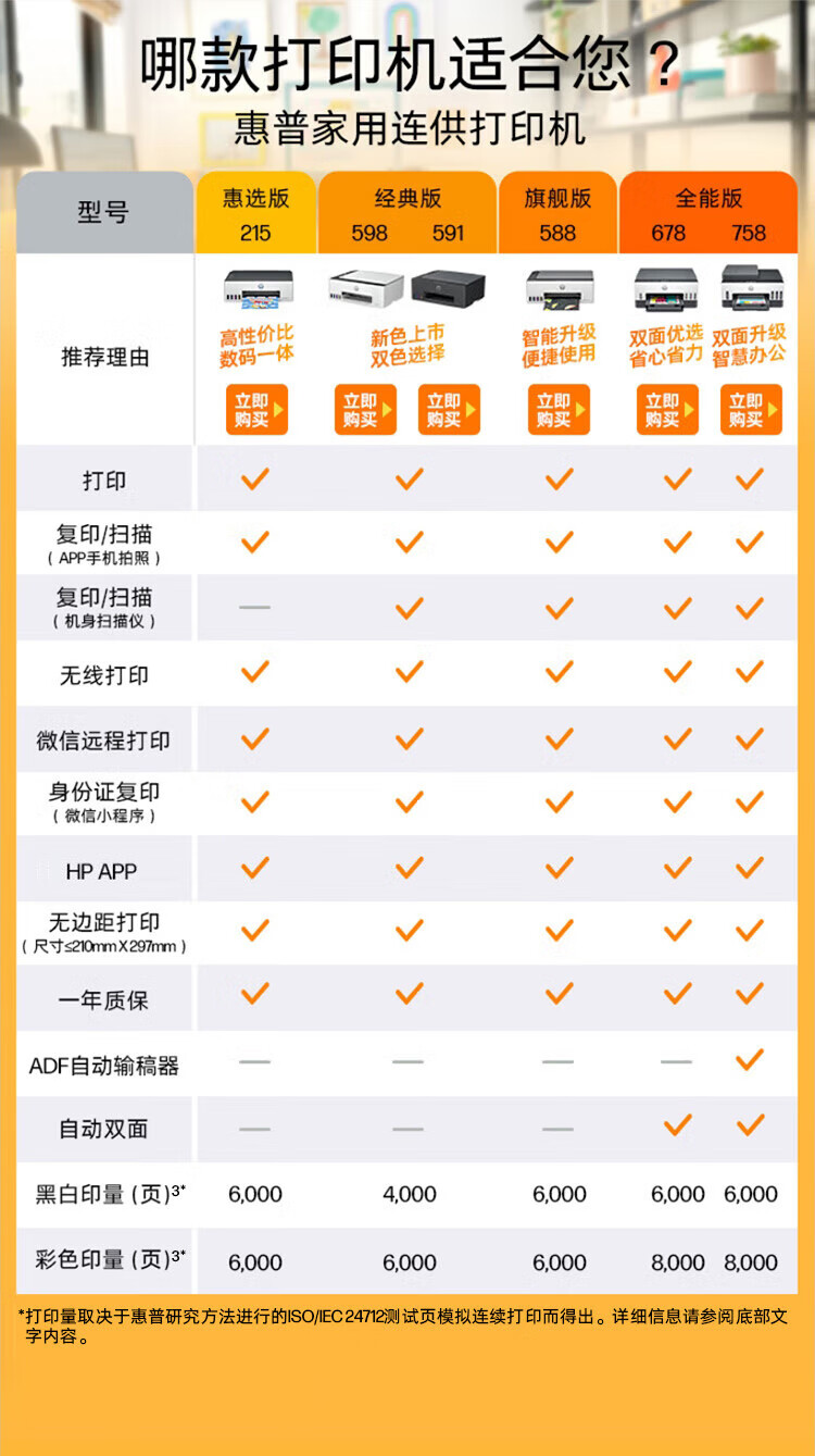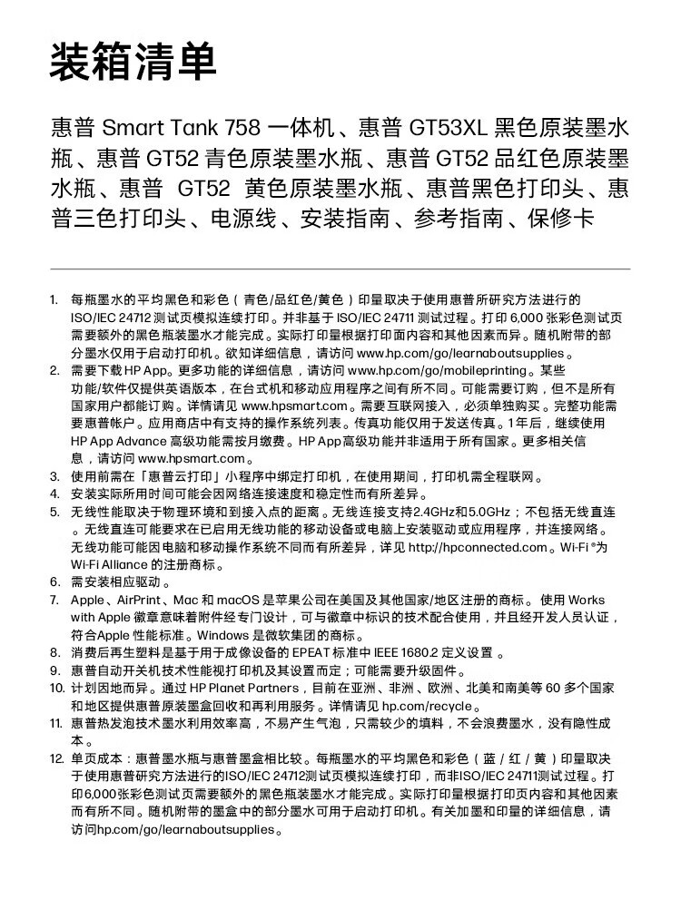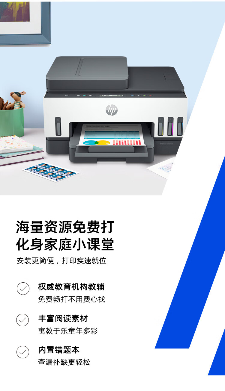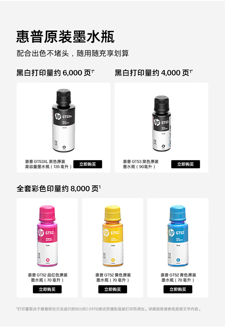 惠普(HP)758 连供无线自动双面家用打印机 三合一彩色打印复印扫描 内置墨仓单页成本1分钱